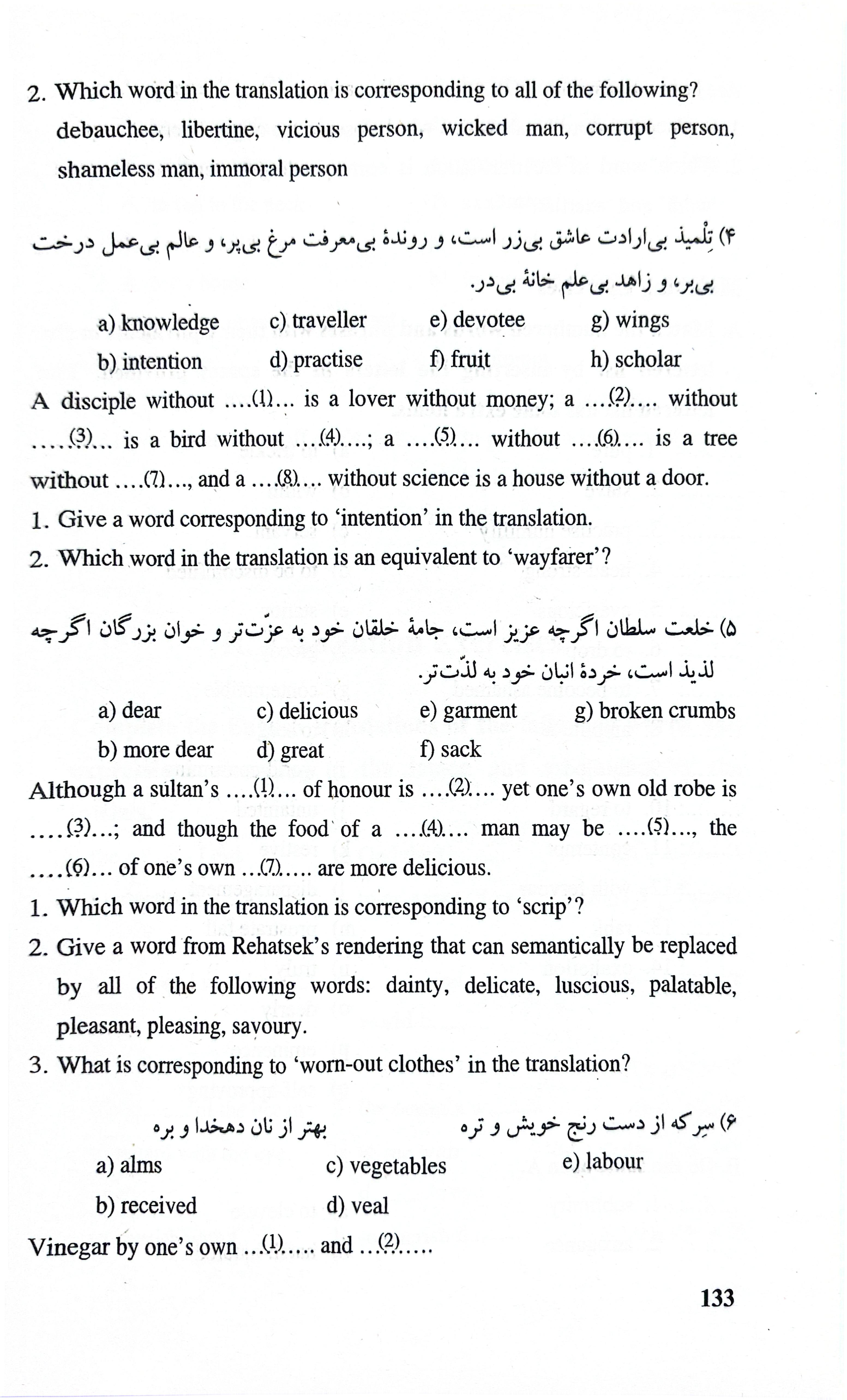 و برخی متون عربی را نیز شامل میشود و تکنیکهای پیشرفته ترجمه را آموزش میدهد.