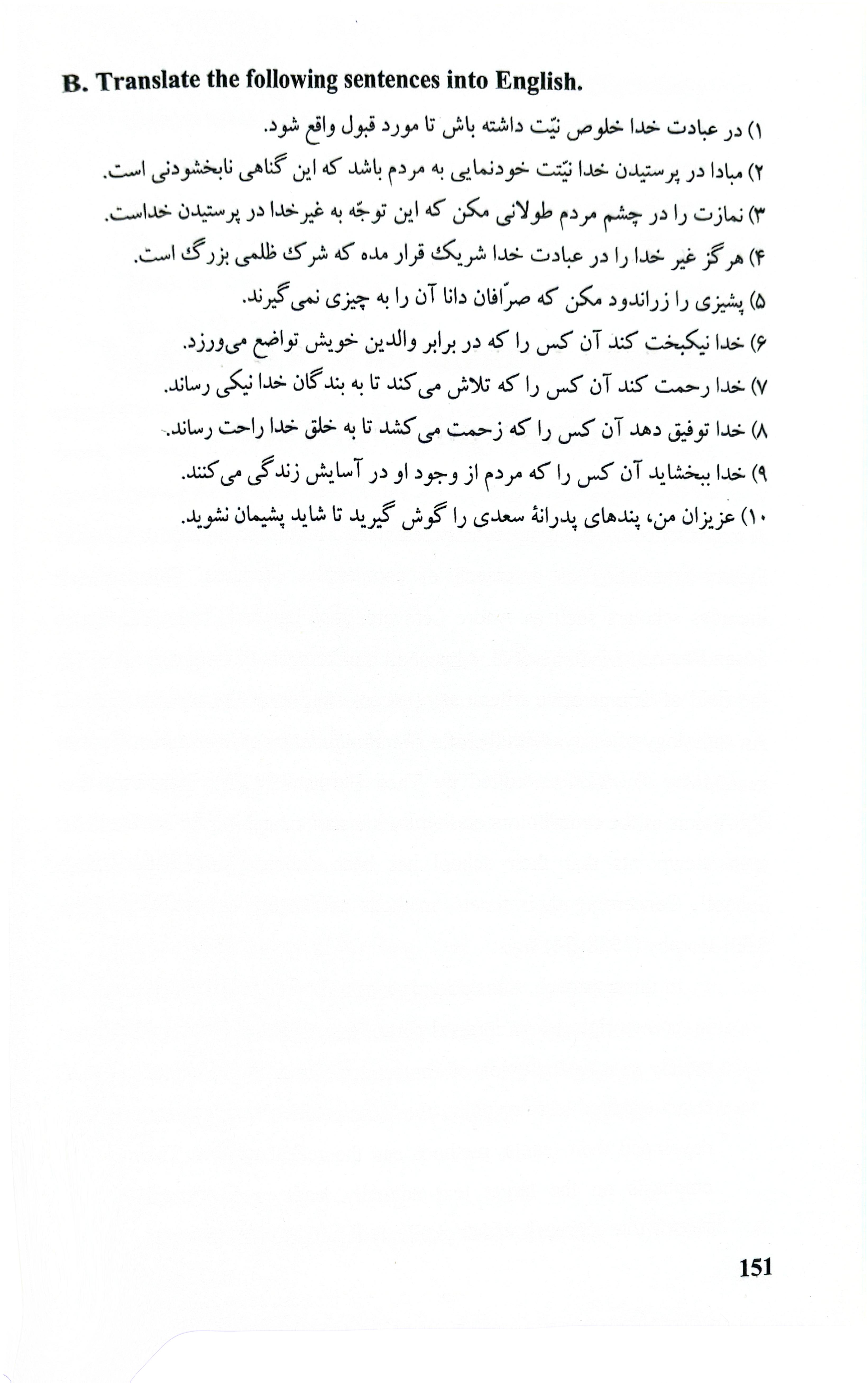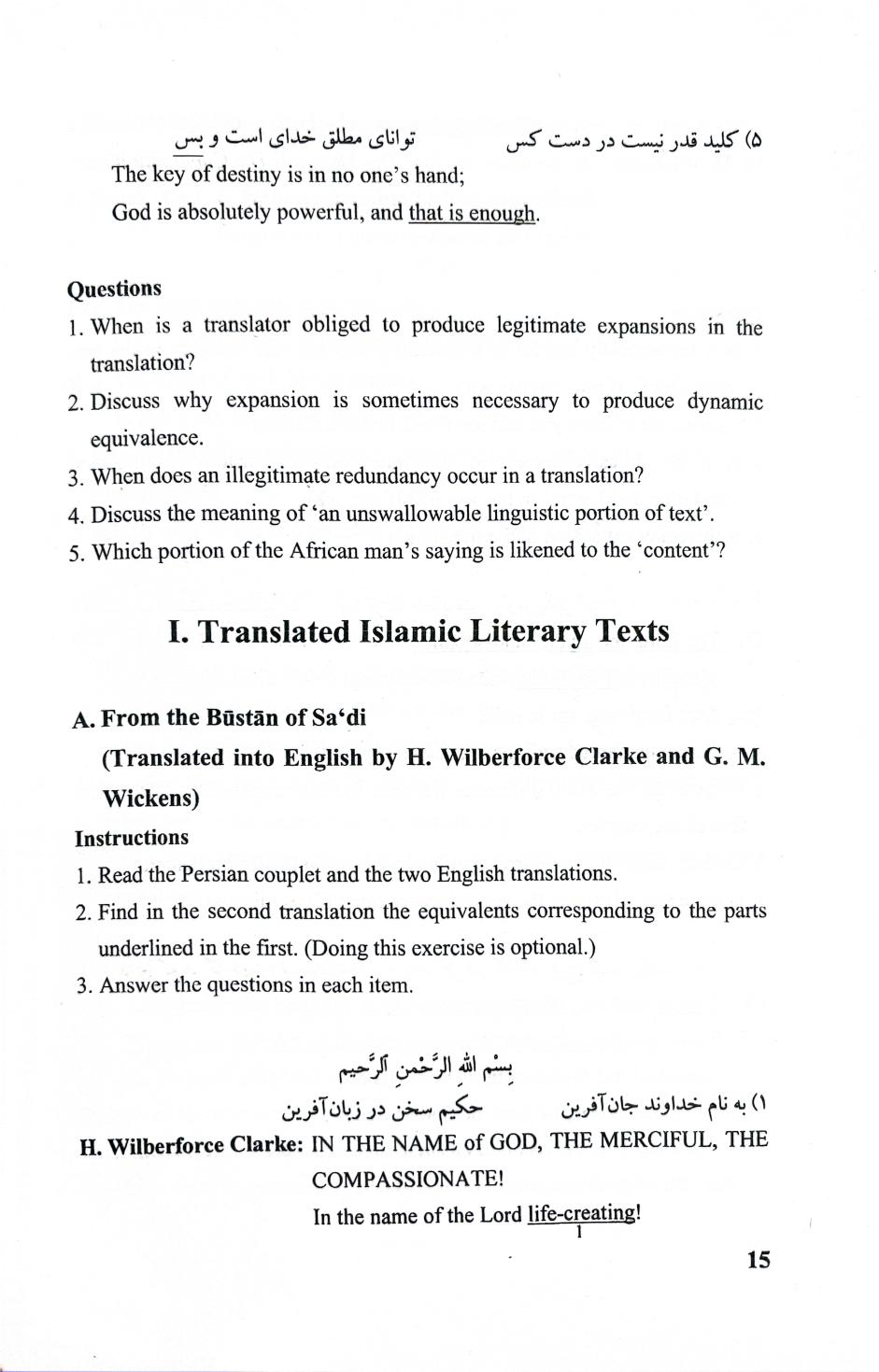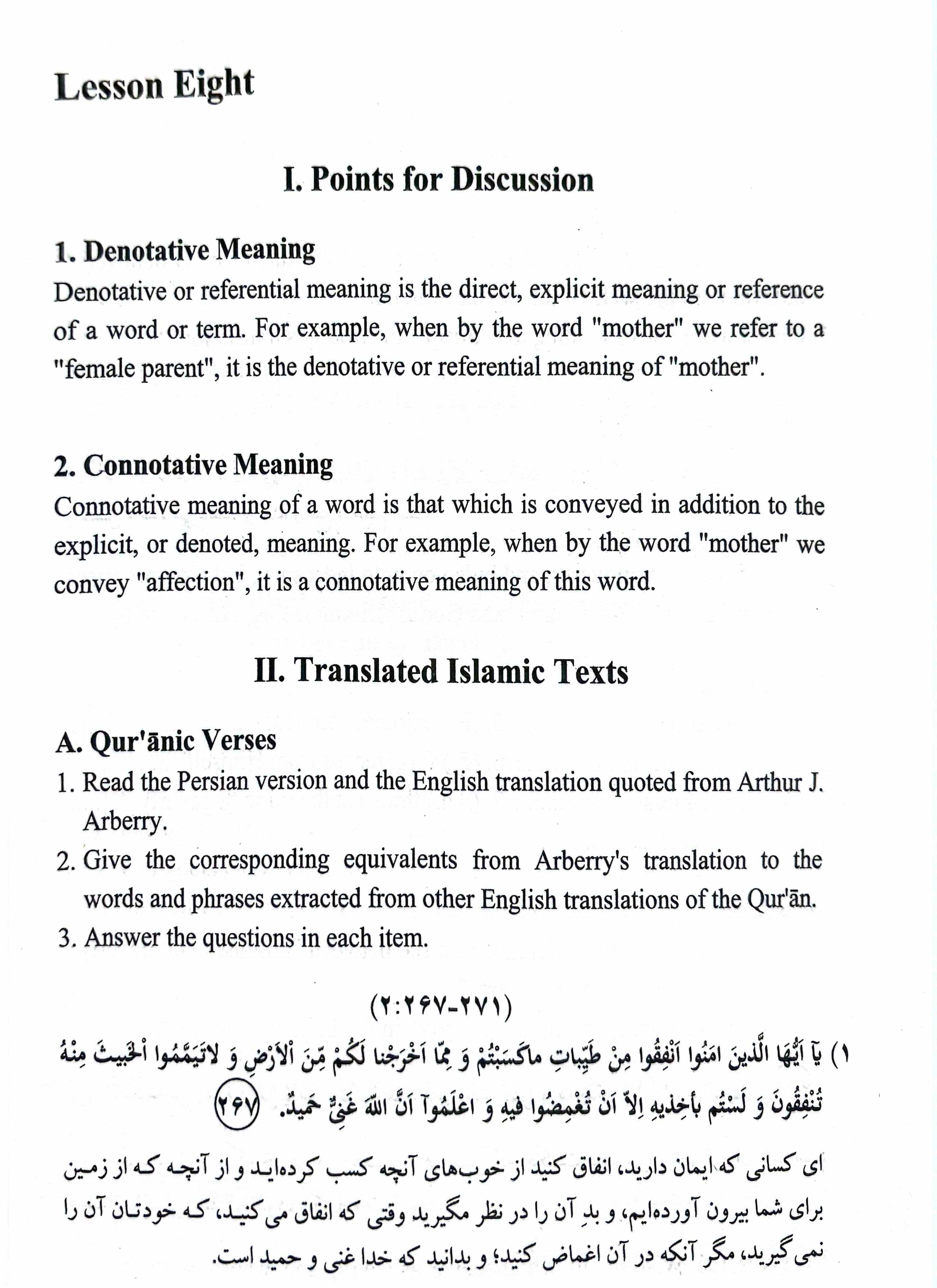 است. در هر درس ابتدا متن اصلی آورده شده و سپس چند ترجمه معتبر انگلیسی کنار هم