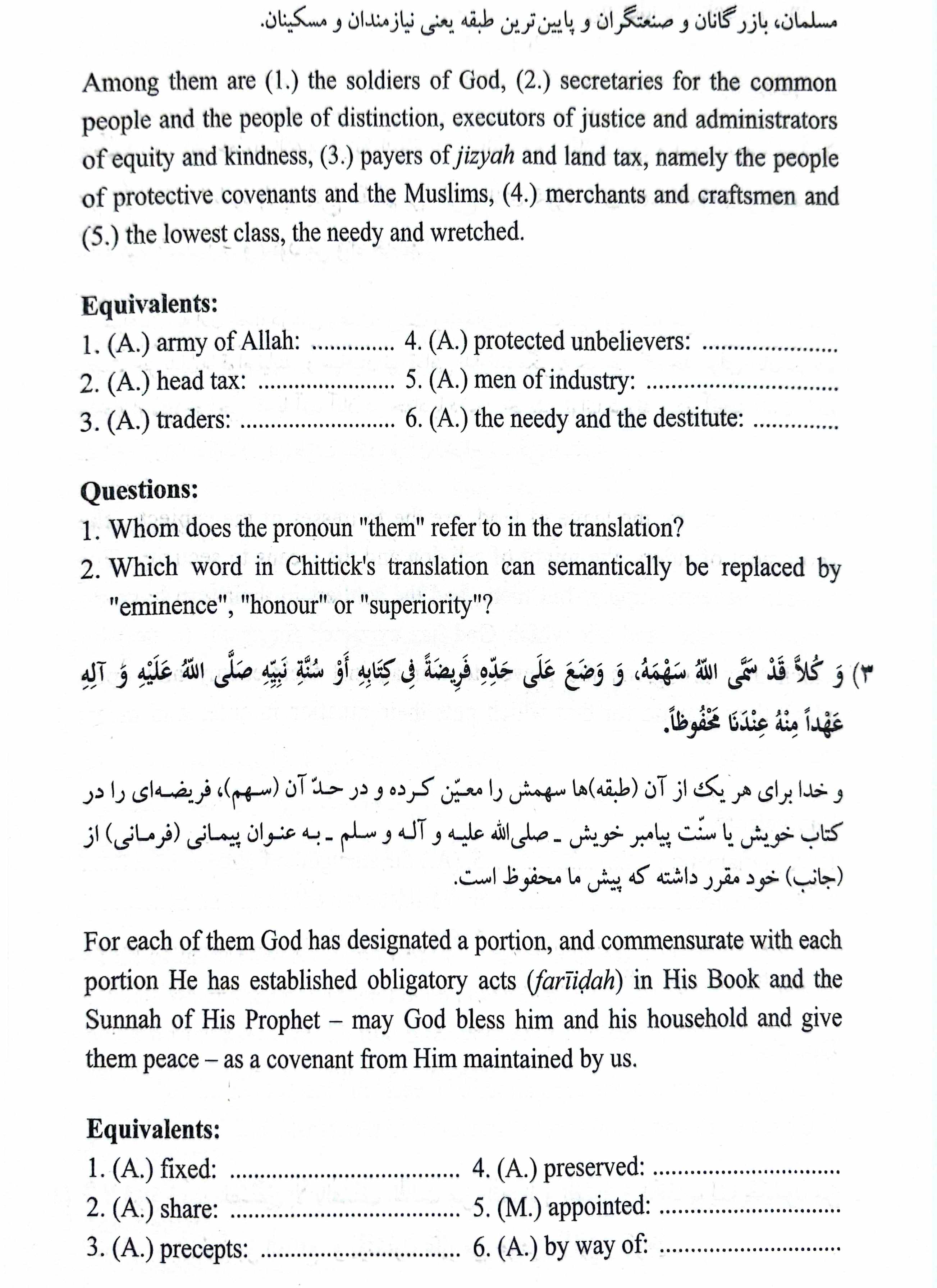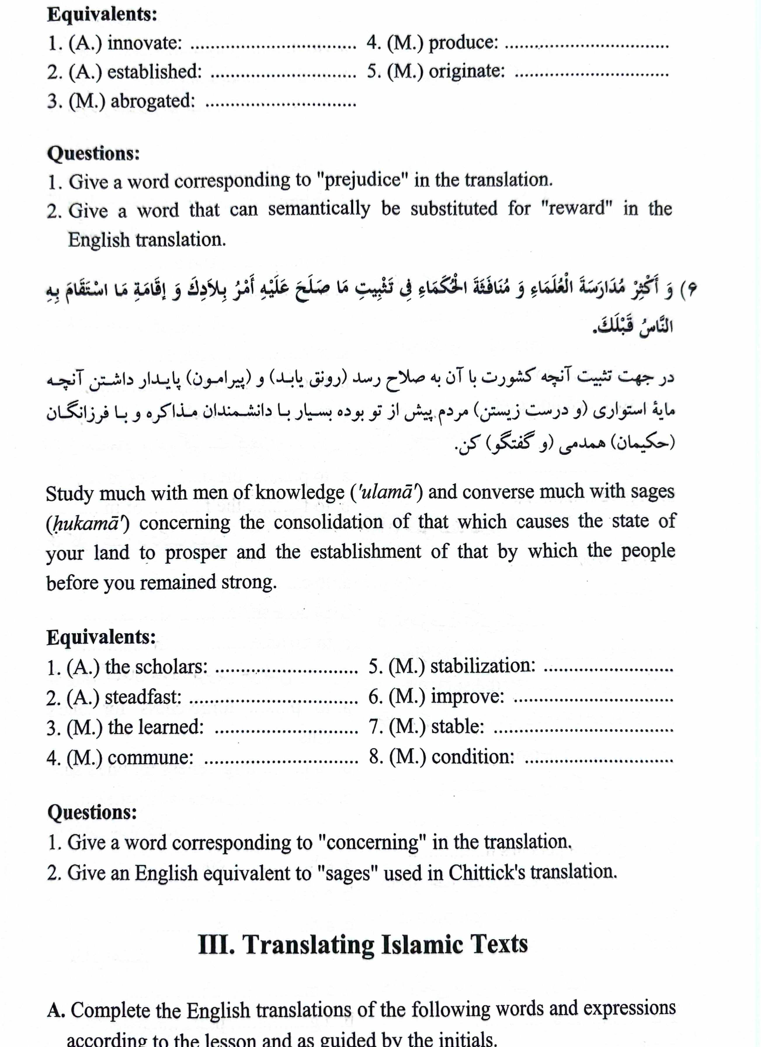 نوشته شده و به آنها کمک میکند مهارت ترجمه، معادلیابی و تحلیل متون اسلامی را
