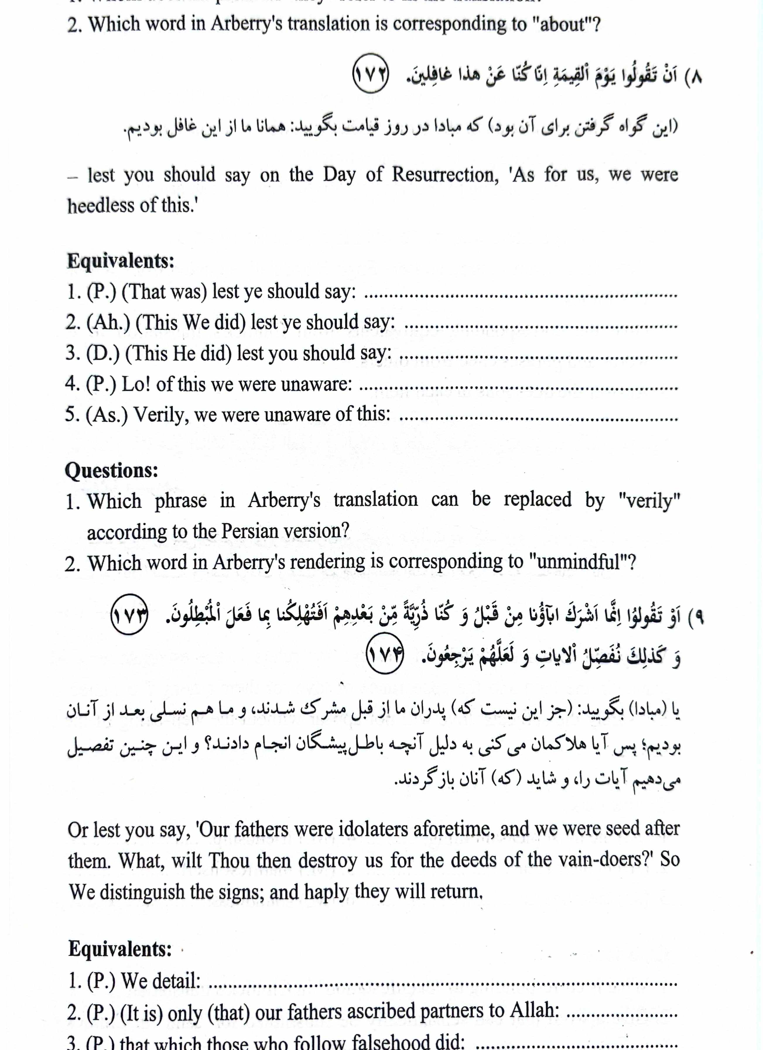 درس شامل نکات آموزشی، پرسشهای تحلیلی و تمرینهای ترجمه است تا دانشجو ترجمه را در عمل تجربه کند.