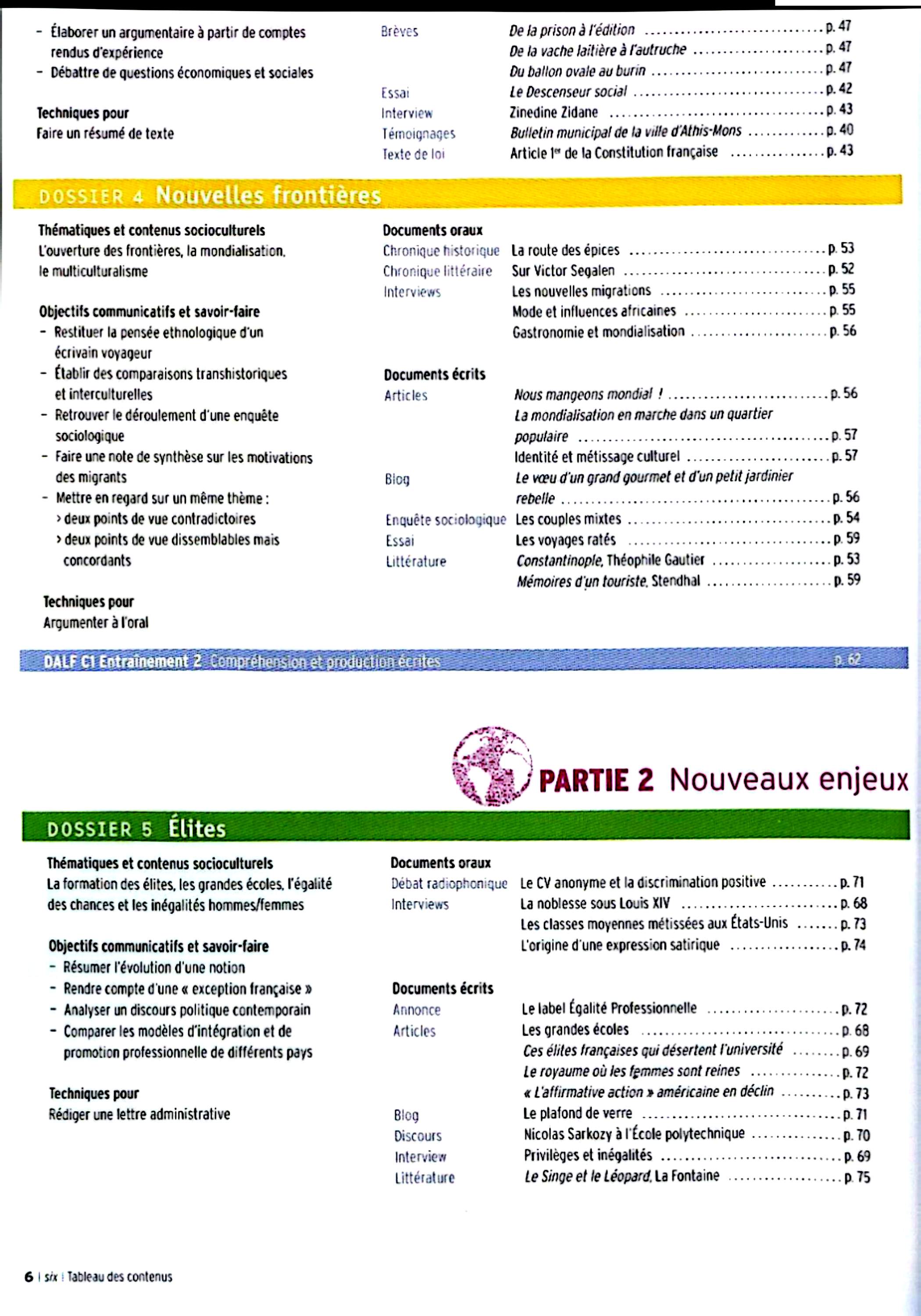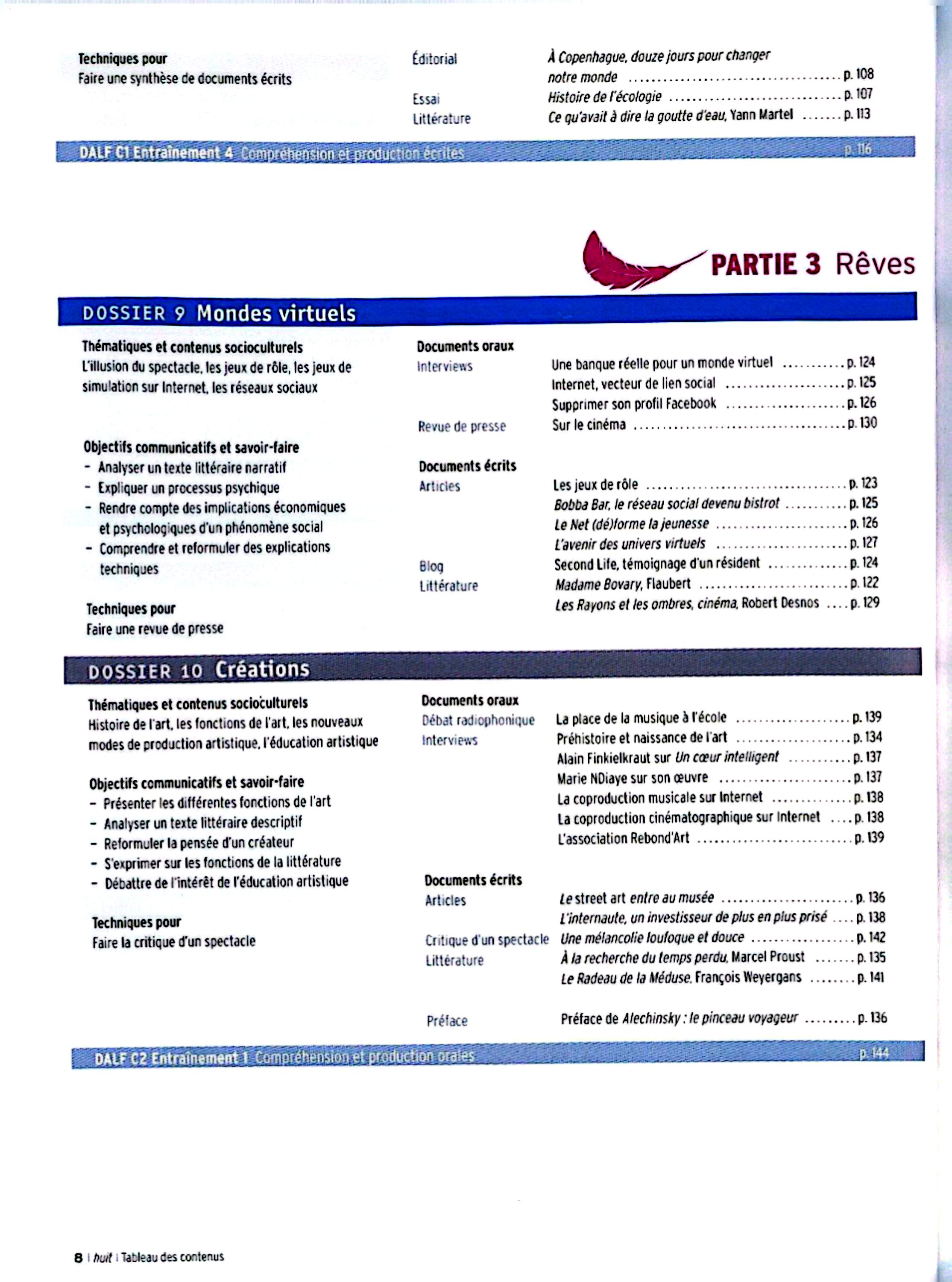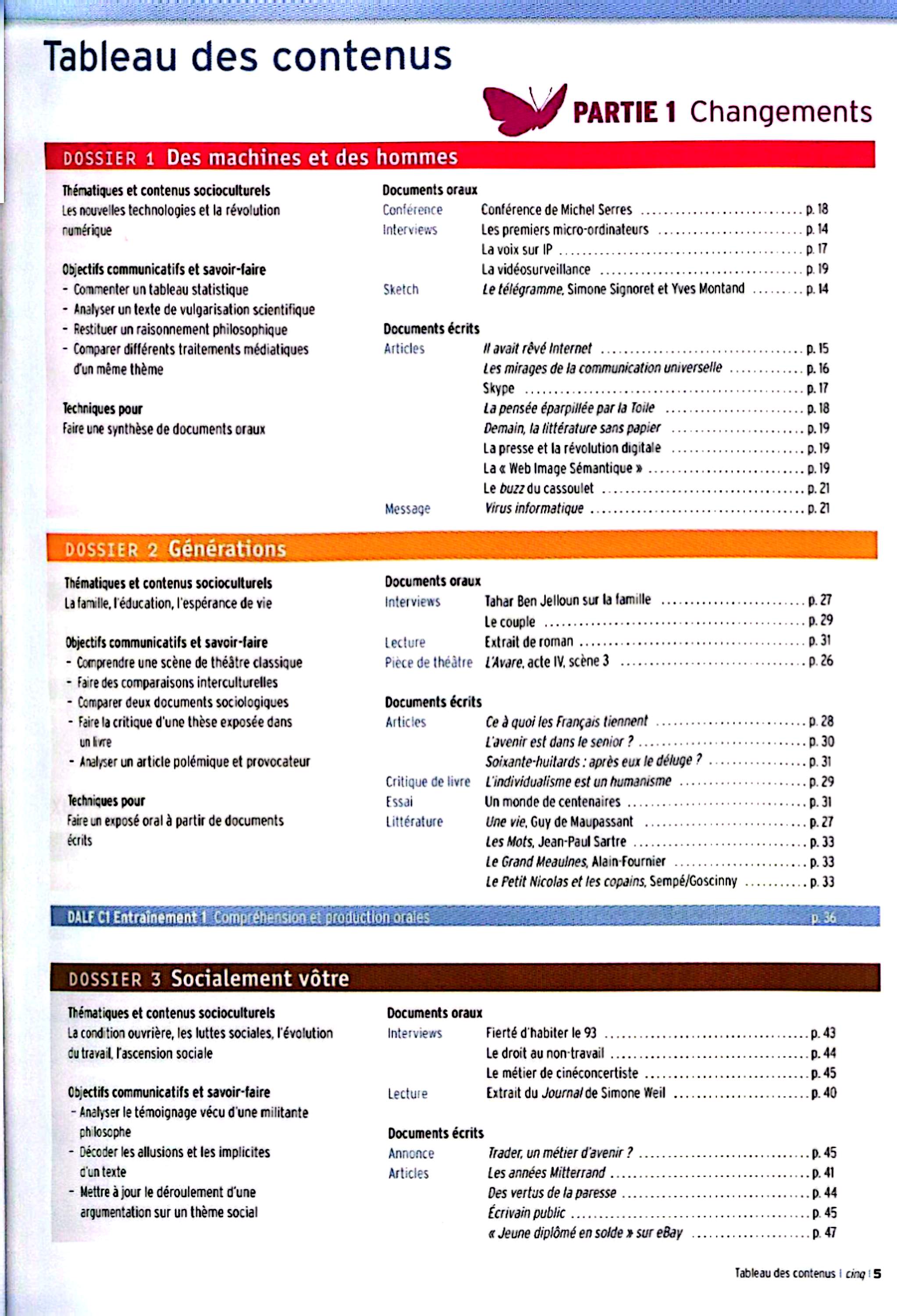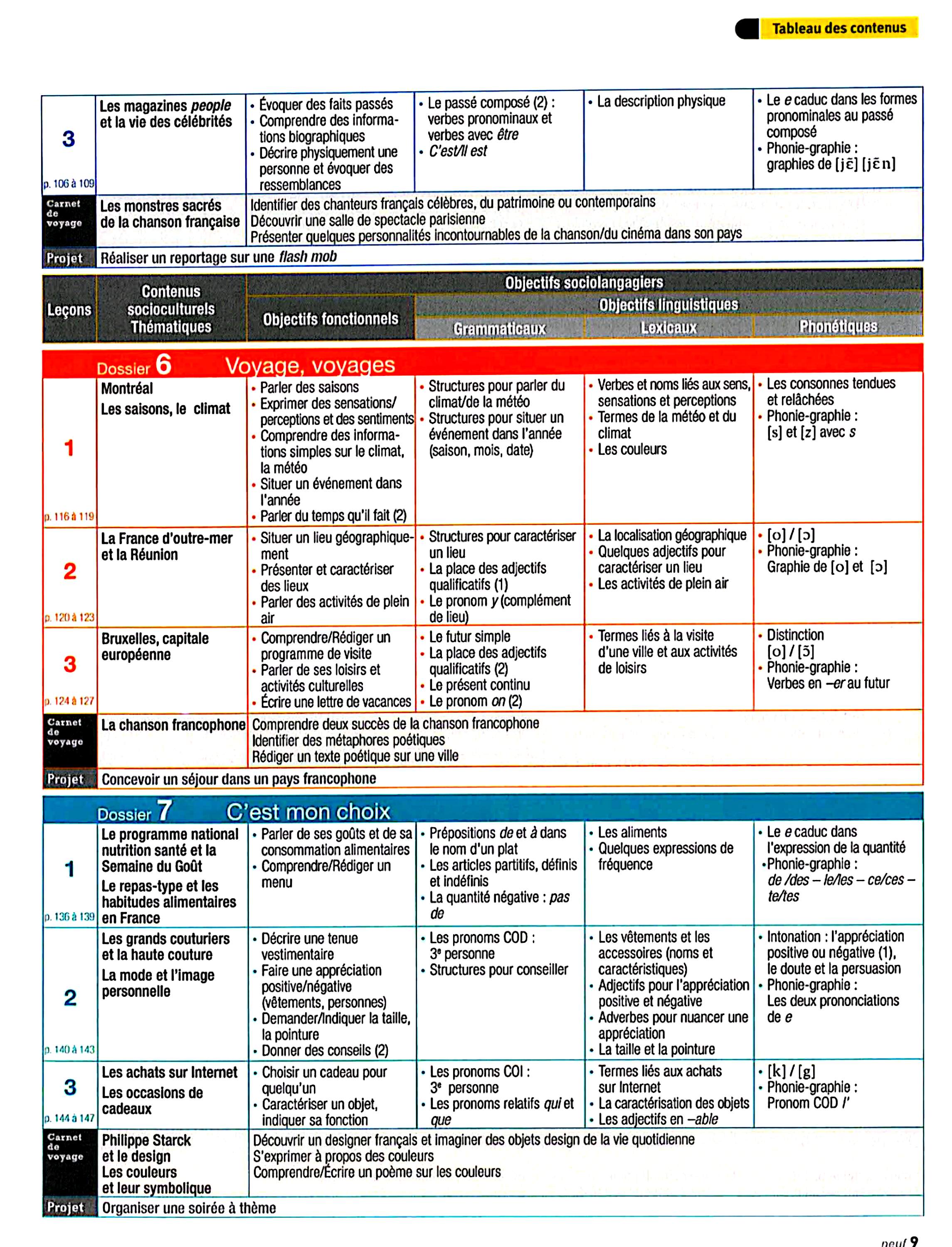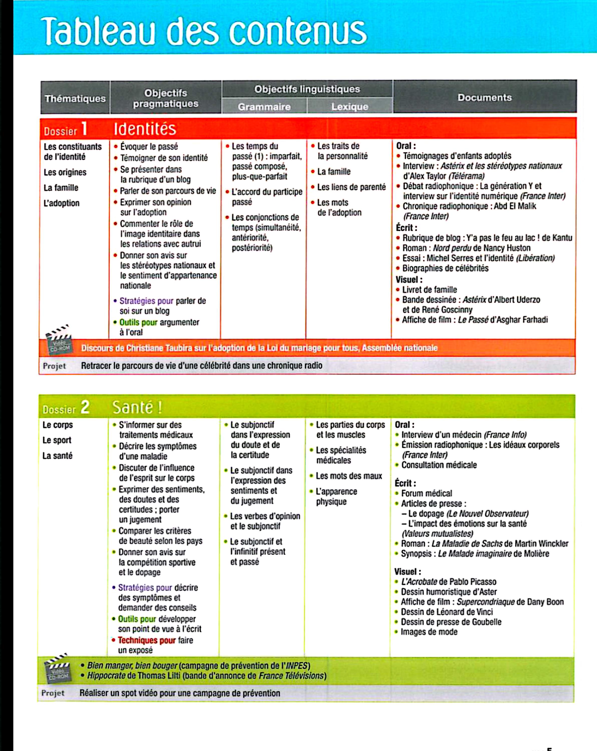 در این جلد ساختارهایی مانند ضمیرهای موصولی qui و que و à qui، گزارش غیرمستقیم، گذشته مرکب و ناقص، plus-que-parfait، ضمیرهای اشاره، ساختارهای توصیه و ضرورت، si + présent / impératif، ساختارهای بیان زمان، مقایسه و شکل مجهول آموزش داده میشود. همچنین واژگان مربوط به روابط، شخصیت، همسایگی، کار و استخدام، زندگی روزمره، تفاوتهای فرهنگی، رسانهها و روایت خبرها تمرین میشود.