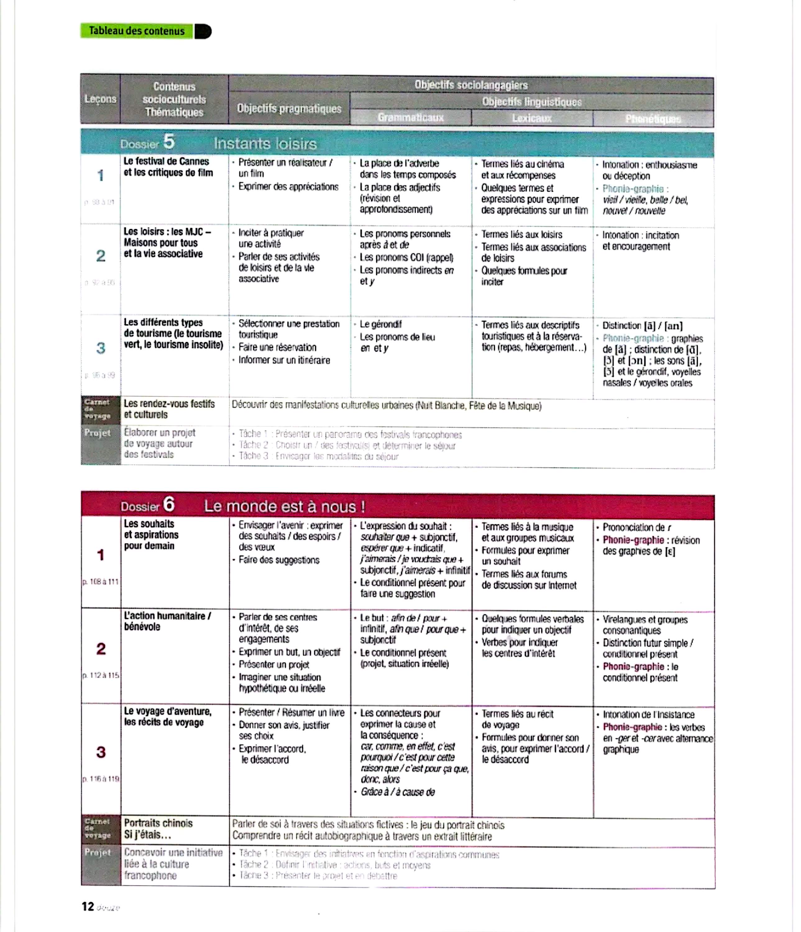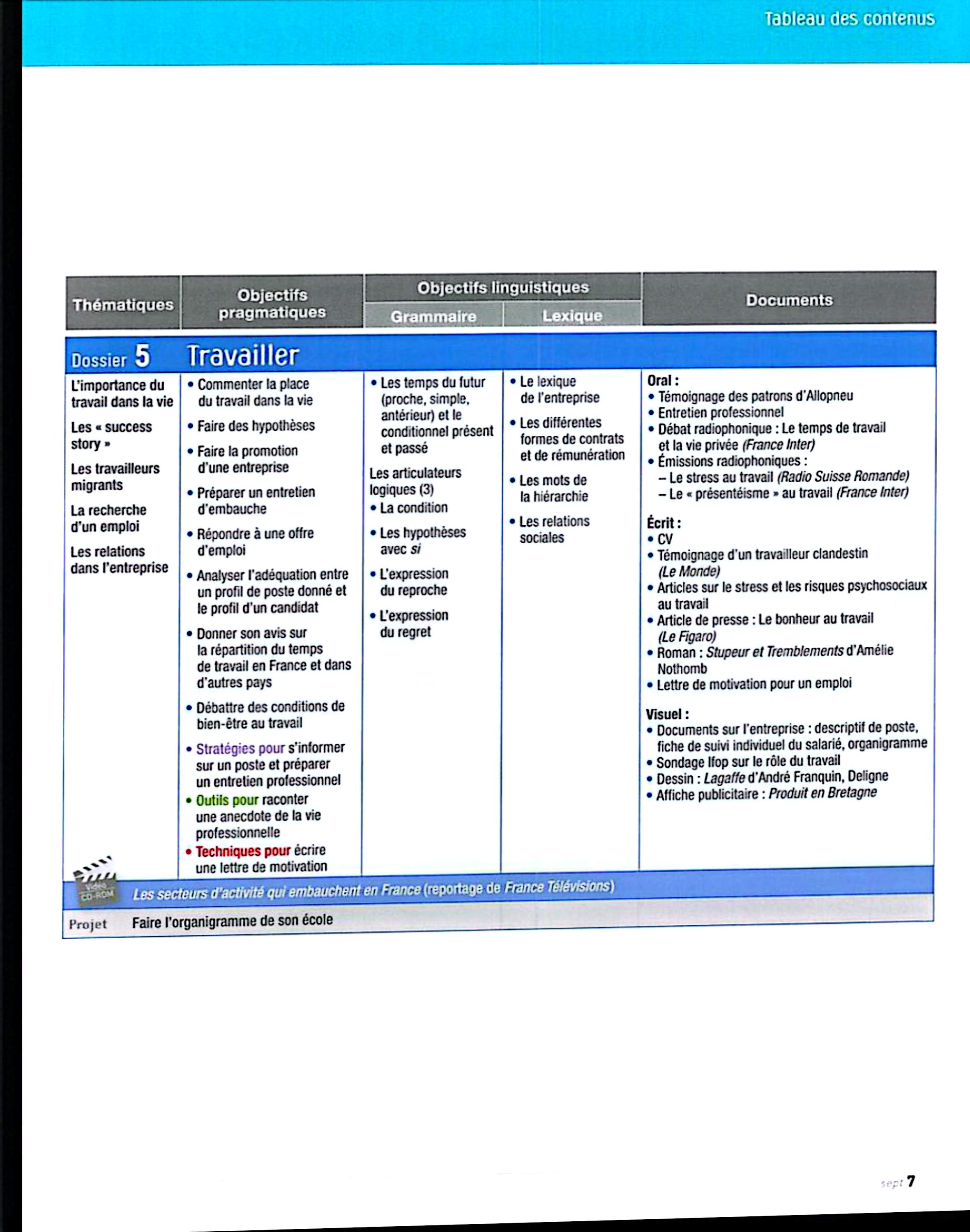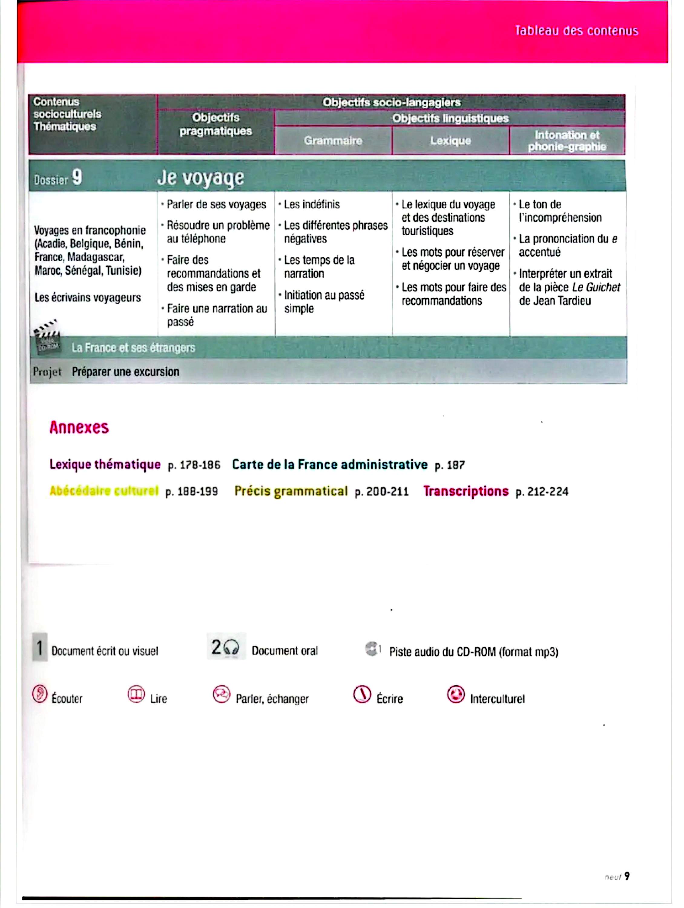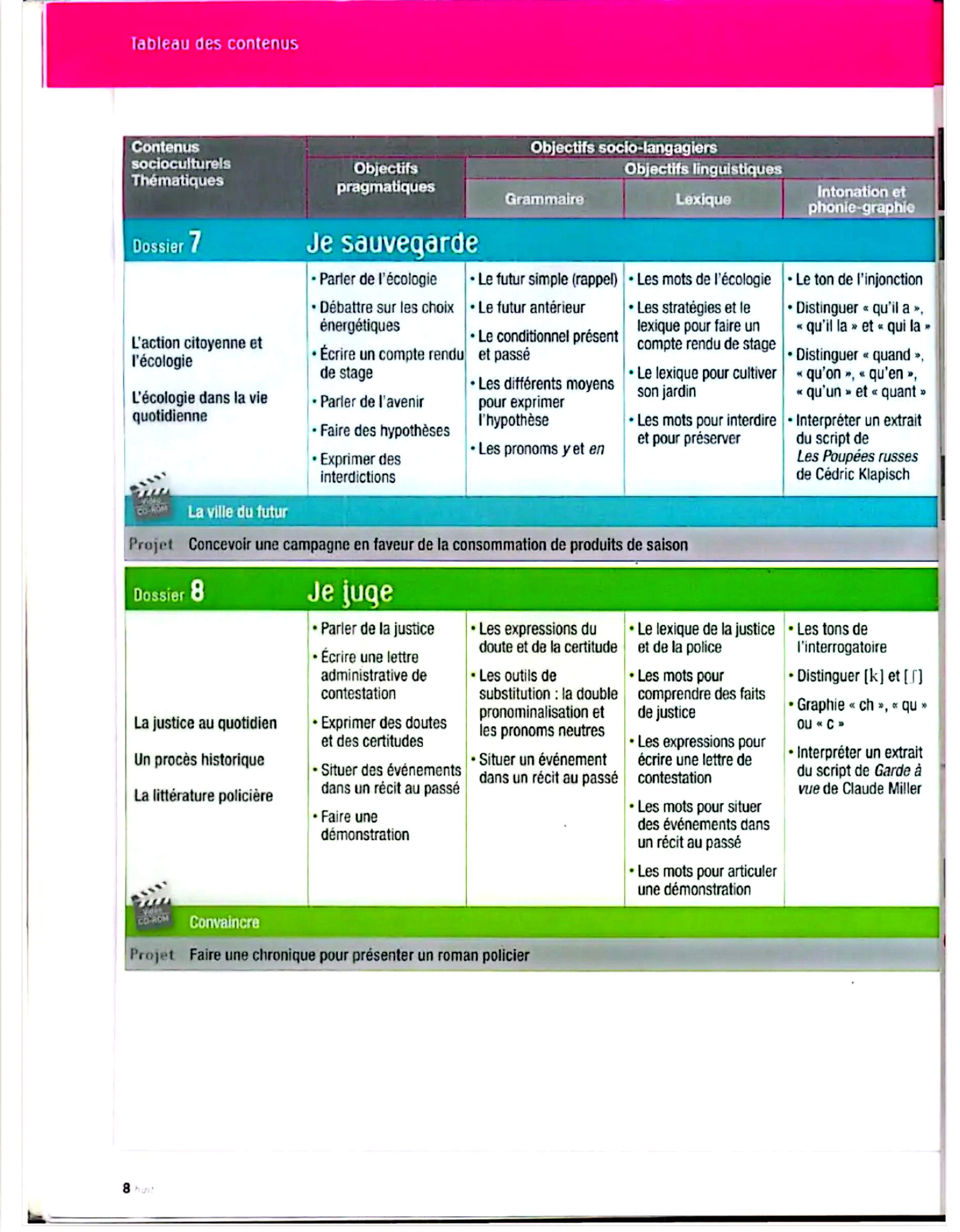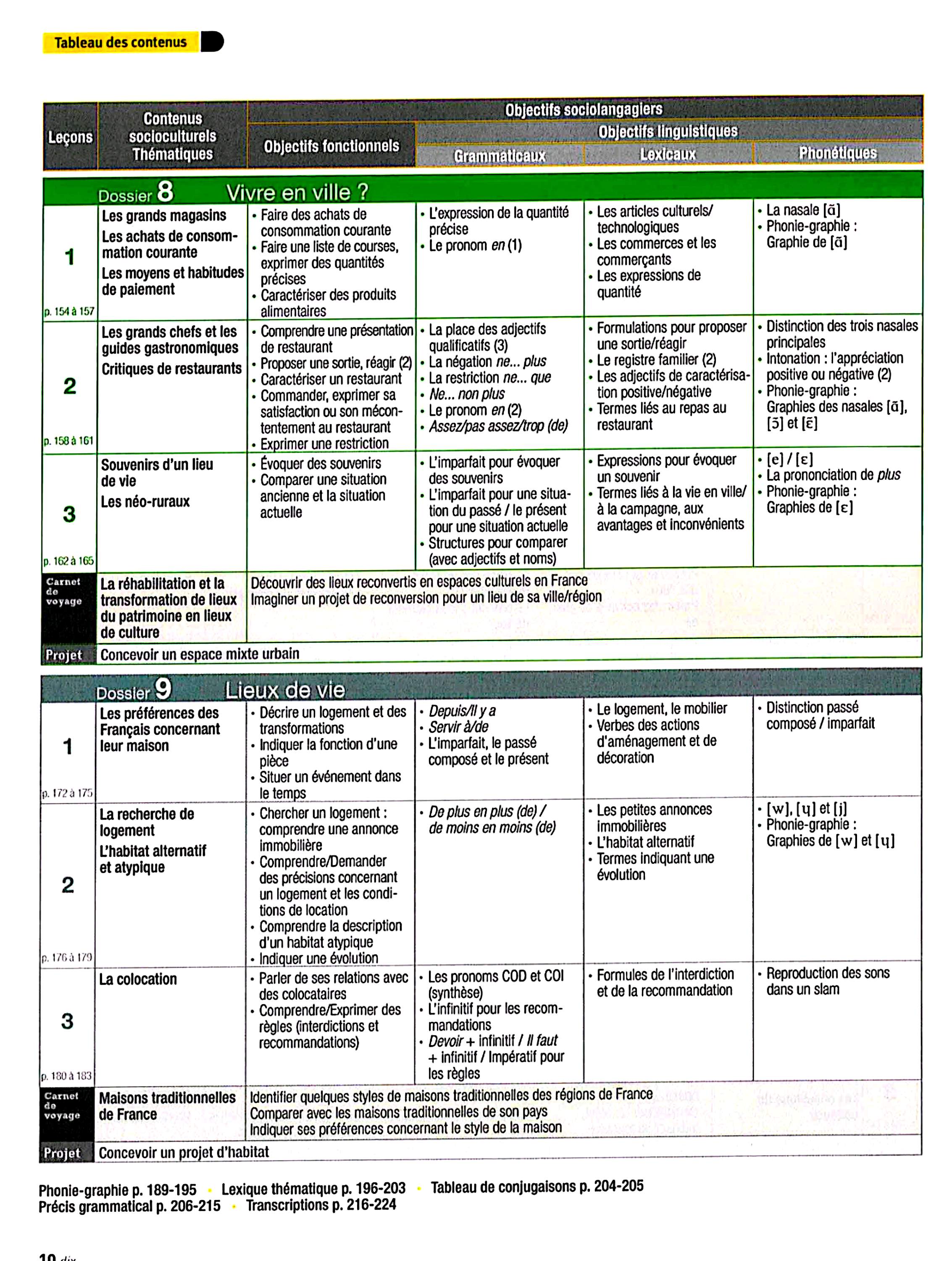 در این جلد ساختارهایی مانند ضمیرهای موصولی qui و que و à qui، گزارش غیرمستقیم، گذشته مرکب و ناقص، plus-que-parfait، ضمیرهای اشاره، ساختارهای توصیه و ضرورت، si + présent / impératif، ساختارهای بیان زمان، مقایسه و شکل مجهول آموزش داده میشود. همچنین واژگان مربوط به روابط، شخصیت، همسایگی، کار و استخدام، زندگی روزمره، تفاوتهای فرهنگی، رسانهها و روایت خبرها تمرین میشود.