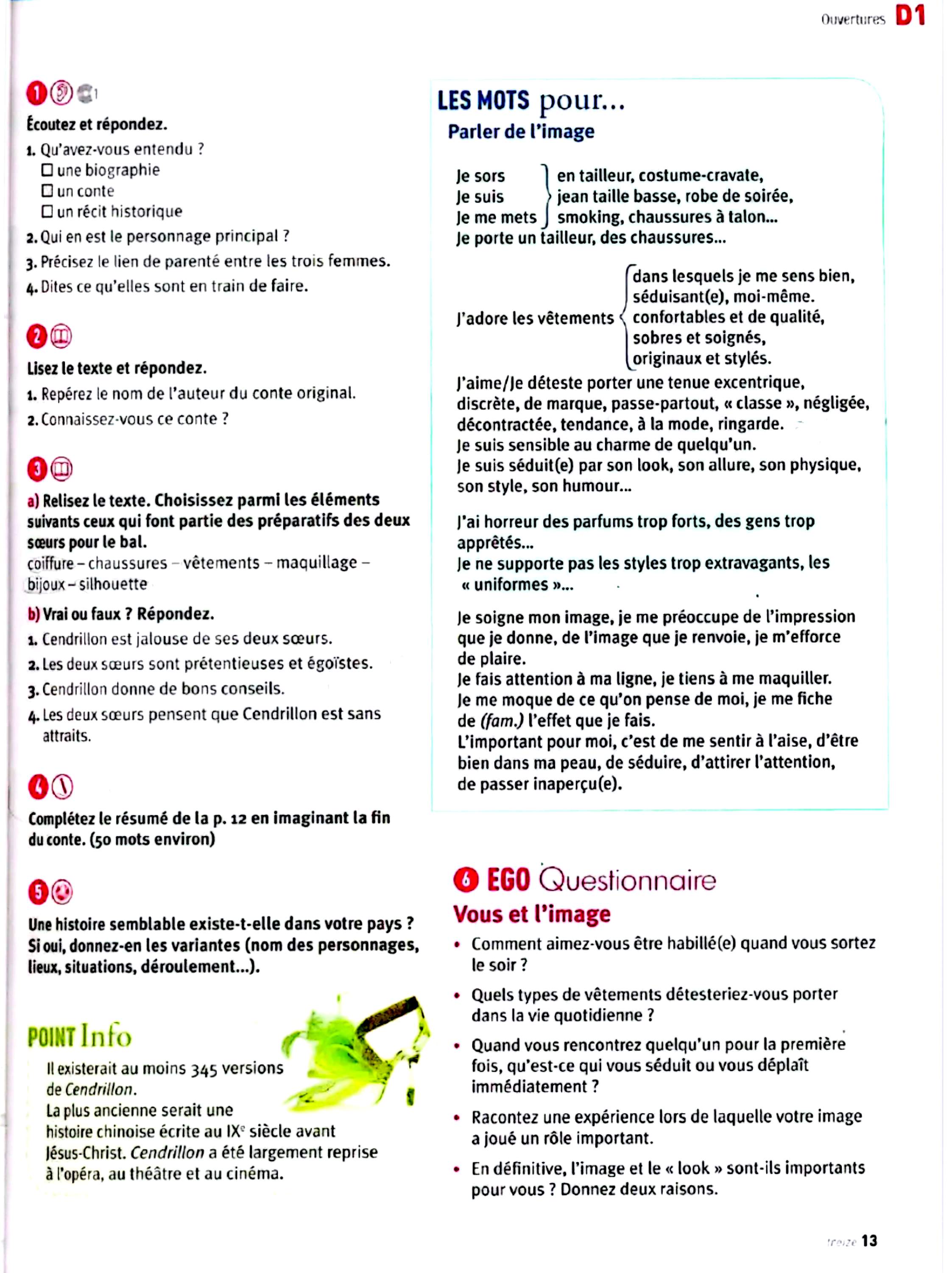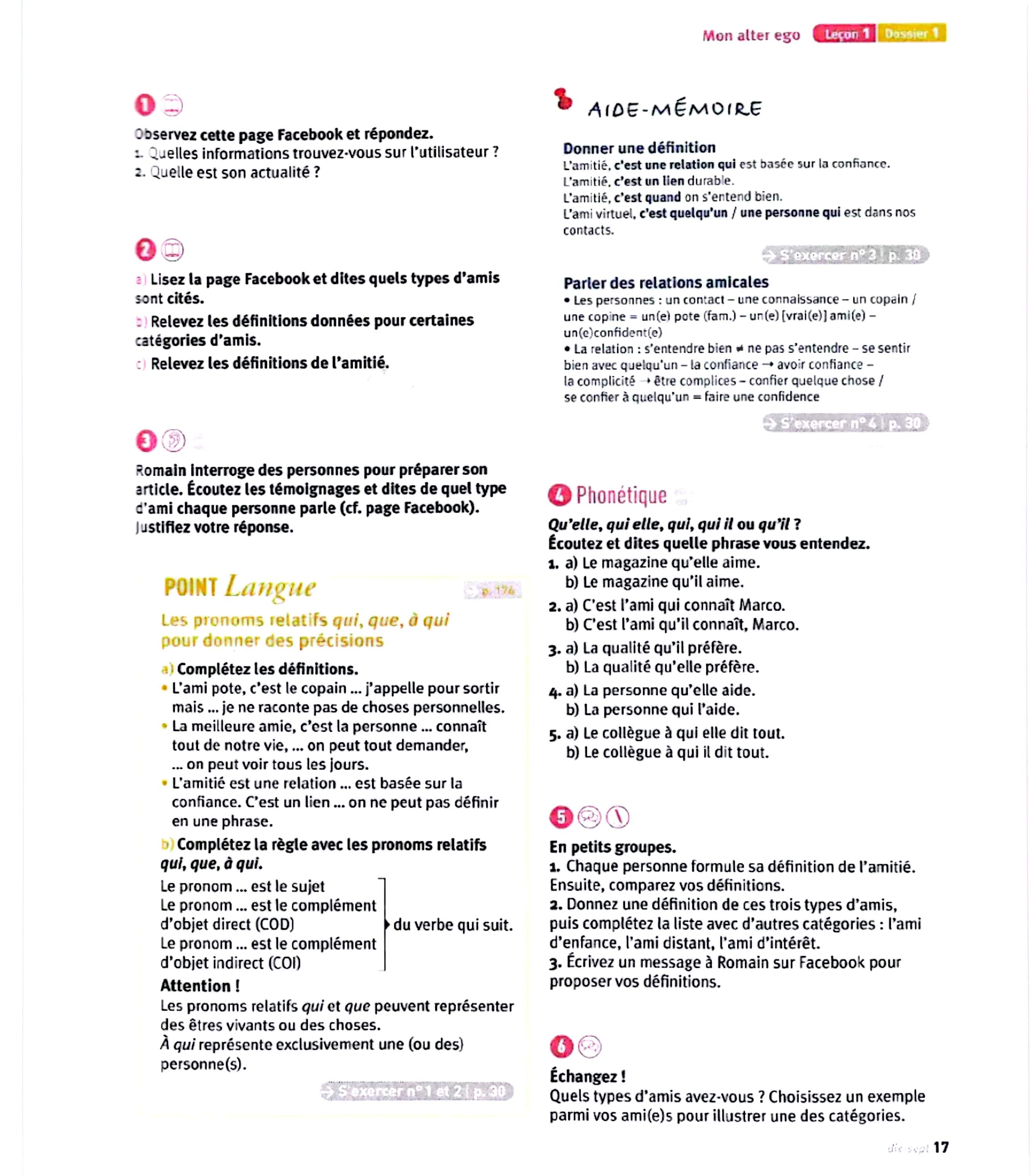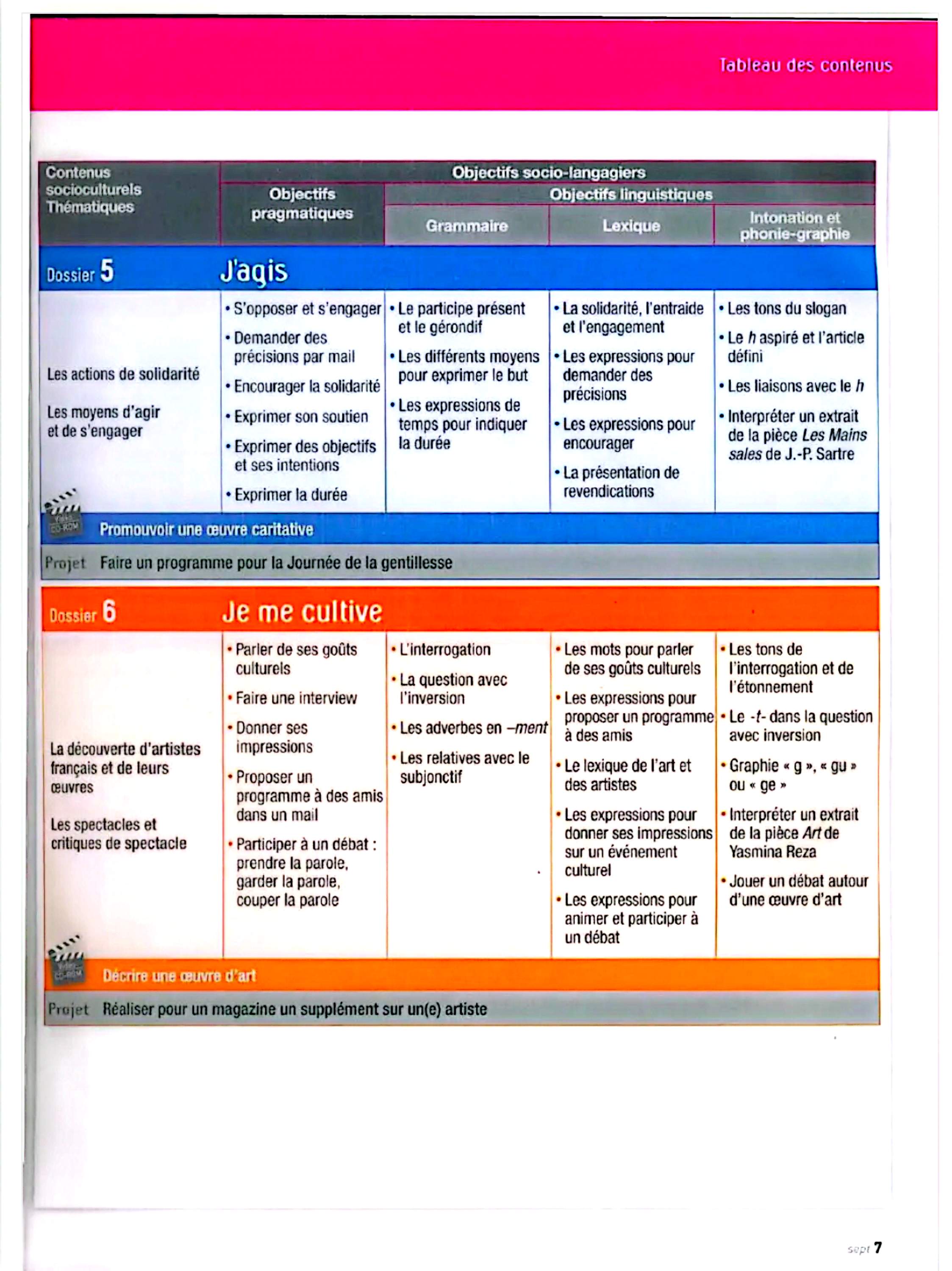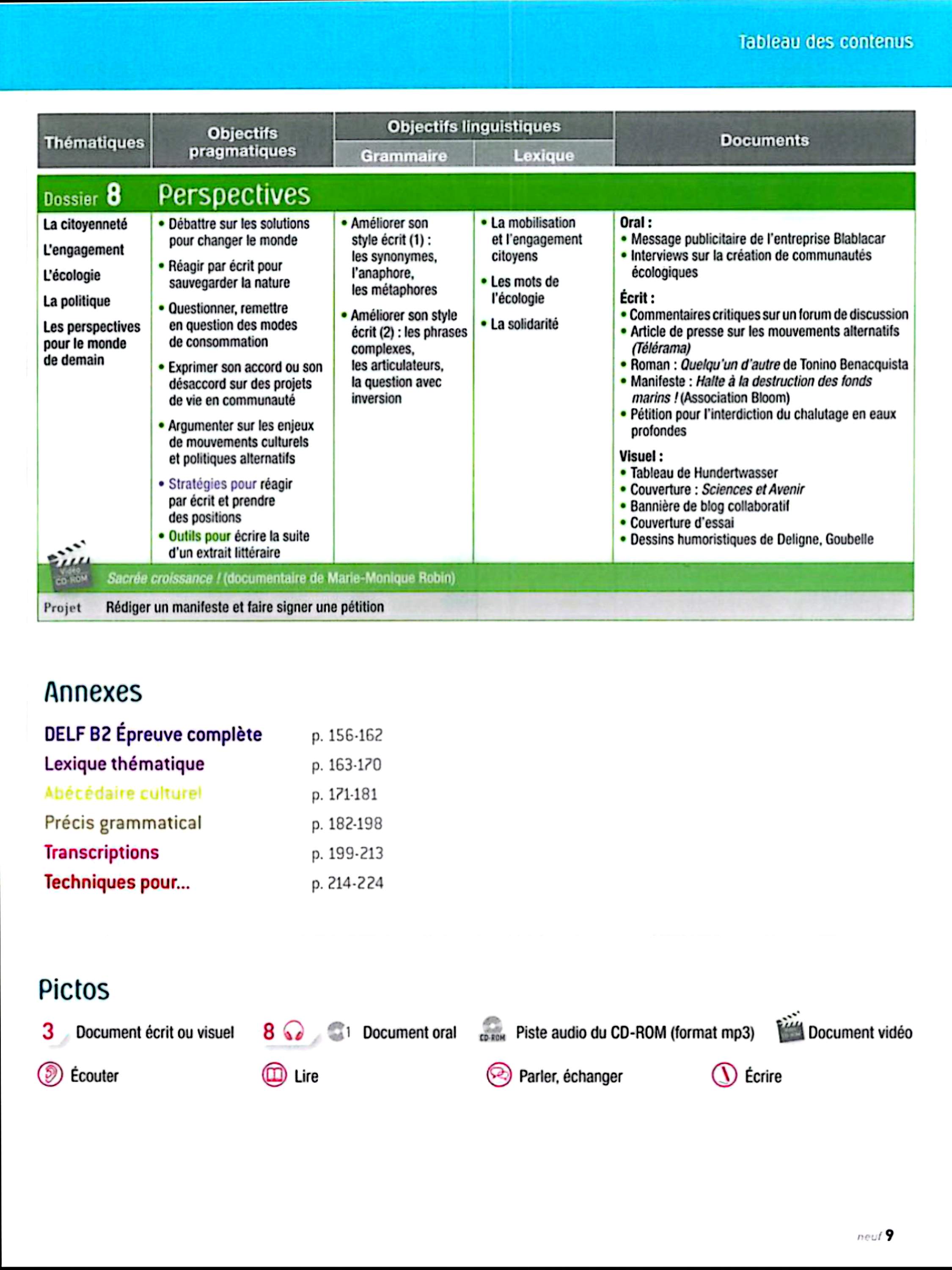 در این جلد ساختارهایی مانند ضمیرهای موصولی qui و que و à qui، گزارش غیرمستقیم، گذشته مرکب و ناقص، plus-que-parfait، ضمیرهای اشاره، ساختارهای توصیه و ضرورت، si + présent / impératif، ساختارهای بیان زمان، مقایسه و شکل مجهول آموزش داده میشود. همچنین واژگان مربوط به روابط، شخصیت، همسایگی، کار و استخدام، زندگی روزمره، تفاوتهای فرهنگی، رسانهها و روایت خبرها تمرین میشود.