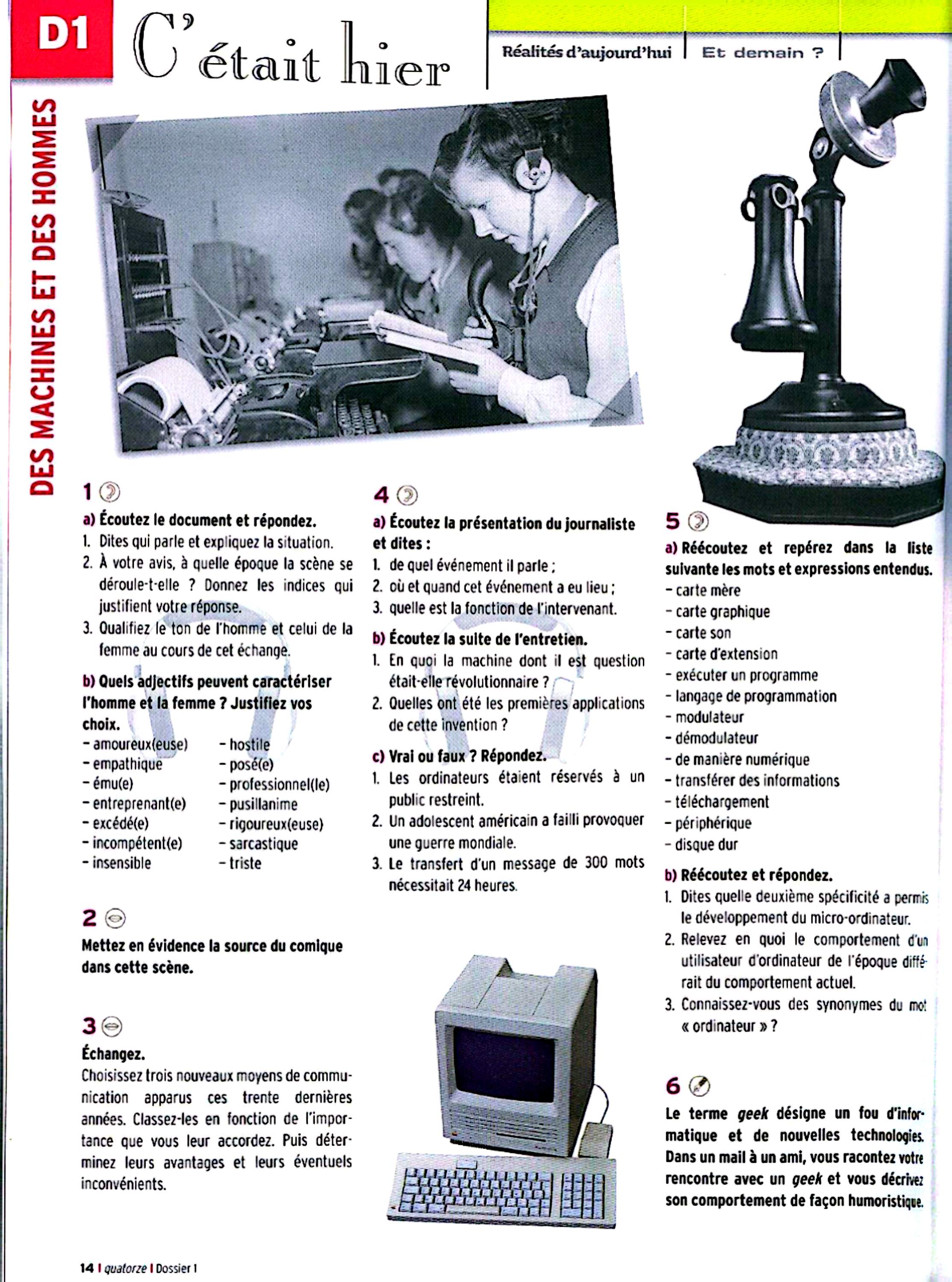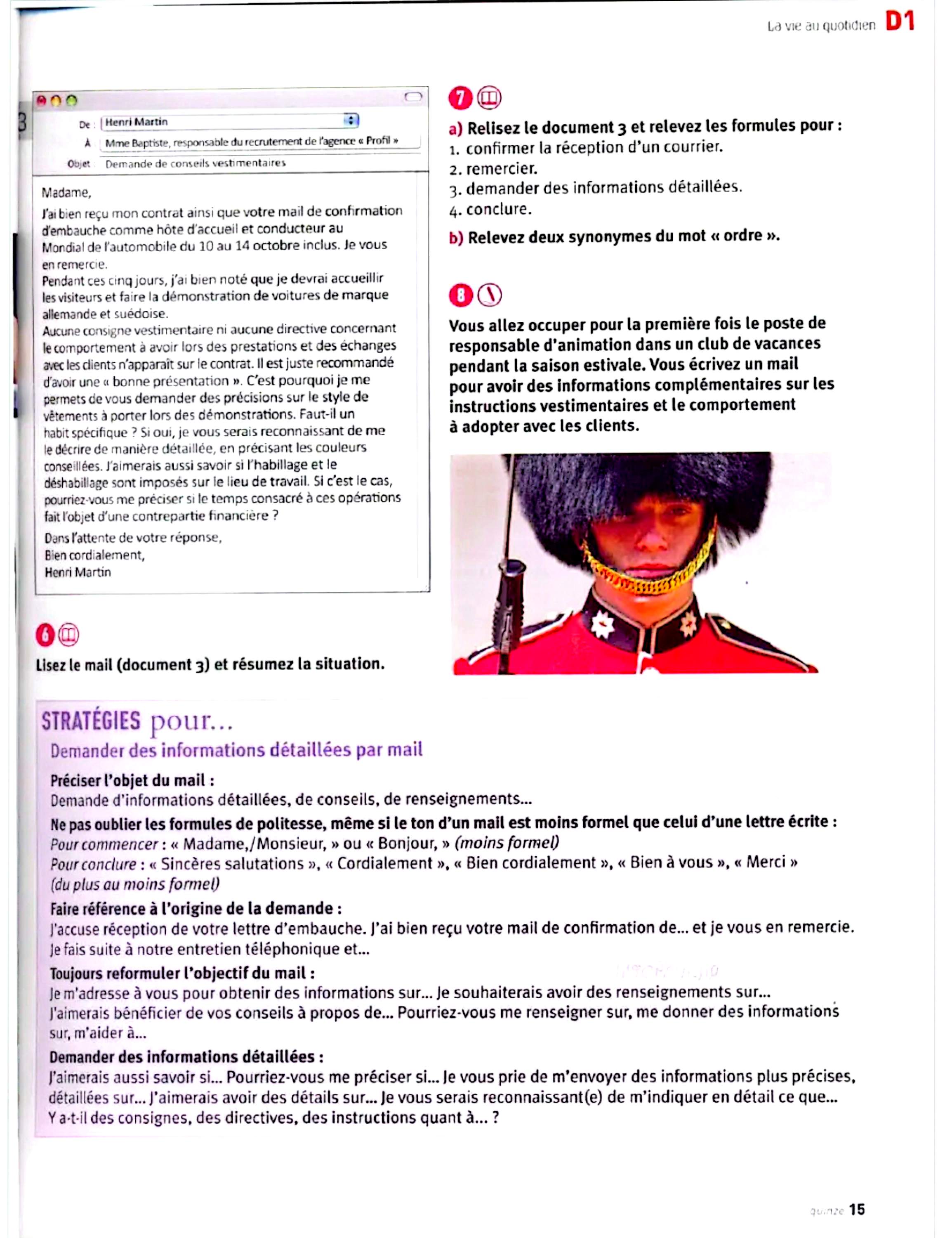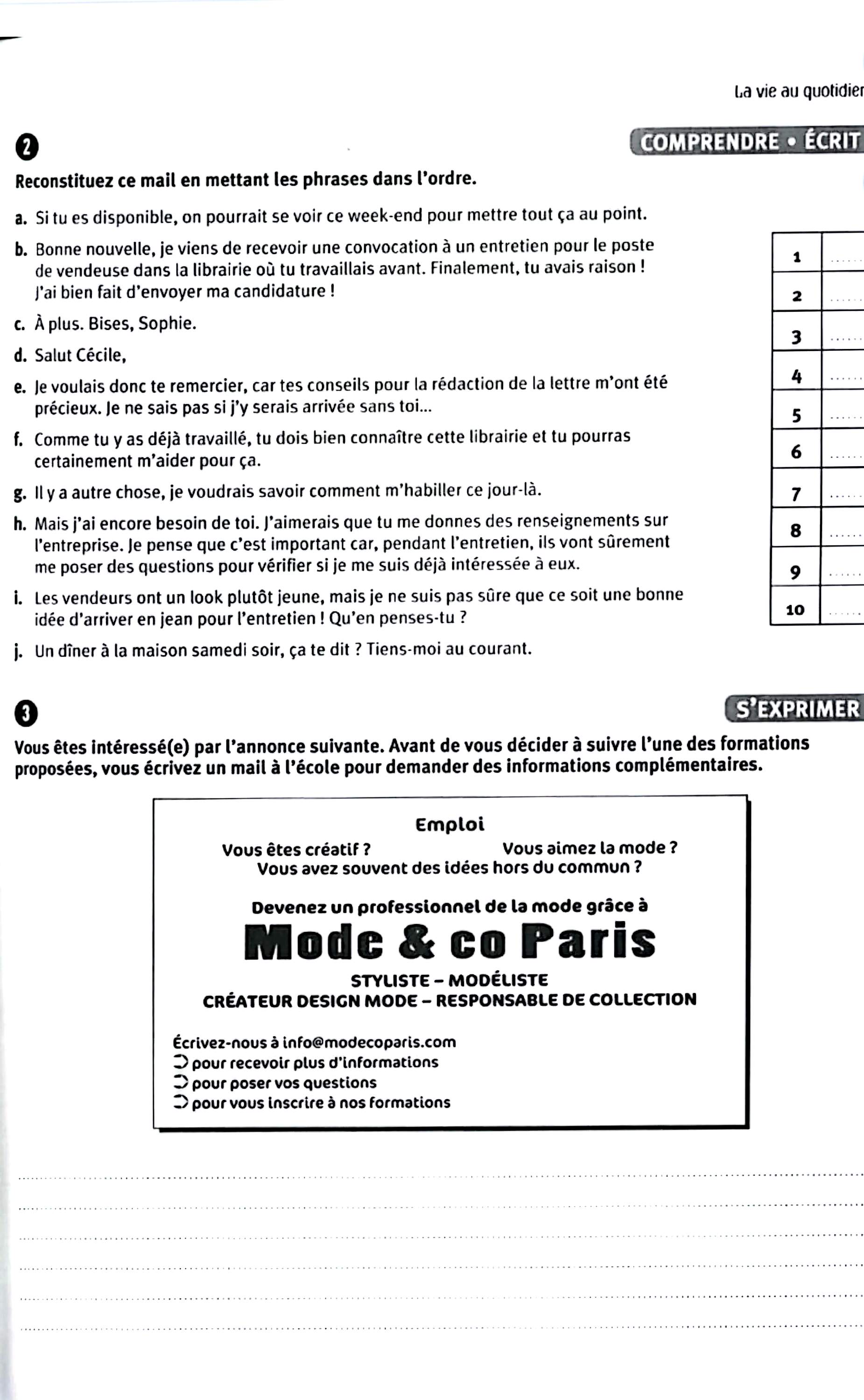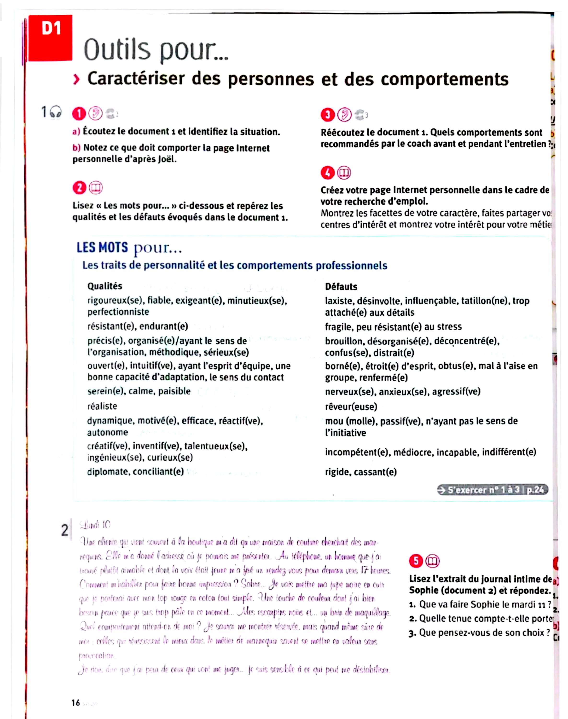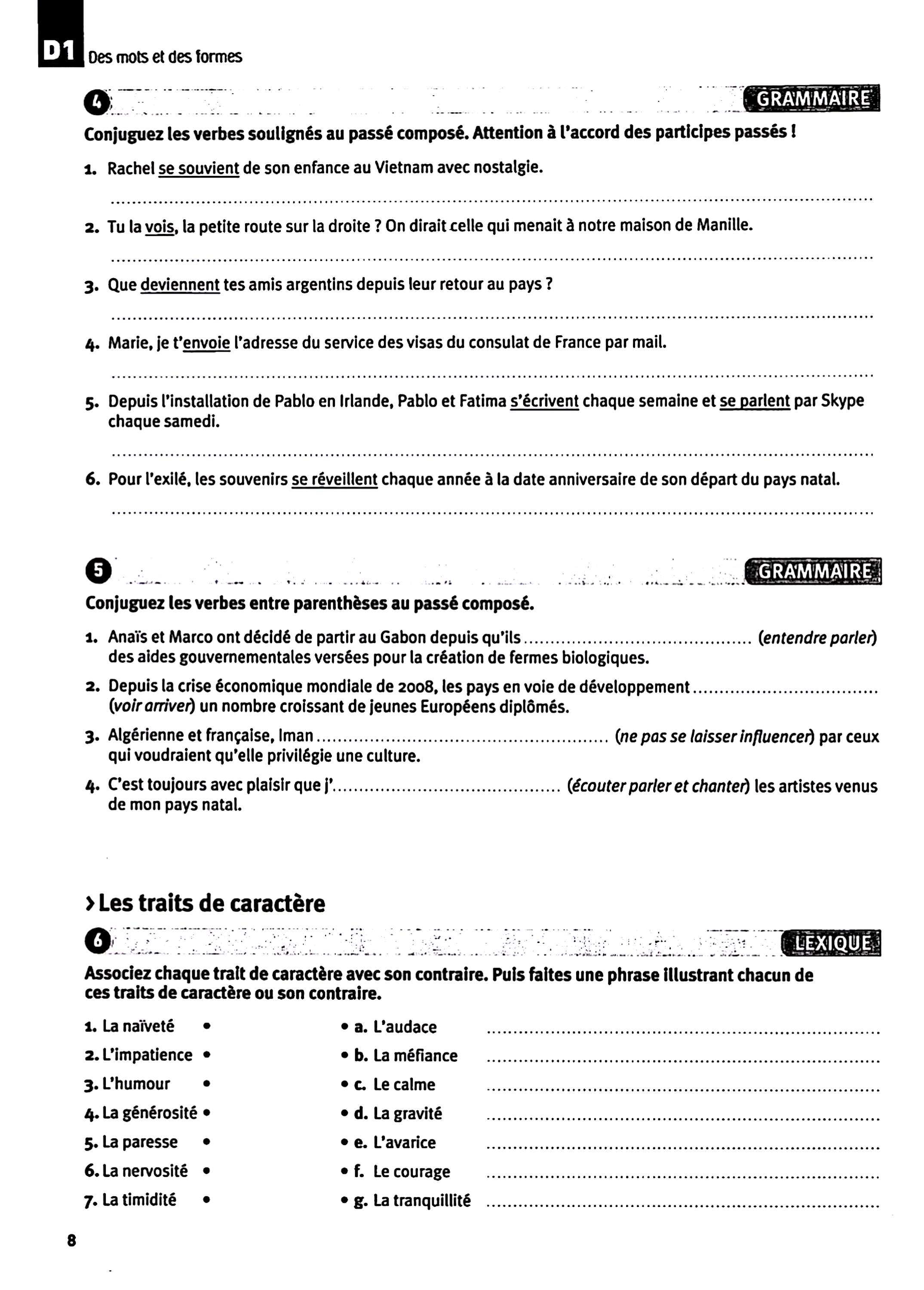 در این جلد ساختارهایی مانند ضمیرهای موصولی qui و que و à qui، گزارش غیرمستقیم، گذشته مرکب و ناقص، plus-que-parfait، ضمیرهای اشاره، ساختارهای توصیه و ضرورت، si + présent / impératif، ساختارهای بیان زمان، مقایسه و شکل مجهول آموزش داده میشود. همچنین واژگان مربوط به روابط، شخصیت، همسایگی، کار و استخدام، زندگی روزمره، تفاوتهای فرهنگی، رسانهها و روایت خبرها تمرین میشود.