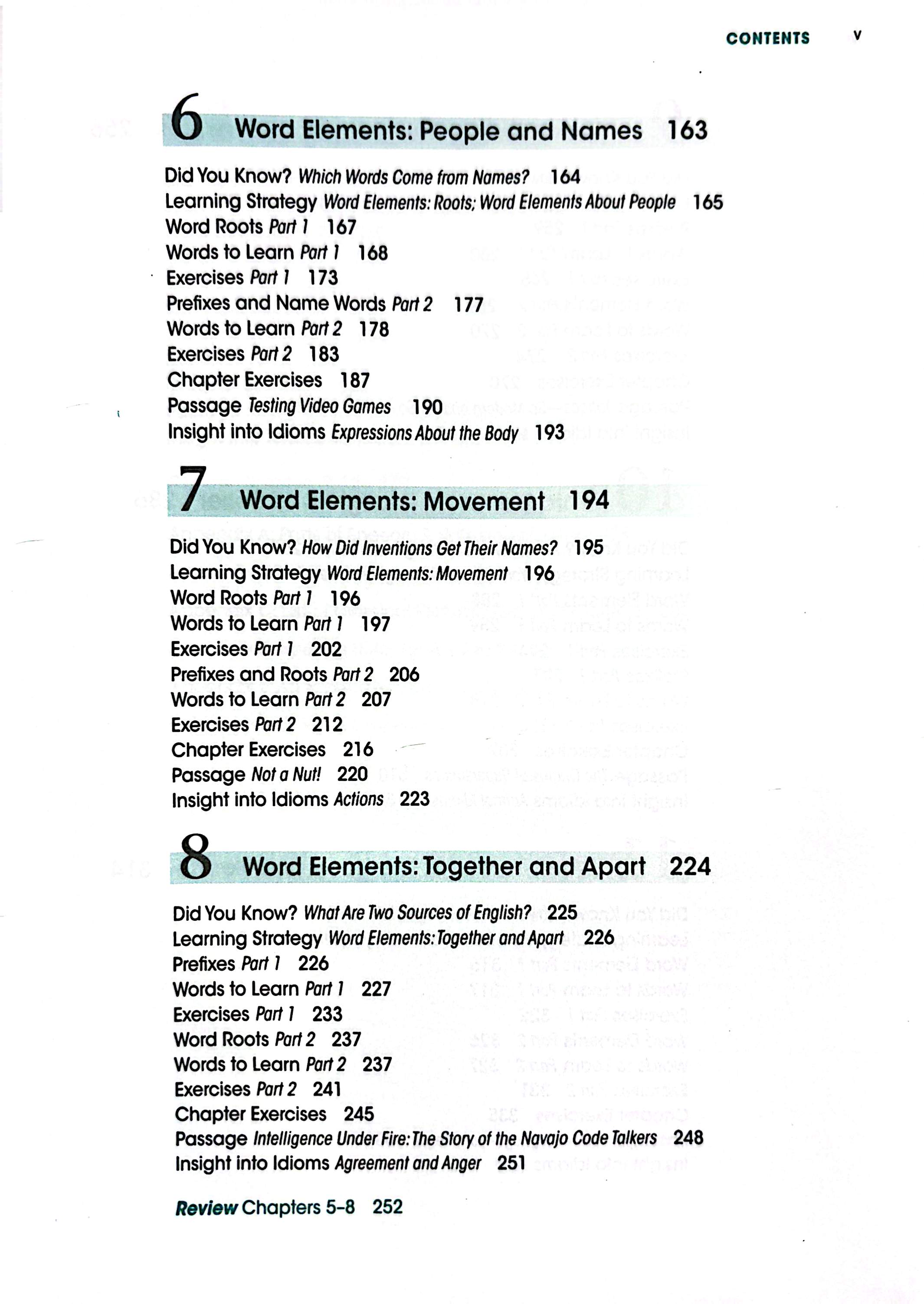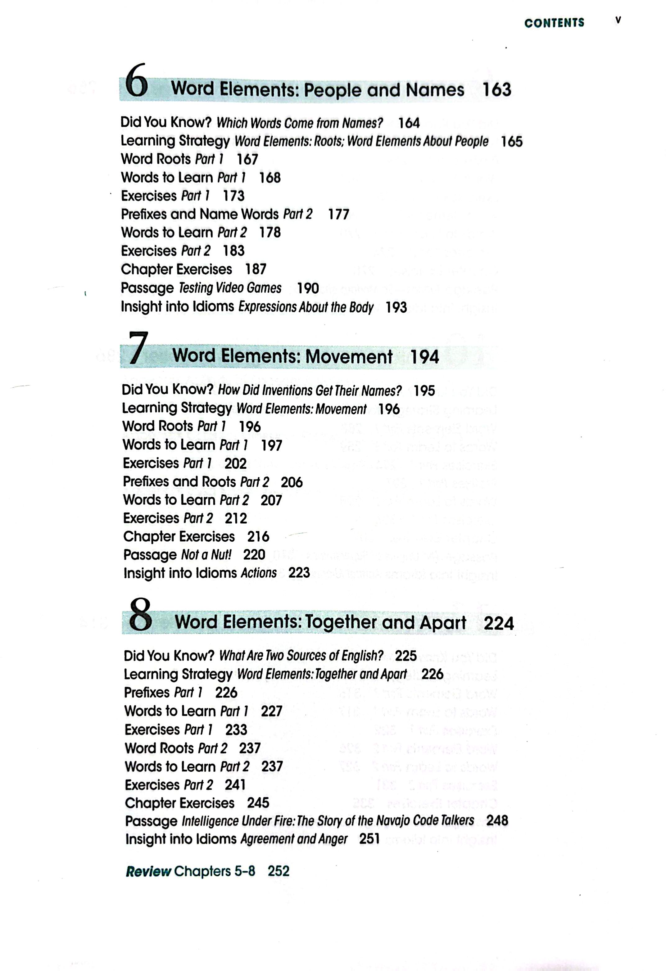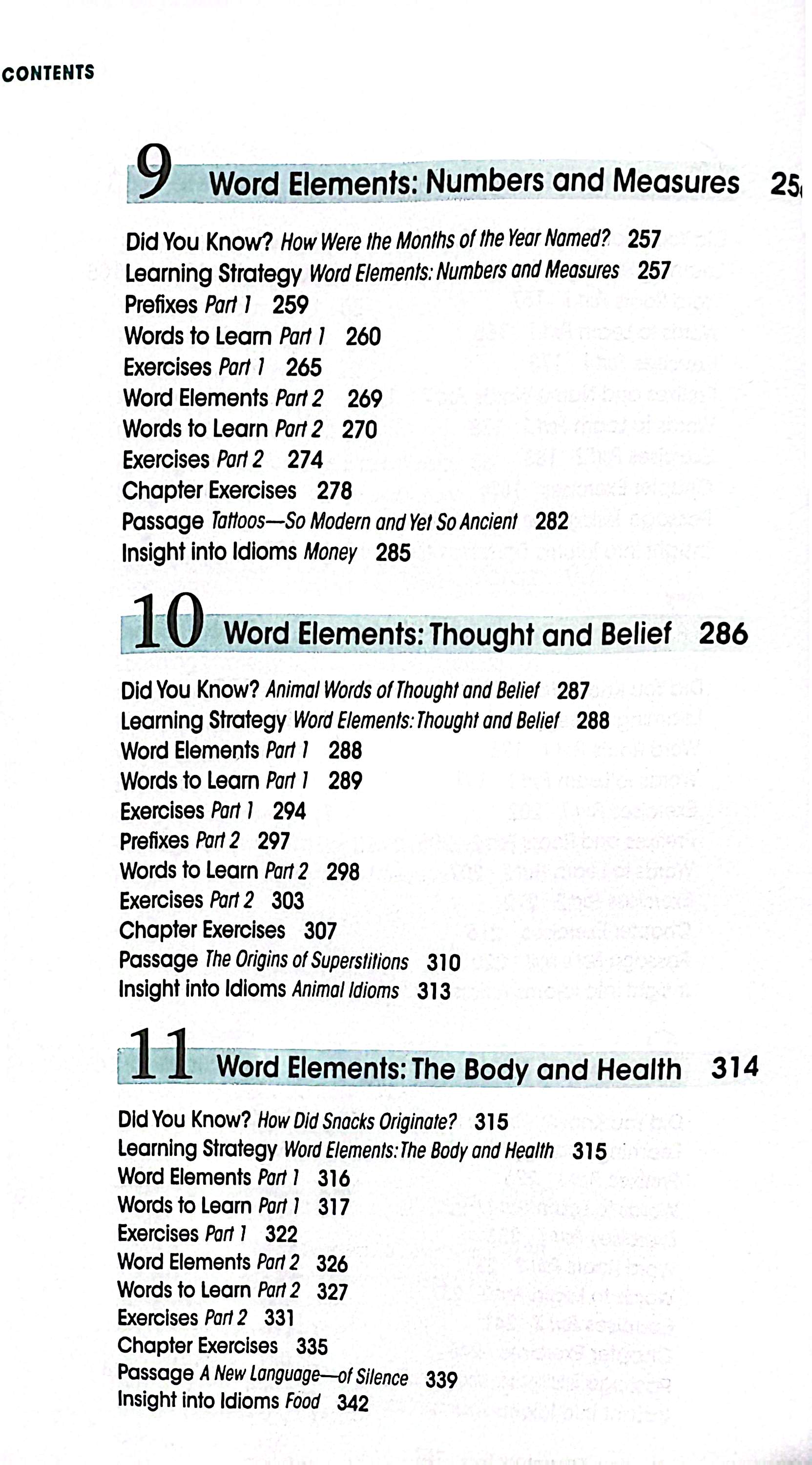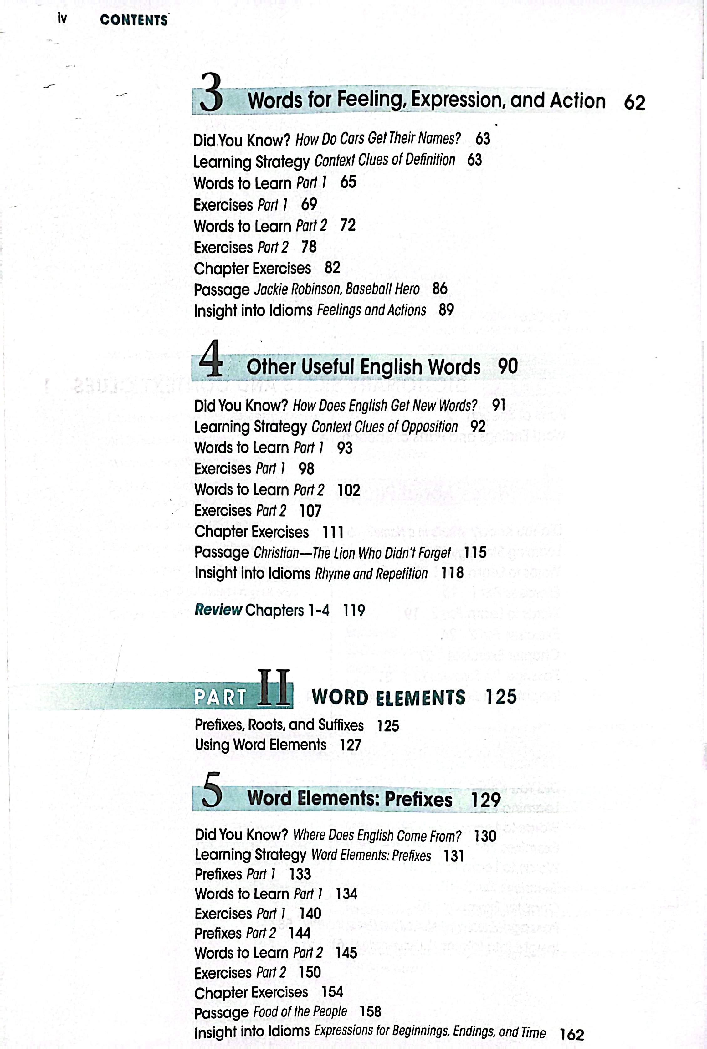 واژگان زبان انگلیسی برساند. کتاب از مباحث پایه مثل اجزای کلام (Parts of Speech)، مهارت استفاده از دیکشنری و حدس معنی از روی متن (Context Clues) شروع میکند و بهتدریج