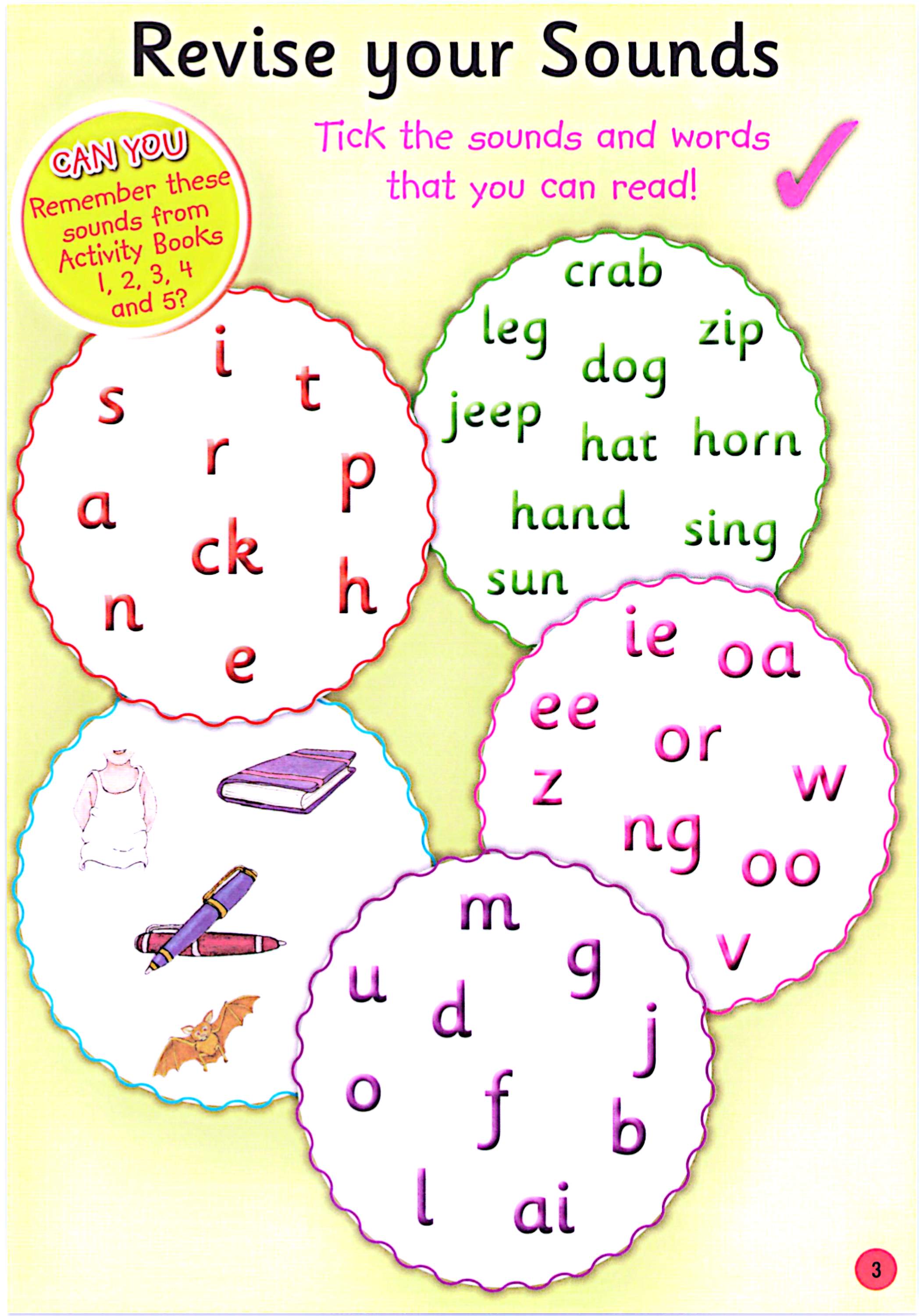در Book 3، کودکان با صداها و ترکیبهای جدید مانند تلفظهای جایگزین برای صداهای مشابه (Alternative letter-sound spellings) و مجموعهای از کلمات دشوار جدید آشنا میشوند.