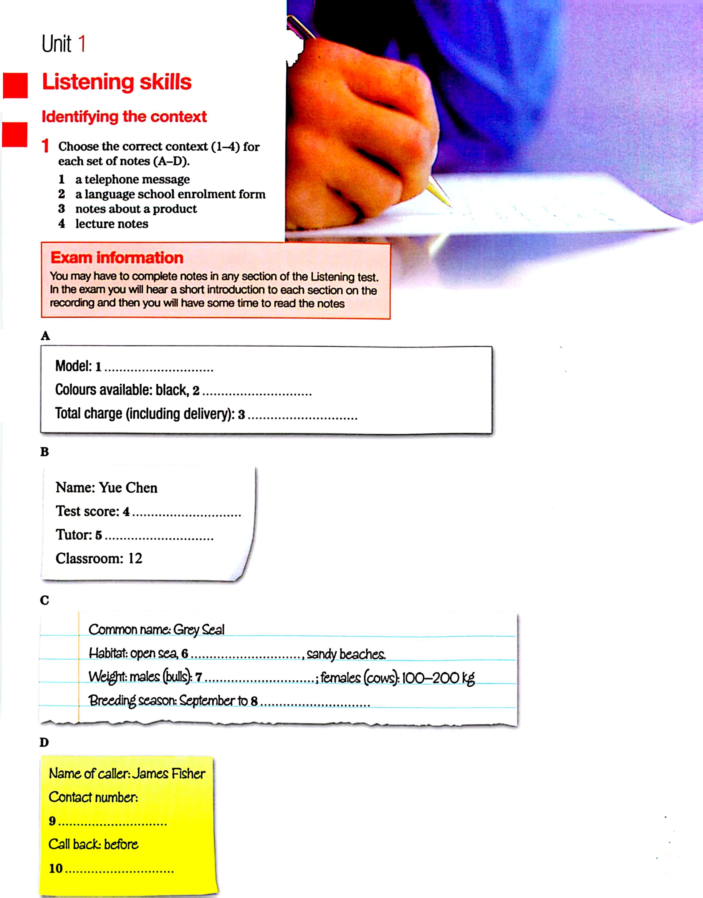پر کردن جداول، تحلیل گفتوگوها و درک هدف گوینده است. بخش شنیداری با نمونههای