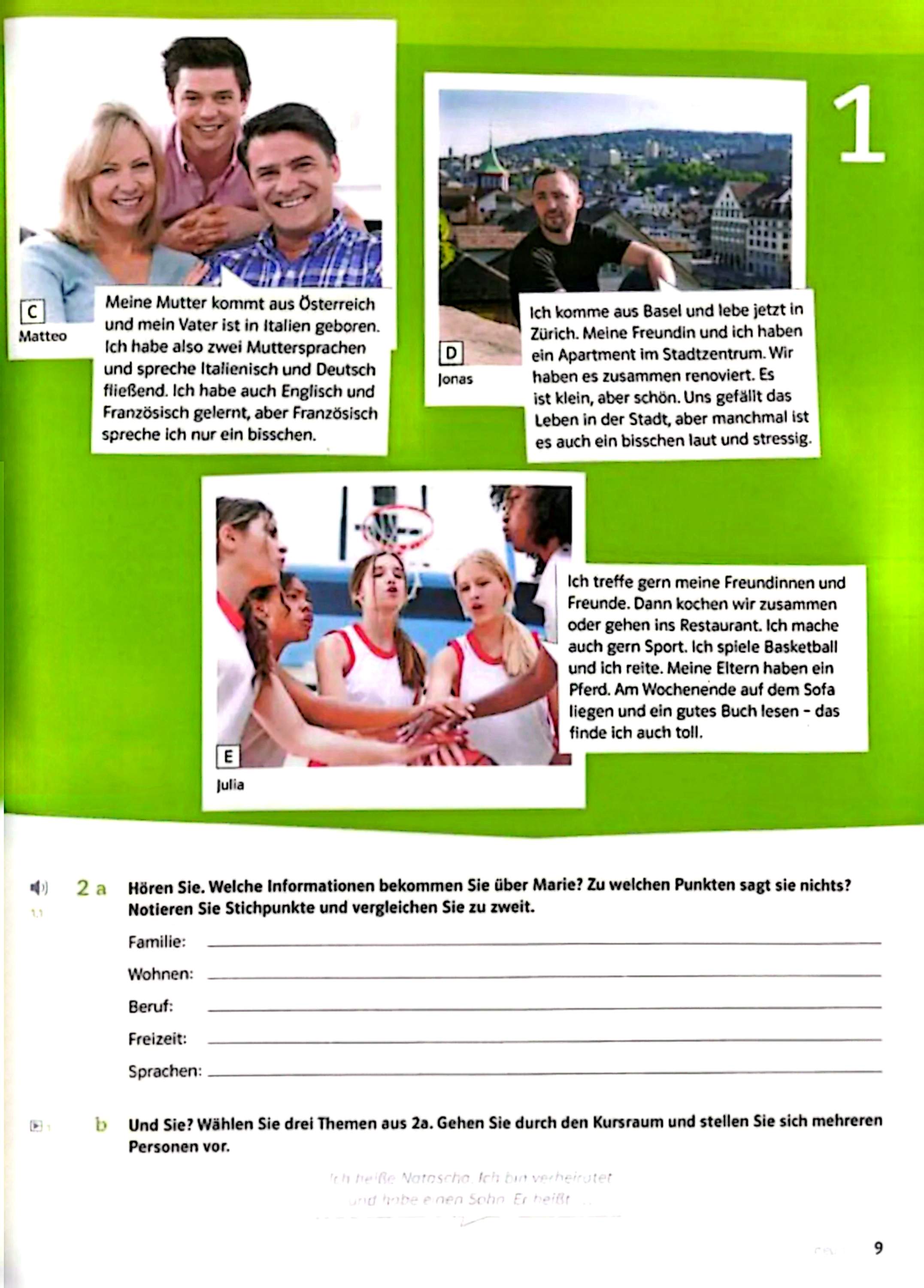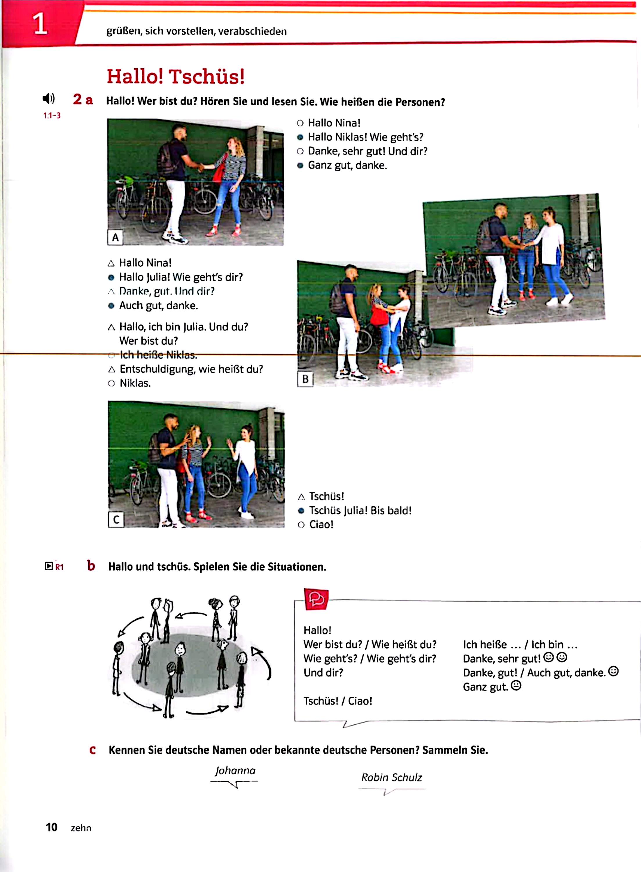 در بخش A1.1، زبانآموز با مبانی اولیه زبان آلمانی آشنا میشود.