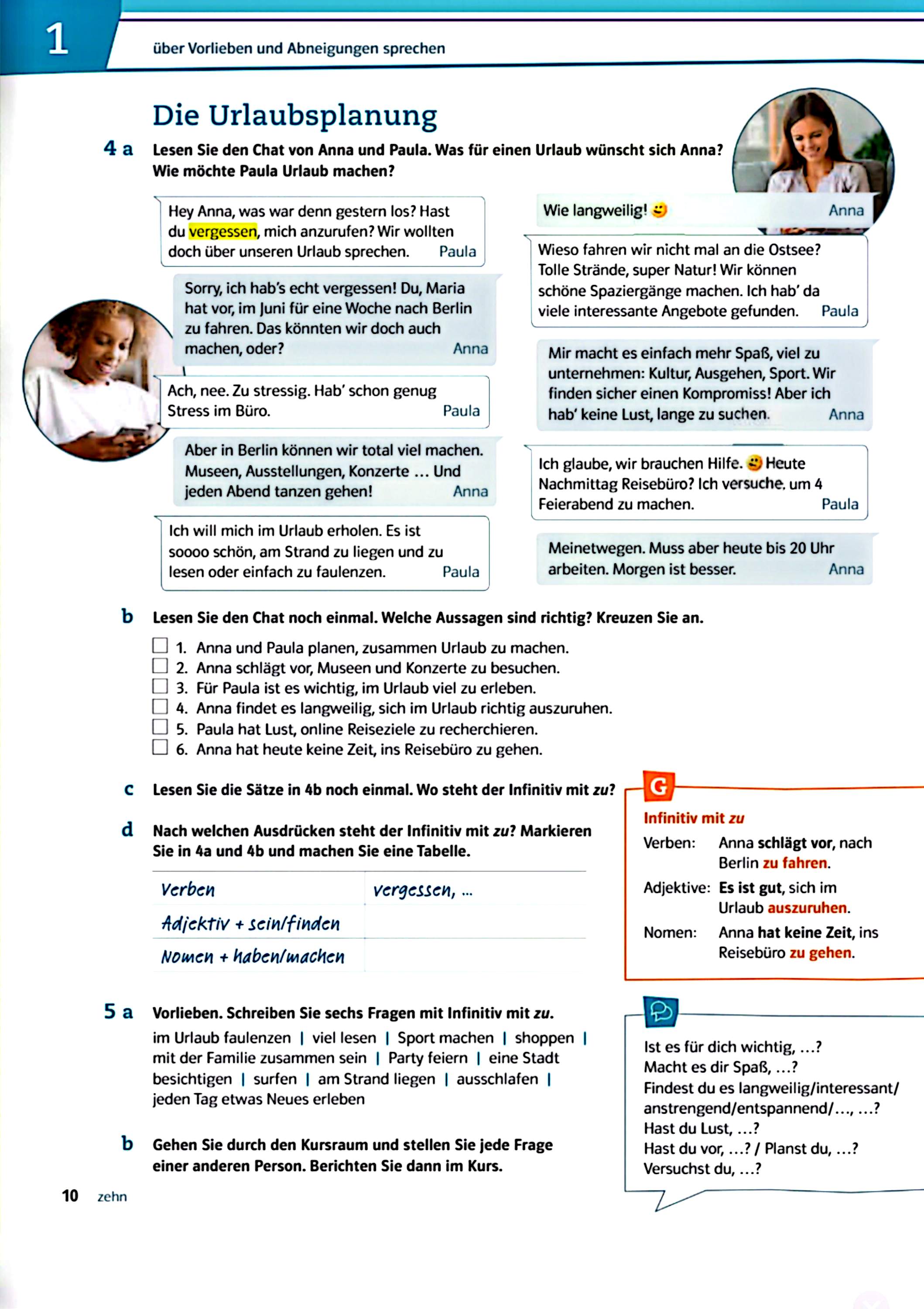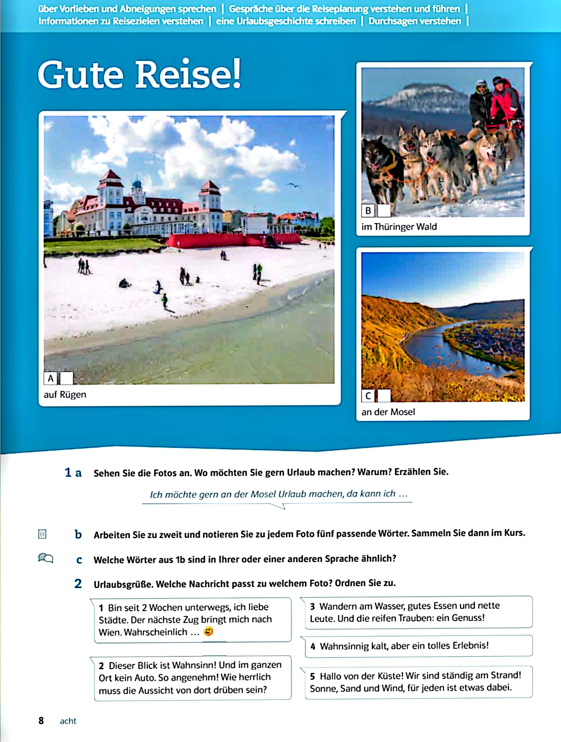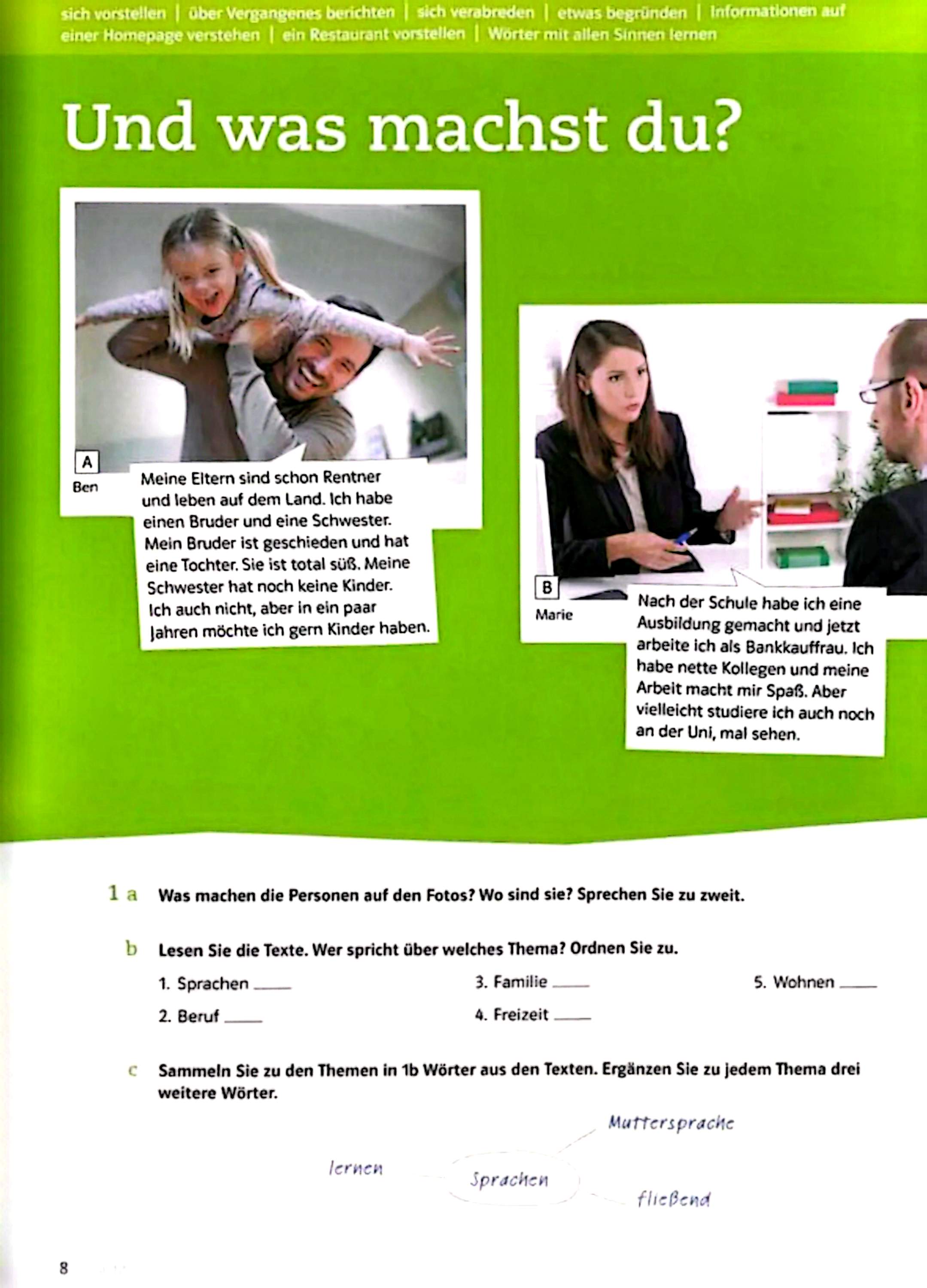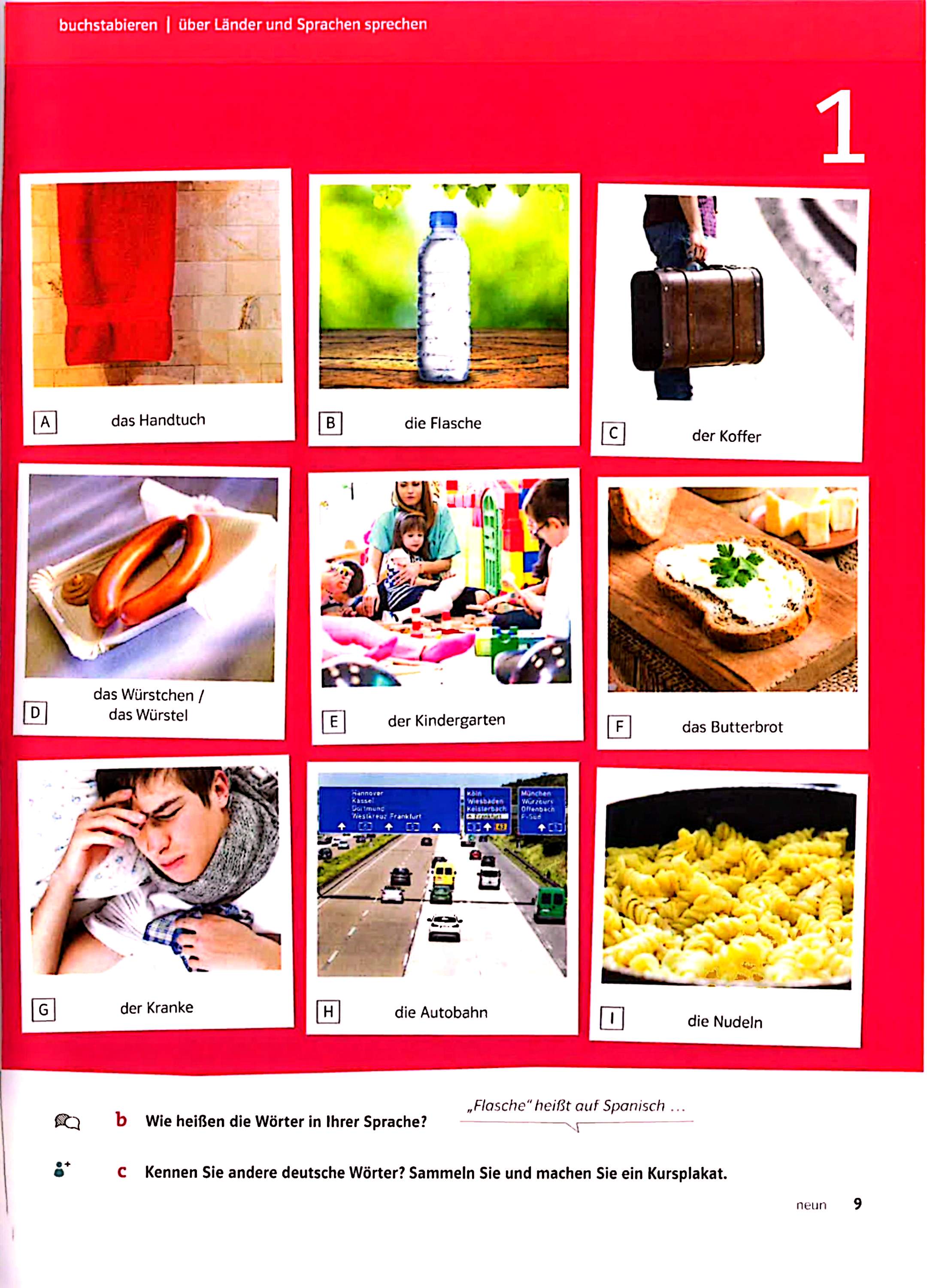 توضیحات و تمرینها به زبان آلمانی نوشته شدهاند تا زبانآموز از همان ابتدا در