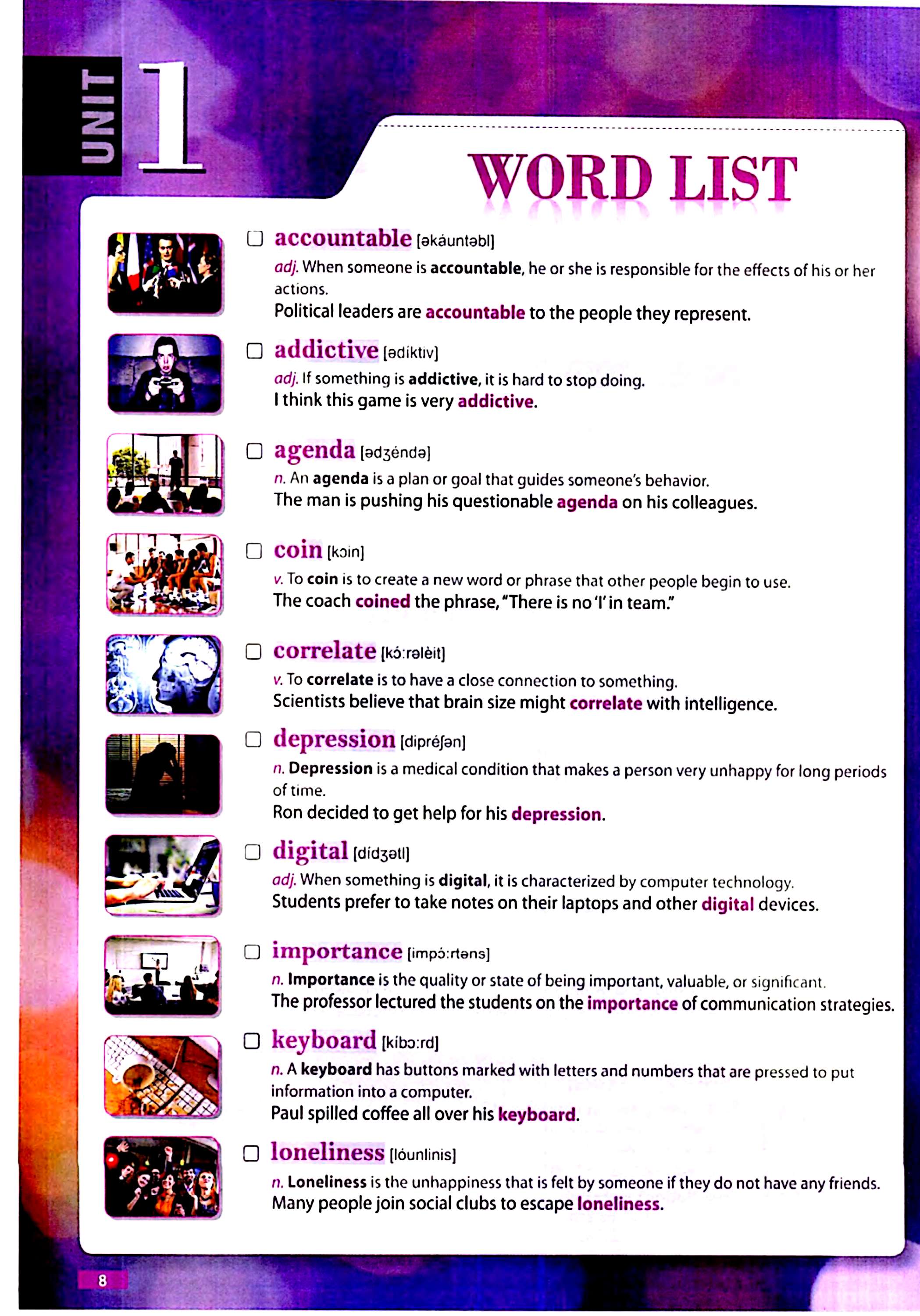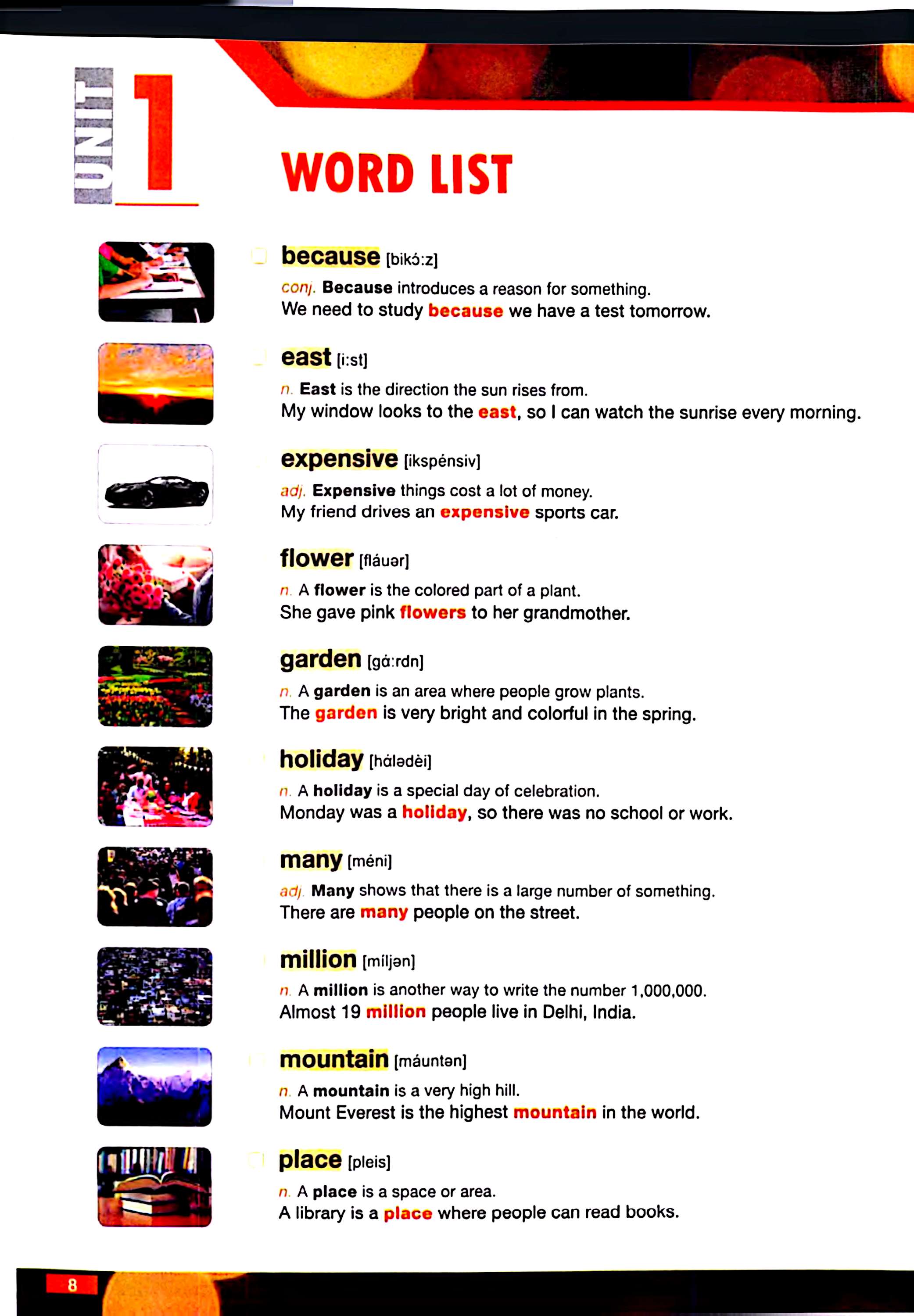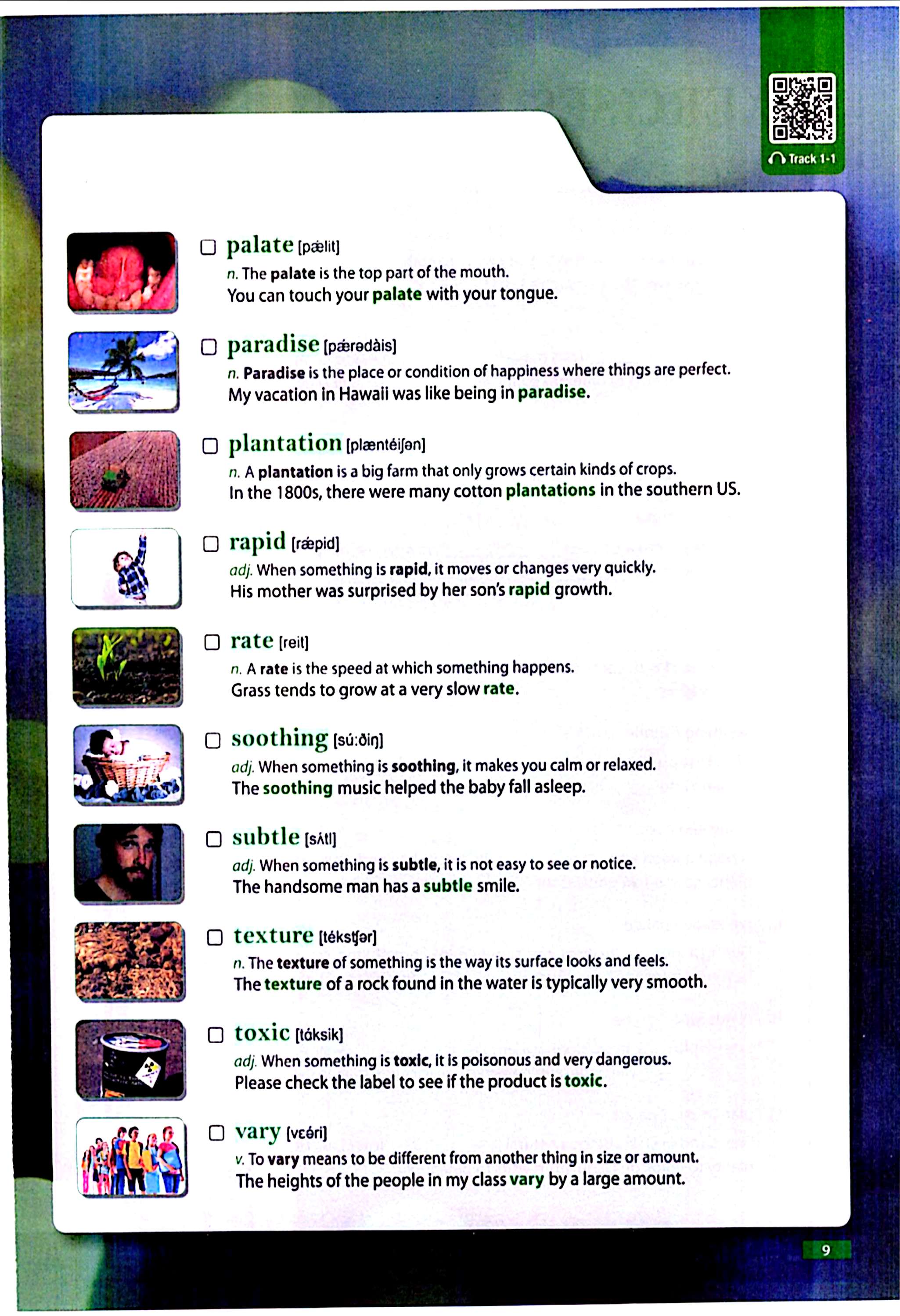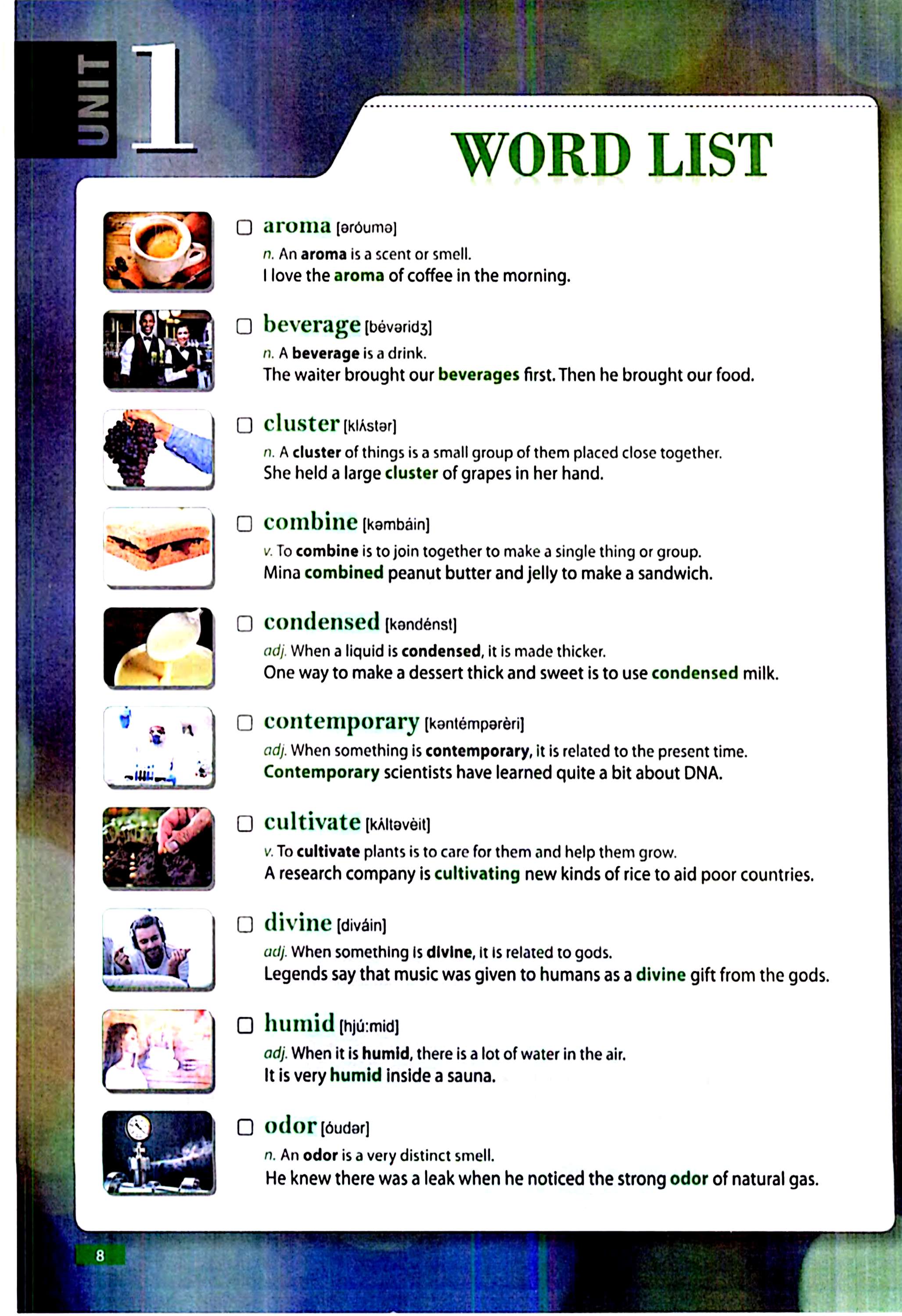 درس، ۱۶ تا ۲۰ واژه جدید معرفی میشود. برای هر واژه، تعریف ساده و واضح همراه با مثال وجود دارد تا زبانآموز معنا را در بستر