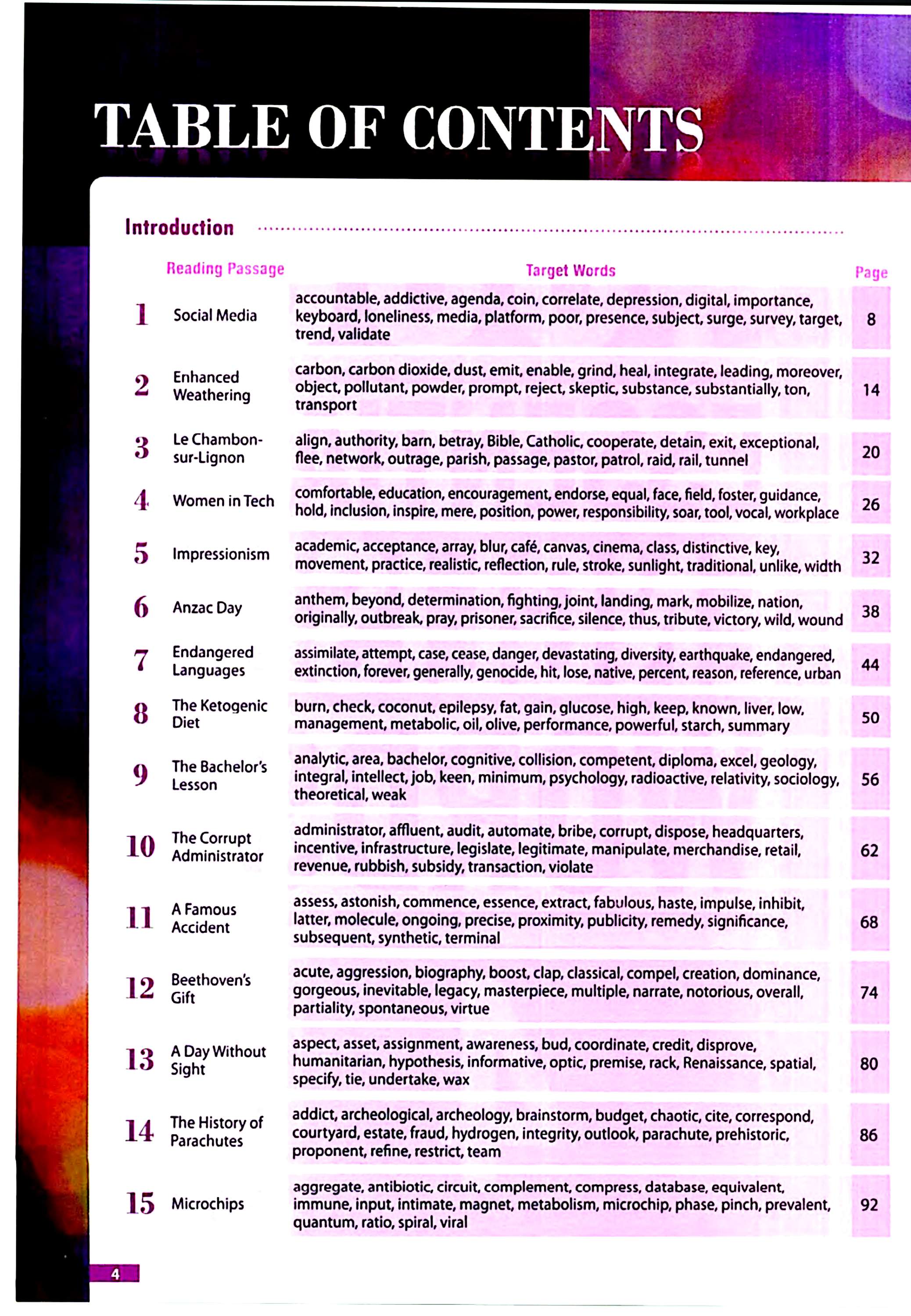 واژگان بهصورت تدریجی دشوارتر و آکادمیکتر میشوند. این ساختار منظم باعث