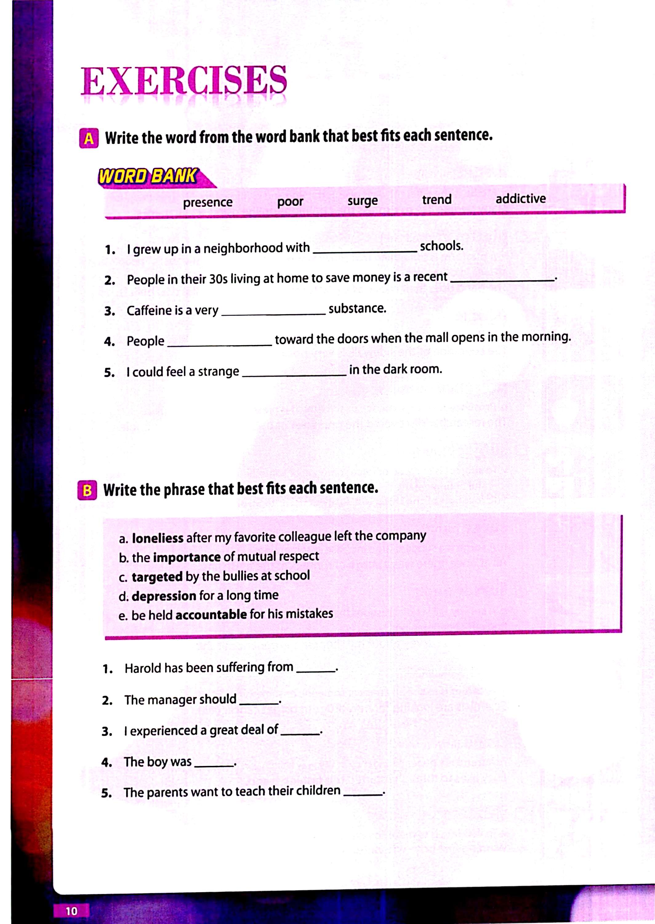 جمله درک کند. پس از بخش معرفی، تمرینهایی برای تثبیت واژگان، درک مطلب و