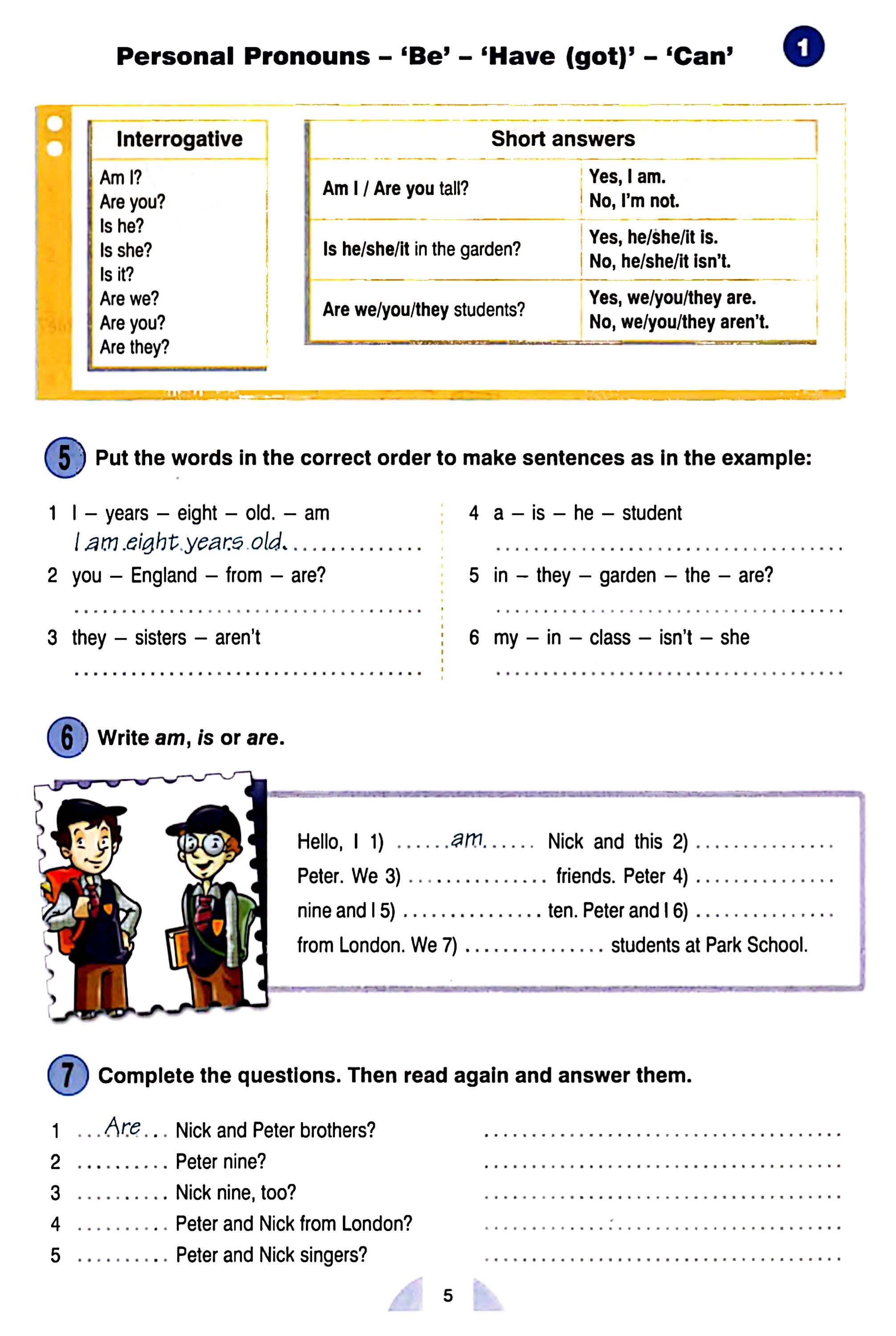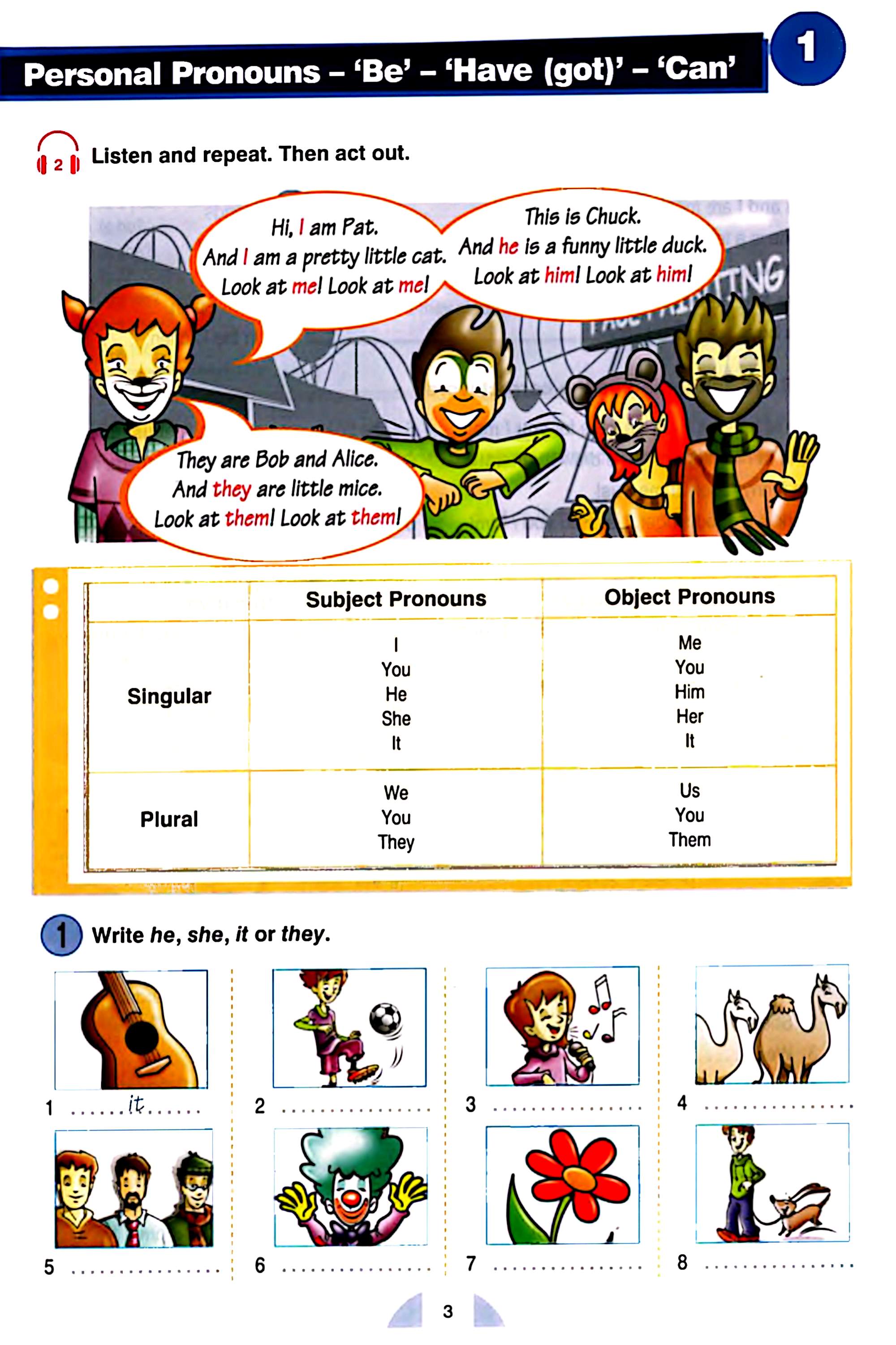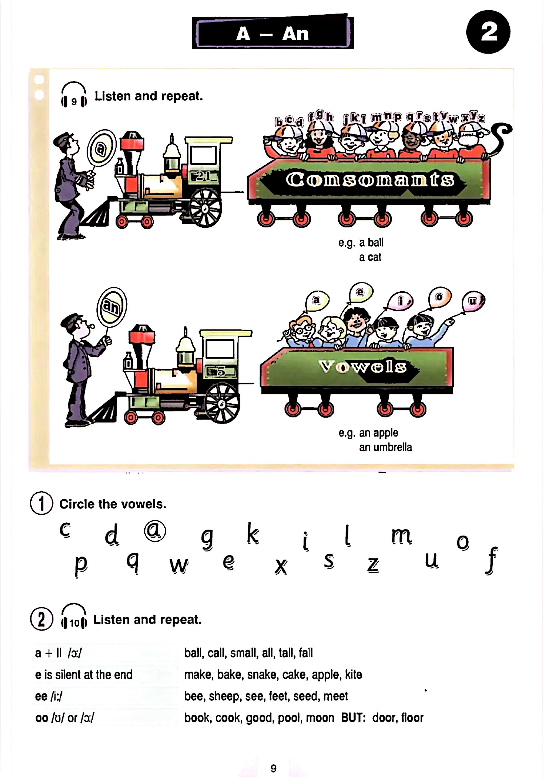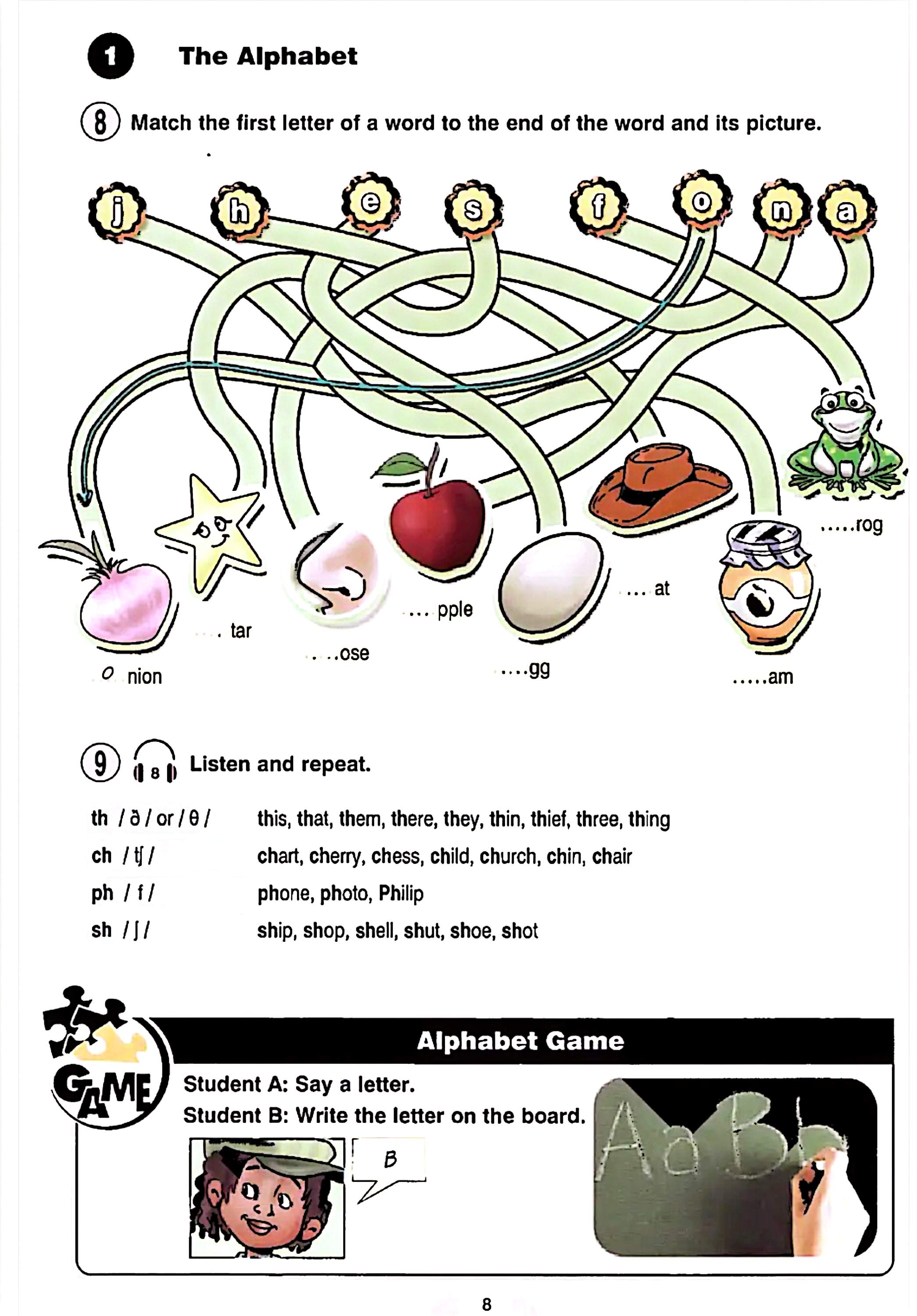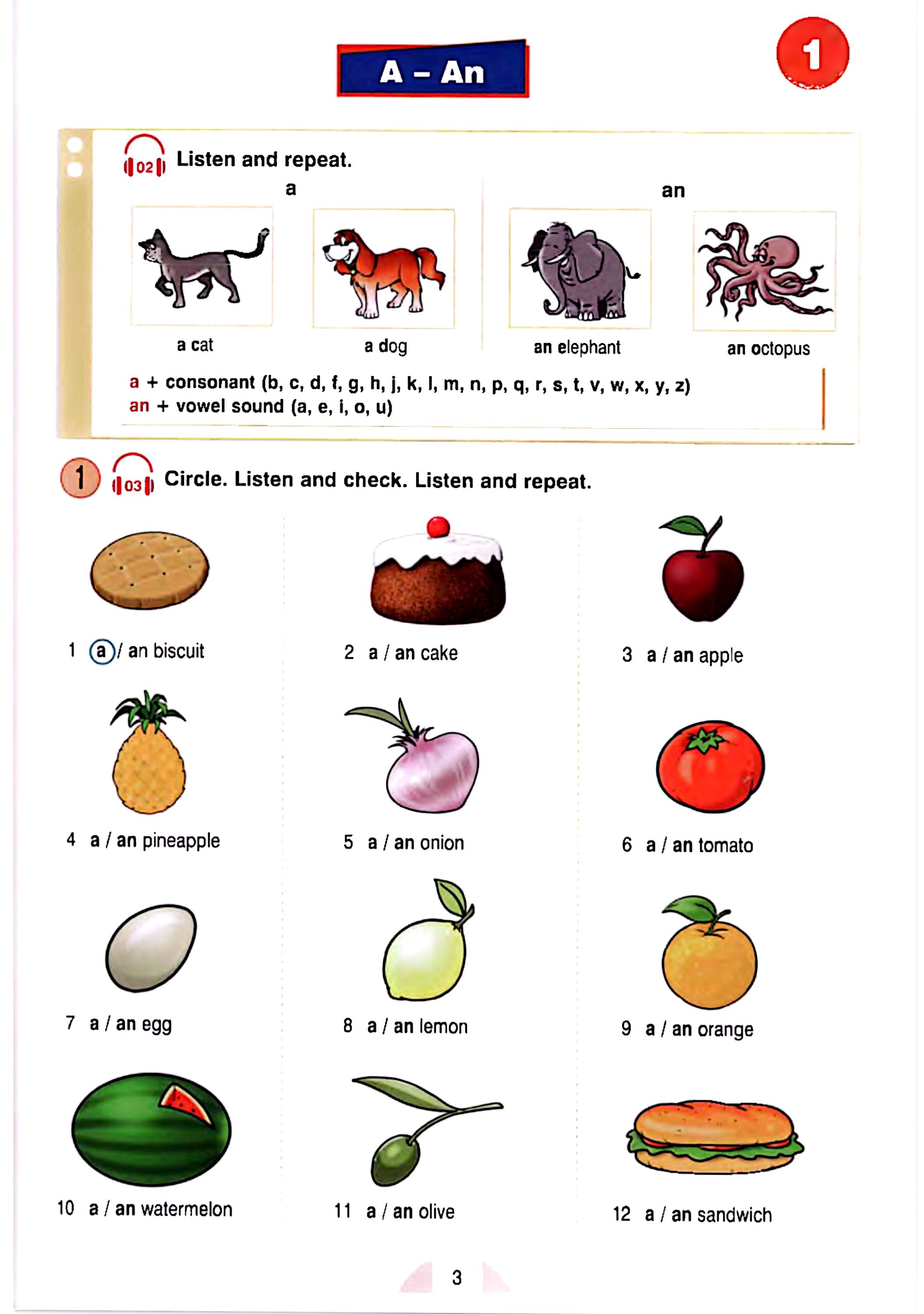 زبانآموز با حروف الفبا، a و an، اعداد، جمع بستن اسامی، ضمیرهای شخصی، فعل to be، کلمات اشاره مثل this و that، ساختارهای have و have got، جملههای there is و there are، فعل can، صفتهای ملکی،