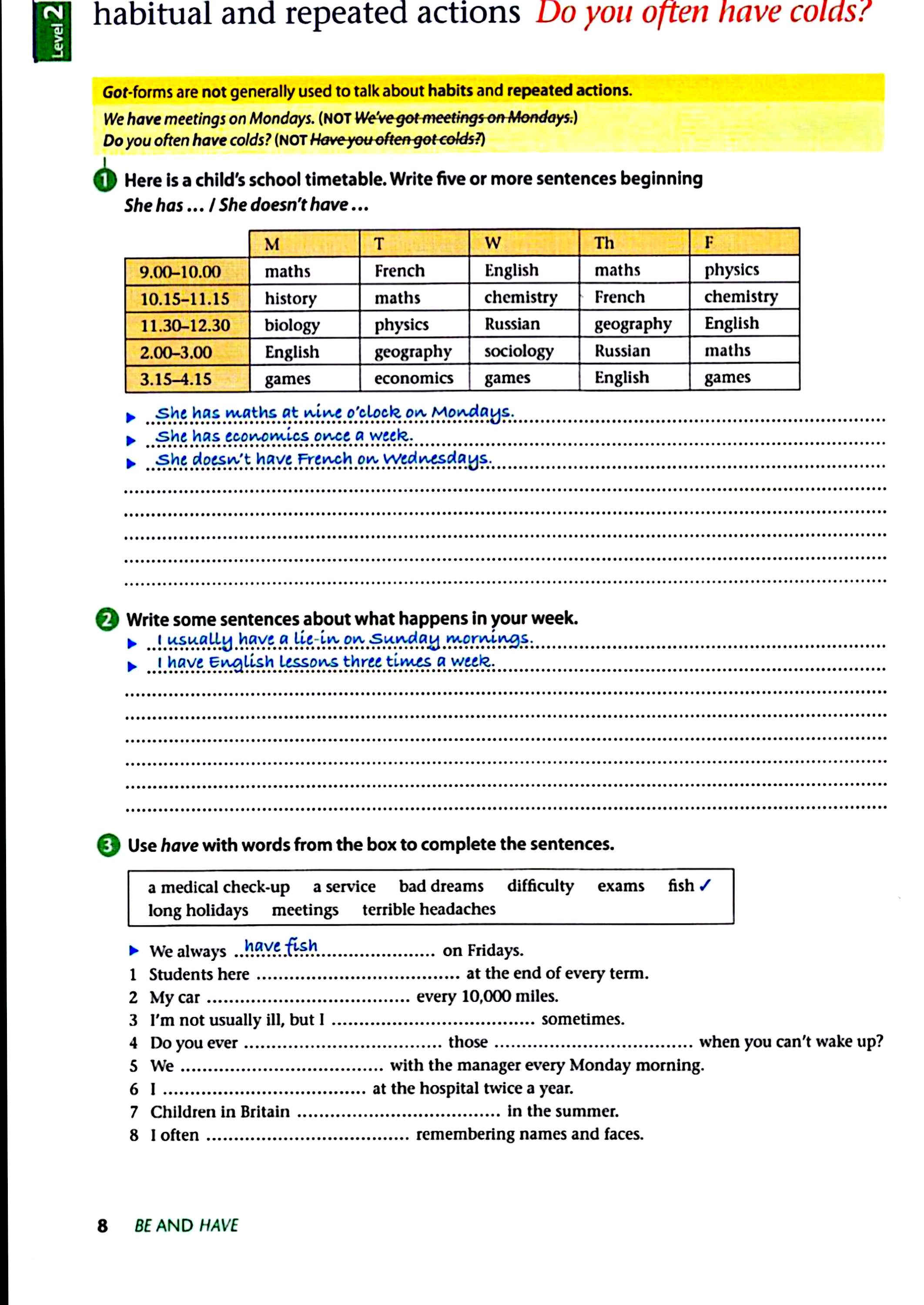 واژگان و عبارات پیچیدهتر و نحوه استفاده از آنها در جملات.