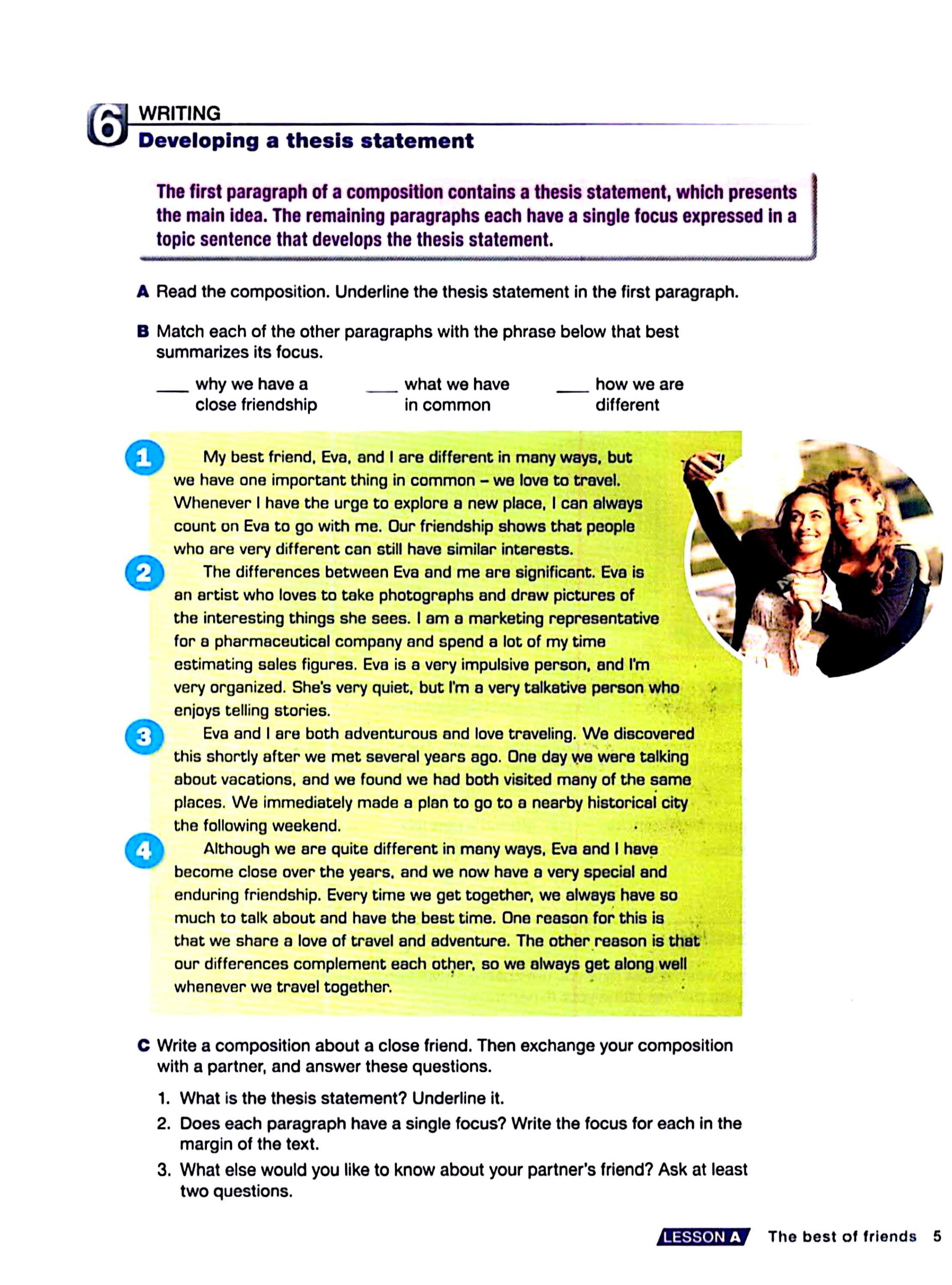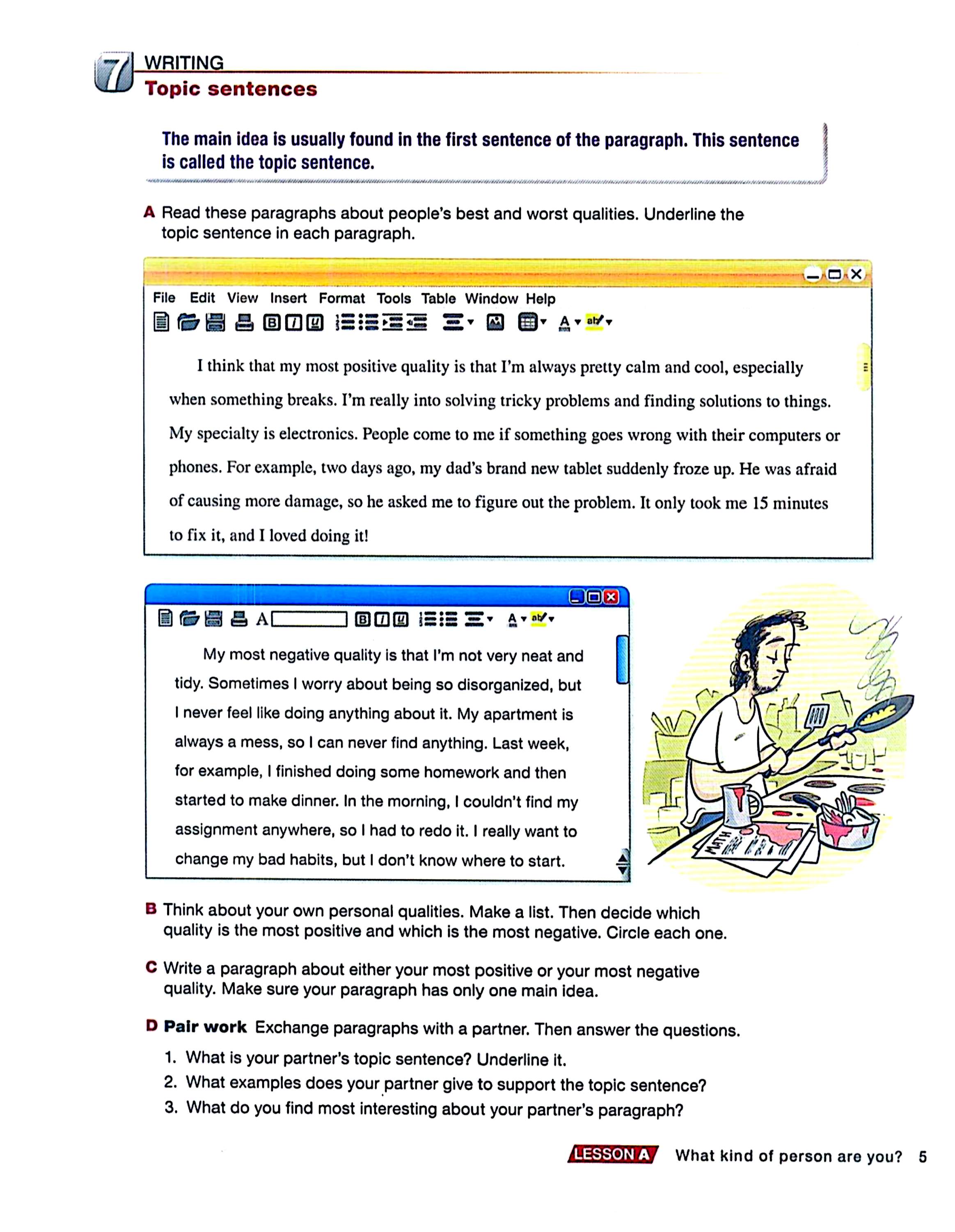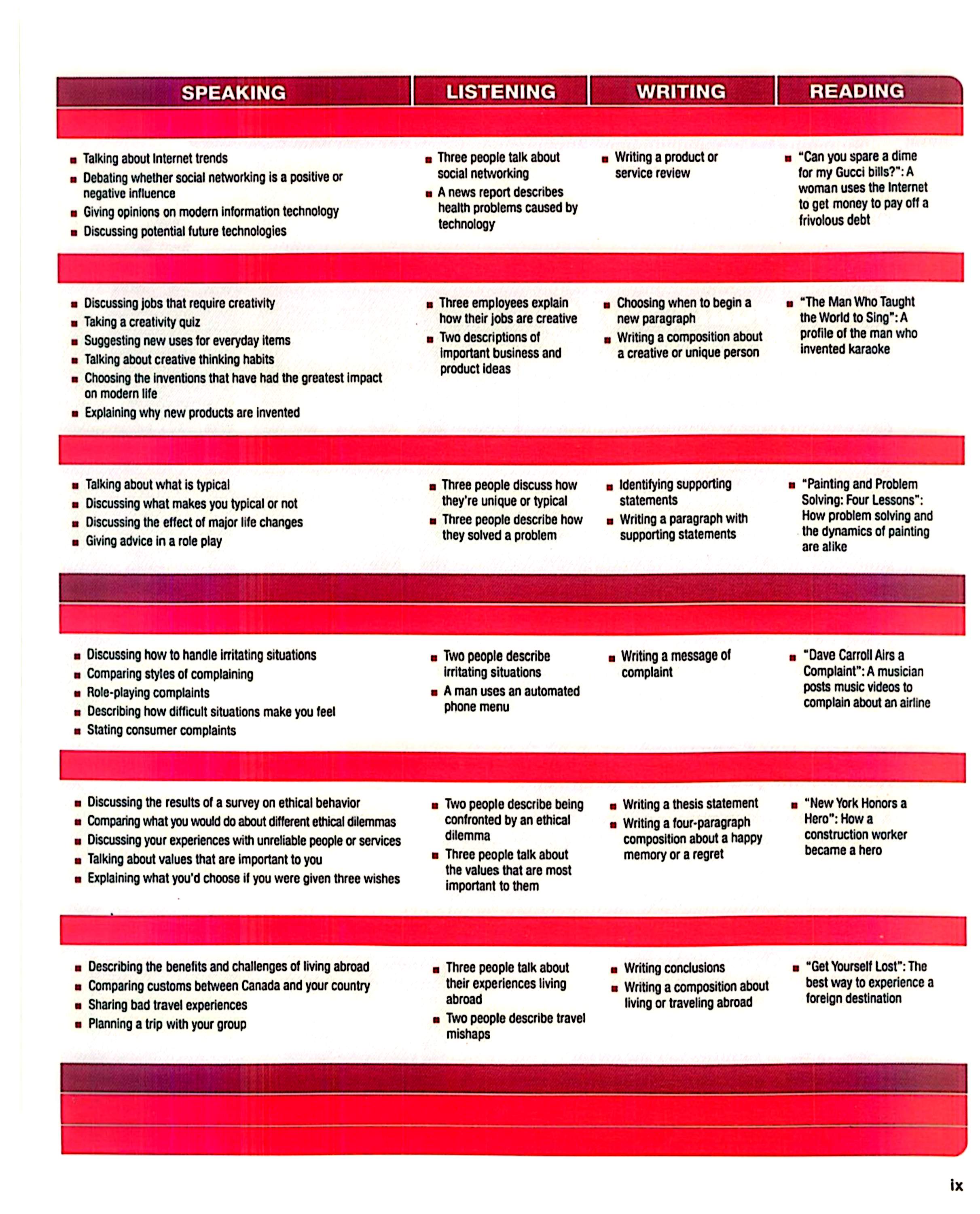- در درس Generally Speaking درباره عادات فرهنگی و تفاوتها گفتگو میکند و مهارت بیان مقایسه و تعمیم را
