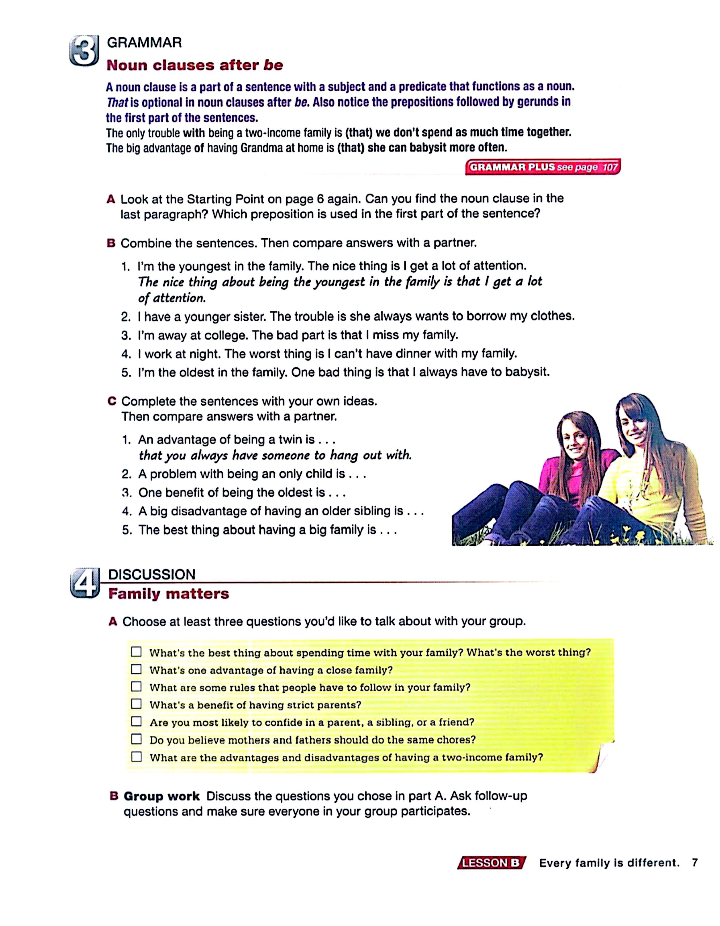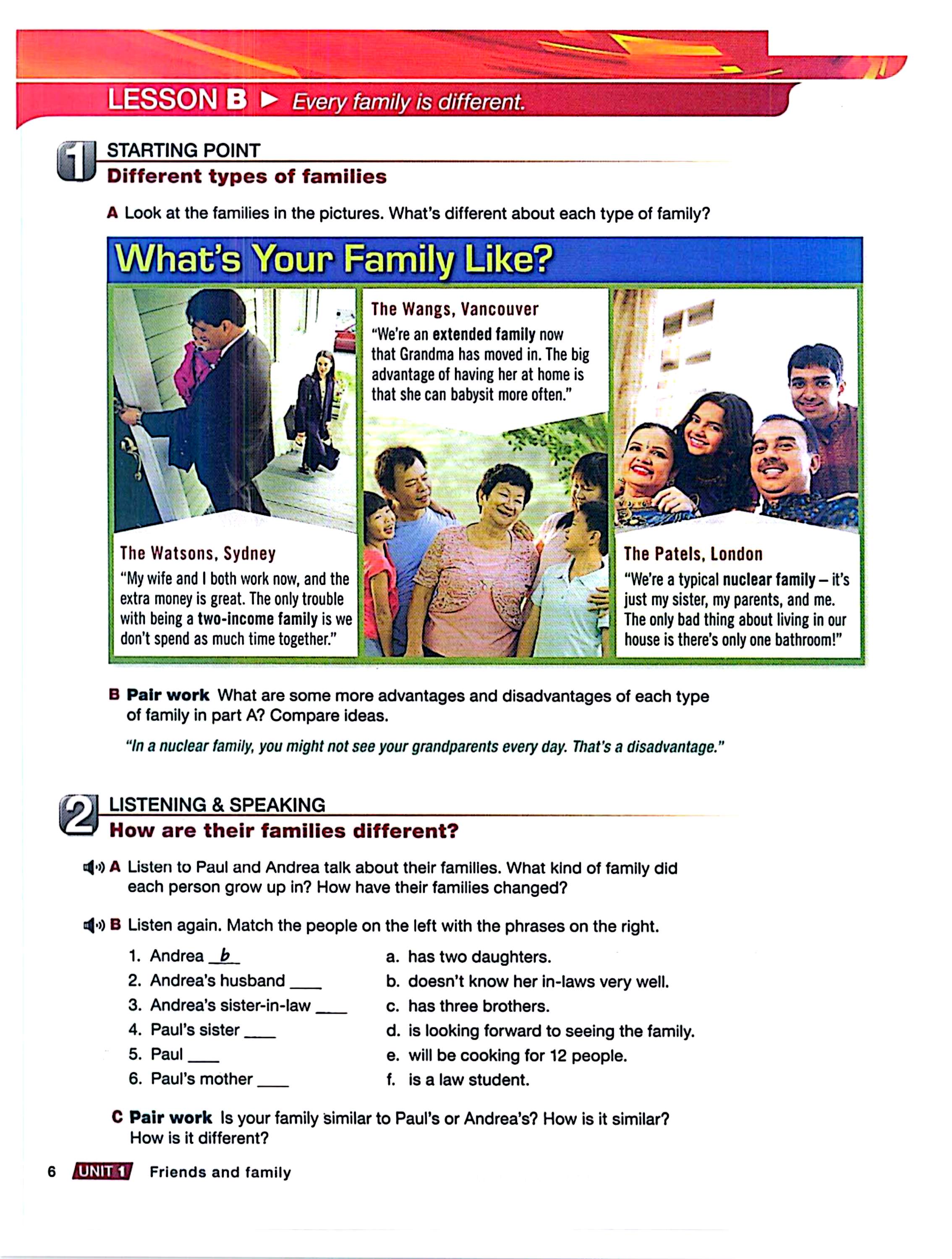 - در درس Friends and Family درباره ویژگیهای شخصیتی، روابط خانوادگی و بیان علاقهمندیها