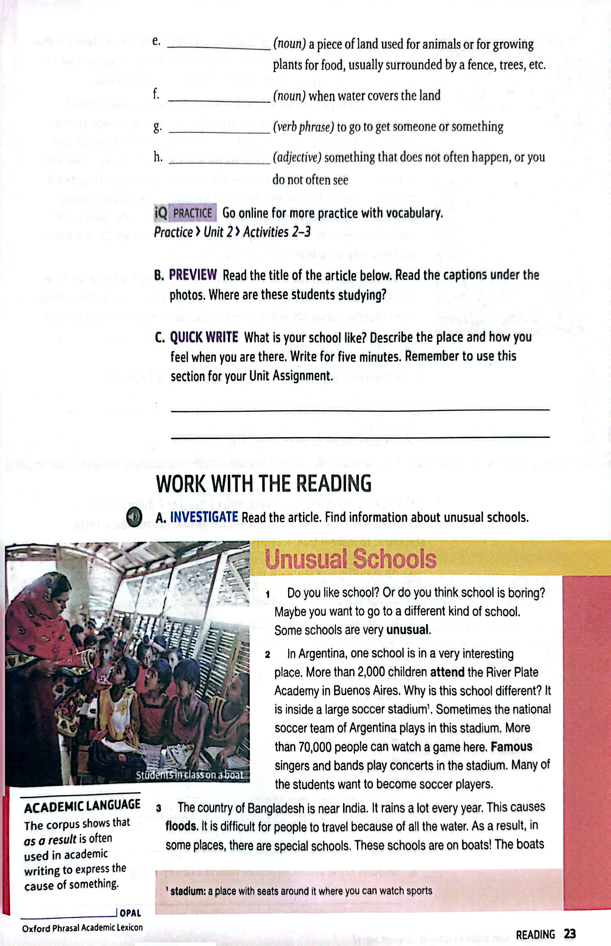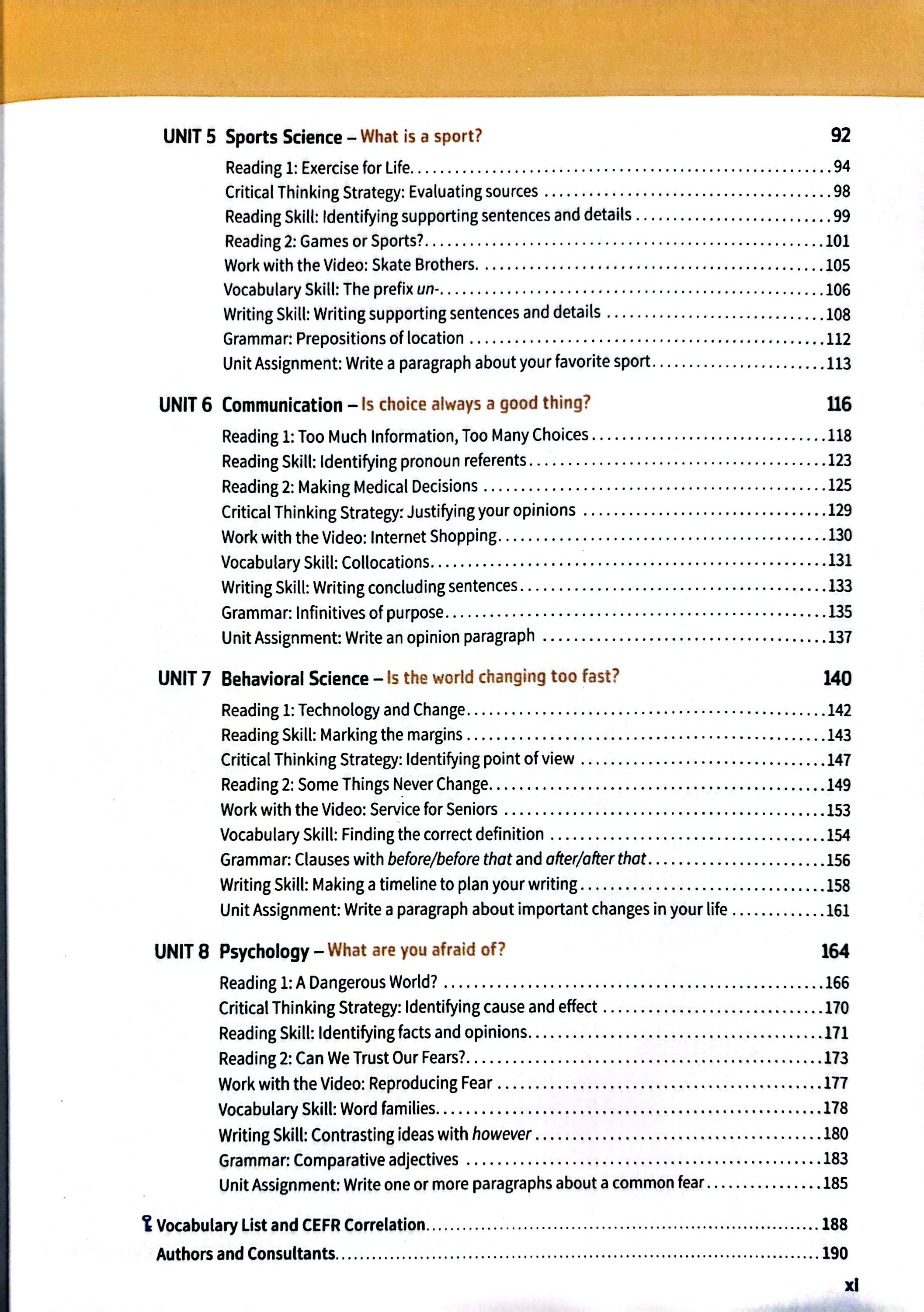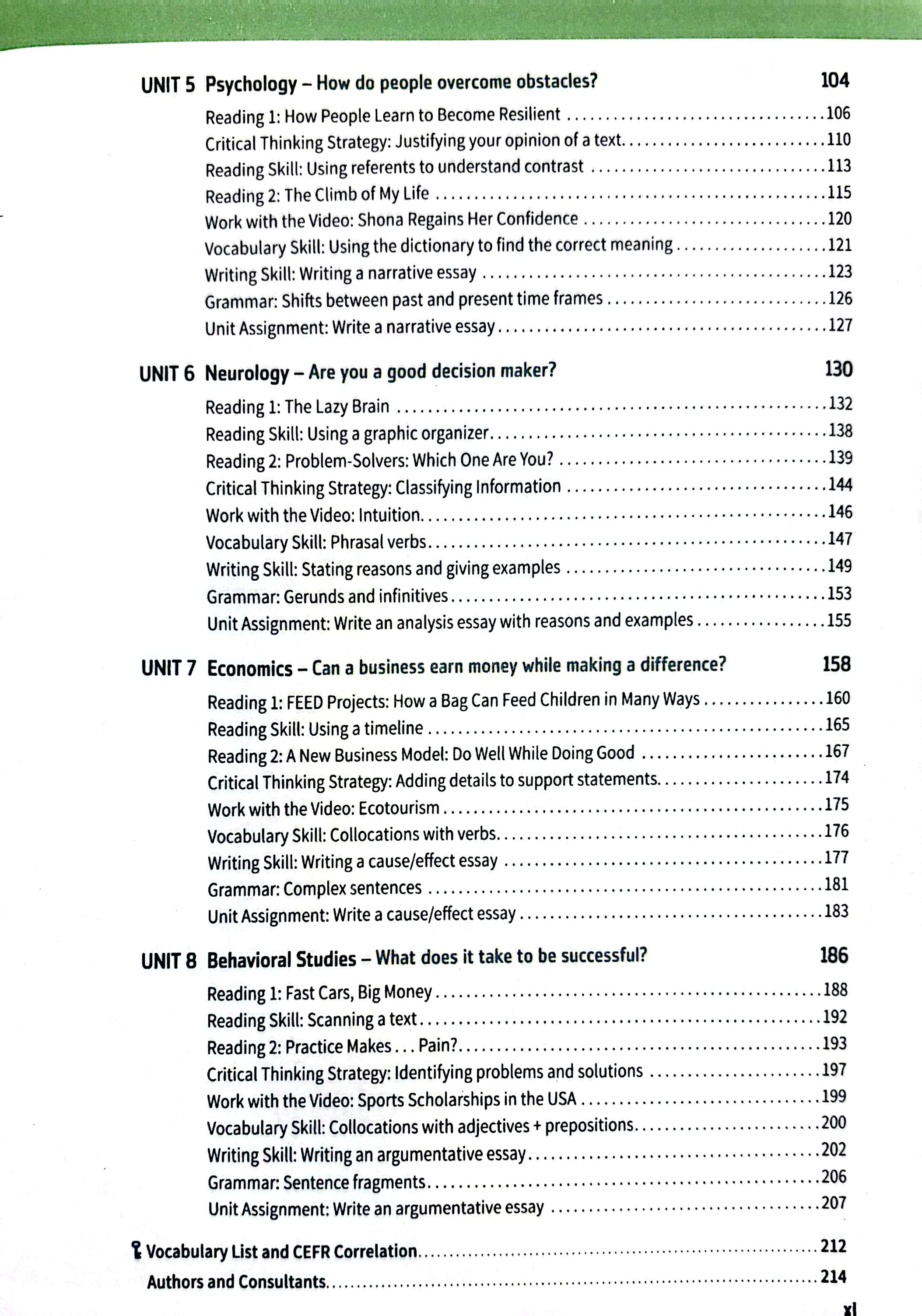 • در درس هشتم موضوع موفقیت و پشتکار مورد بحث است. تشخیص مسائل و راهحلها، شناسایی ایدههای کلیدی با اسکن متن، ساخت ترکیبهای واژگانی و نوشتن متن استدلالی پیشرفته تمرین میشود.