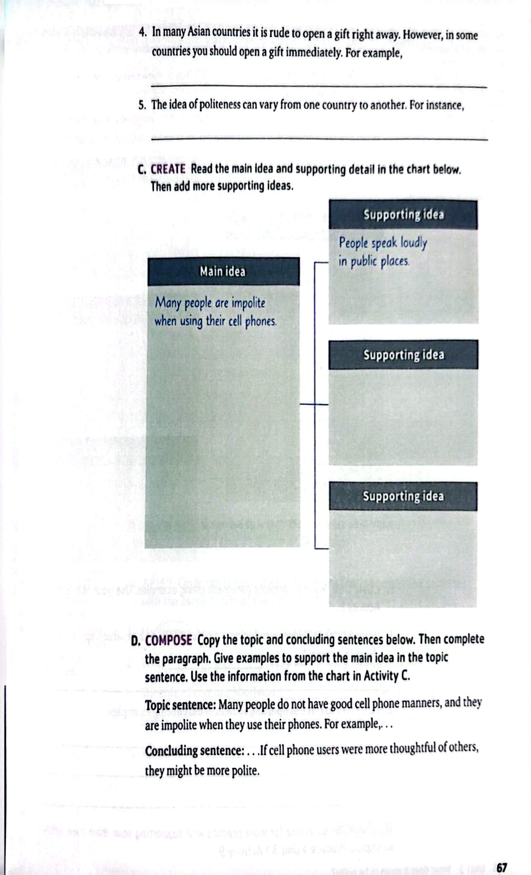 • در درس سوم مفهوم «ادب در فرهنگهای مختلف» بررسی میشود. زبانآموز جزئیات پشتیبان را تشخیص میدهد، مثالسازی برای حمایت از ایده اصلی را تمرین میکند، از پیشوندها برای ساخت واژه استفاده میکند و در نوشتن، یک پاراگراف با مثالهای درست مینویسد.