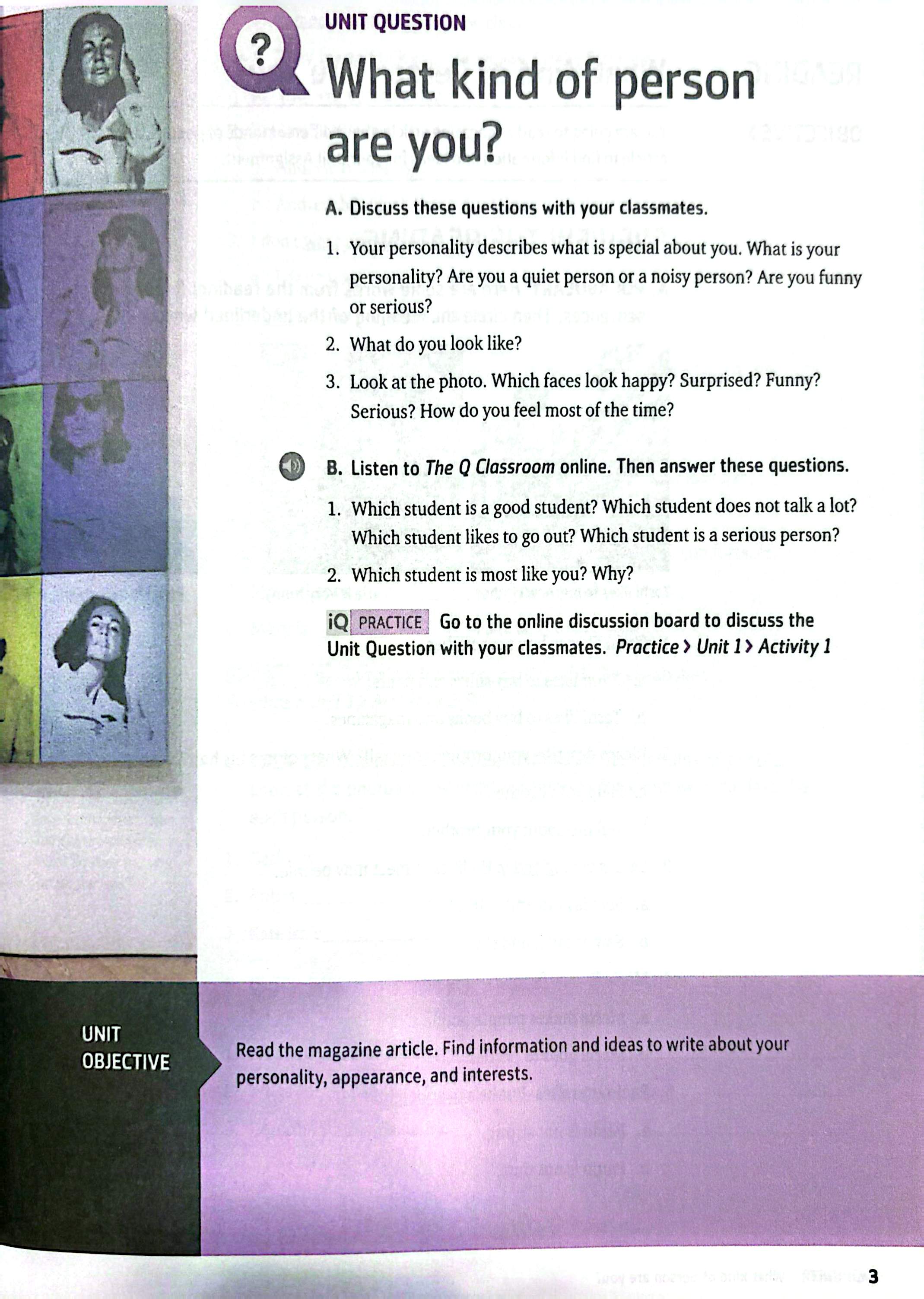 • در درس اول، موضوع شخصیت مطرح است. زبانآموز یاد میگیرد افراد را توصیف کند، صفتهای پایه را بهدرستی بهکار ببرد، موضوع اصلی متن را پیدا کند و چند جمله درباره خودش بنویسد.