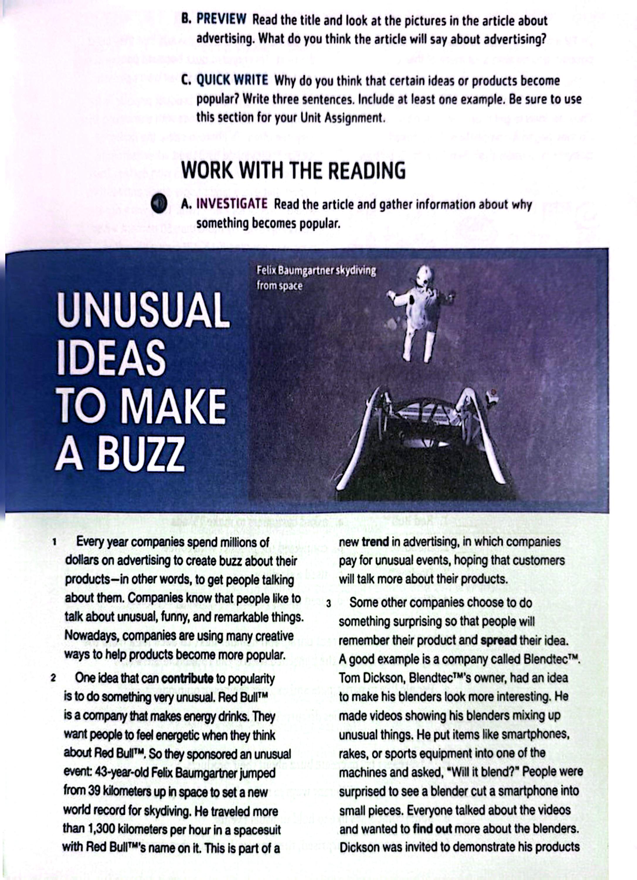 • در درس اول موضوع «چرا بعضی چیزها محبوب میشوند؟» بررسی میشود. زبانآموز مهارت تشخیص ایده اصلی، نظم دادن به ایدهها و زمان حال استمراری را تمرین میکند و در نهایت یک پاراگراف توصیفی مینویسد.