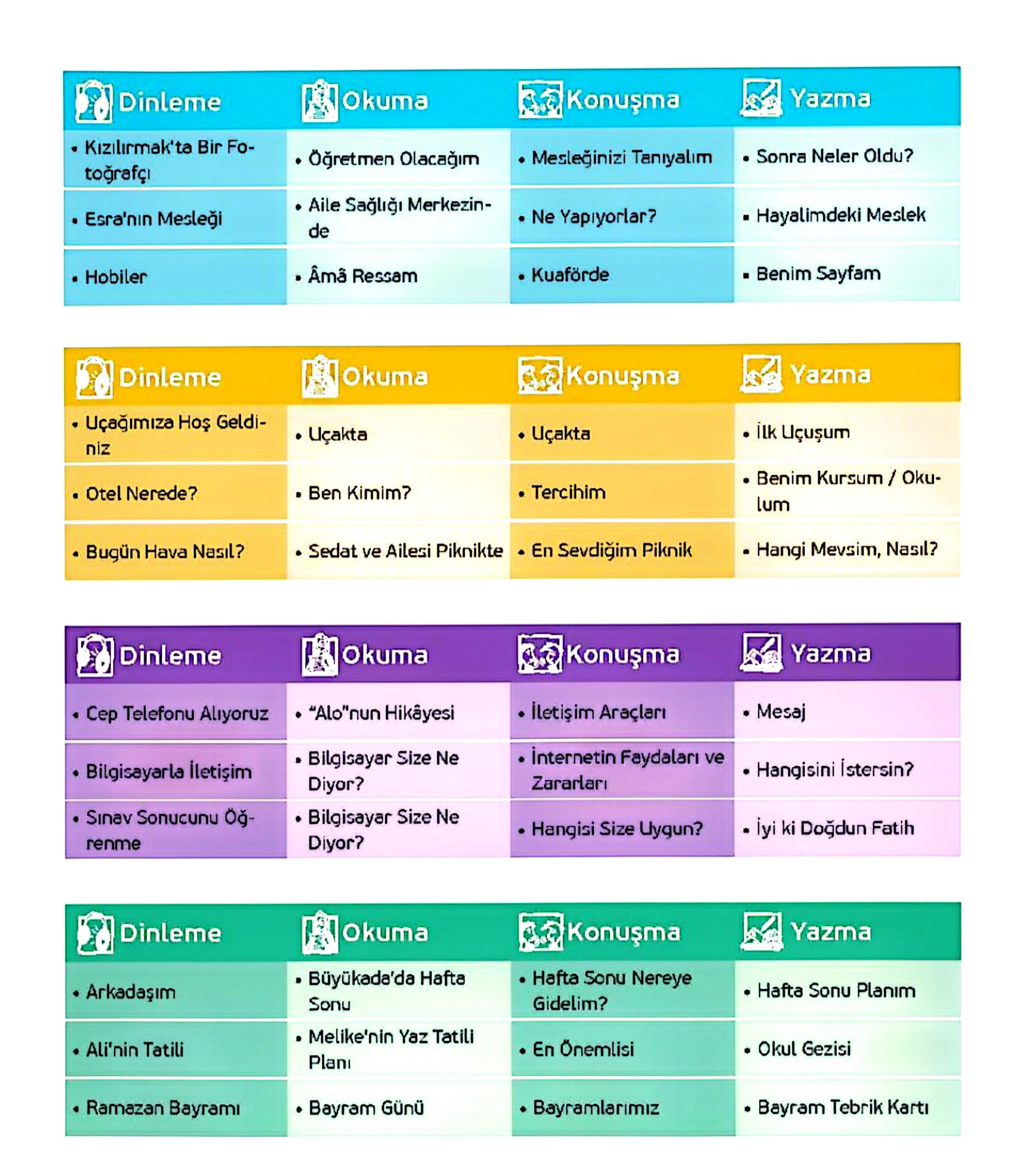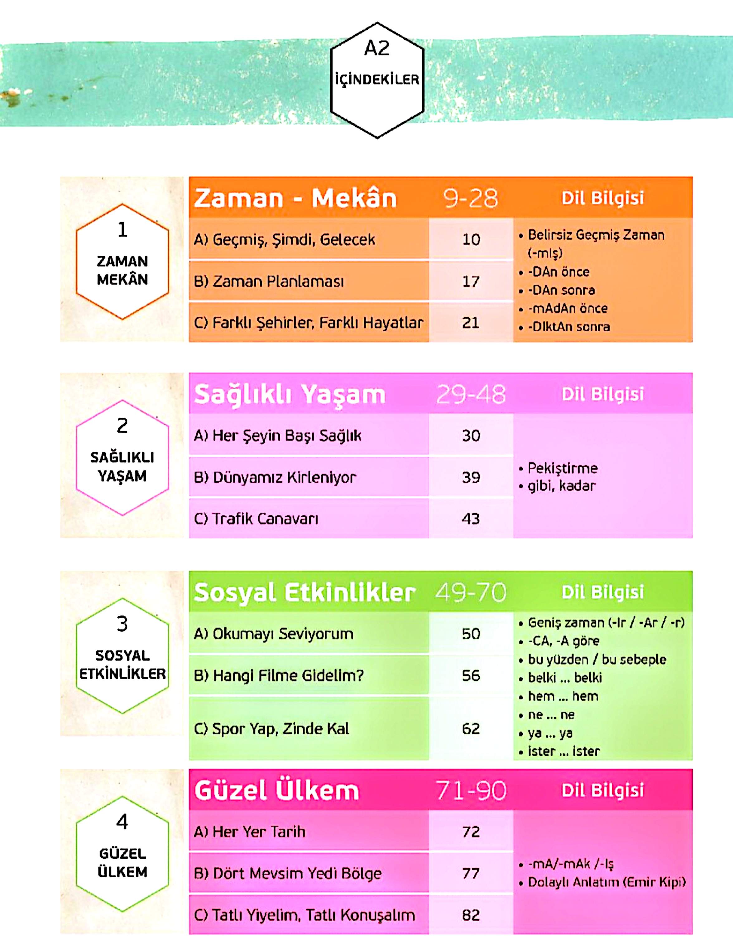 مهارتهای خود را در زبان ترکی تقویت کنند. این مجموعه، همانند سطح A1، شامل کتاب درس، کتاب تمرین و فایلهای شنیداری