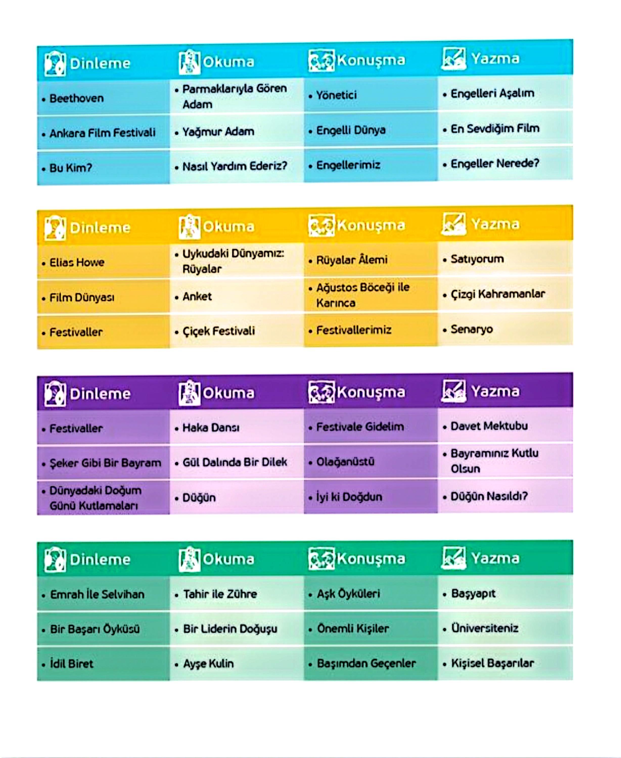 بیشتر در زبان ترکی است. برخی از موضوعات این سطح شامل: