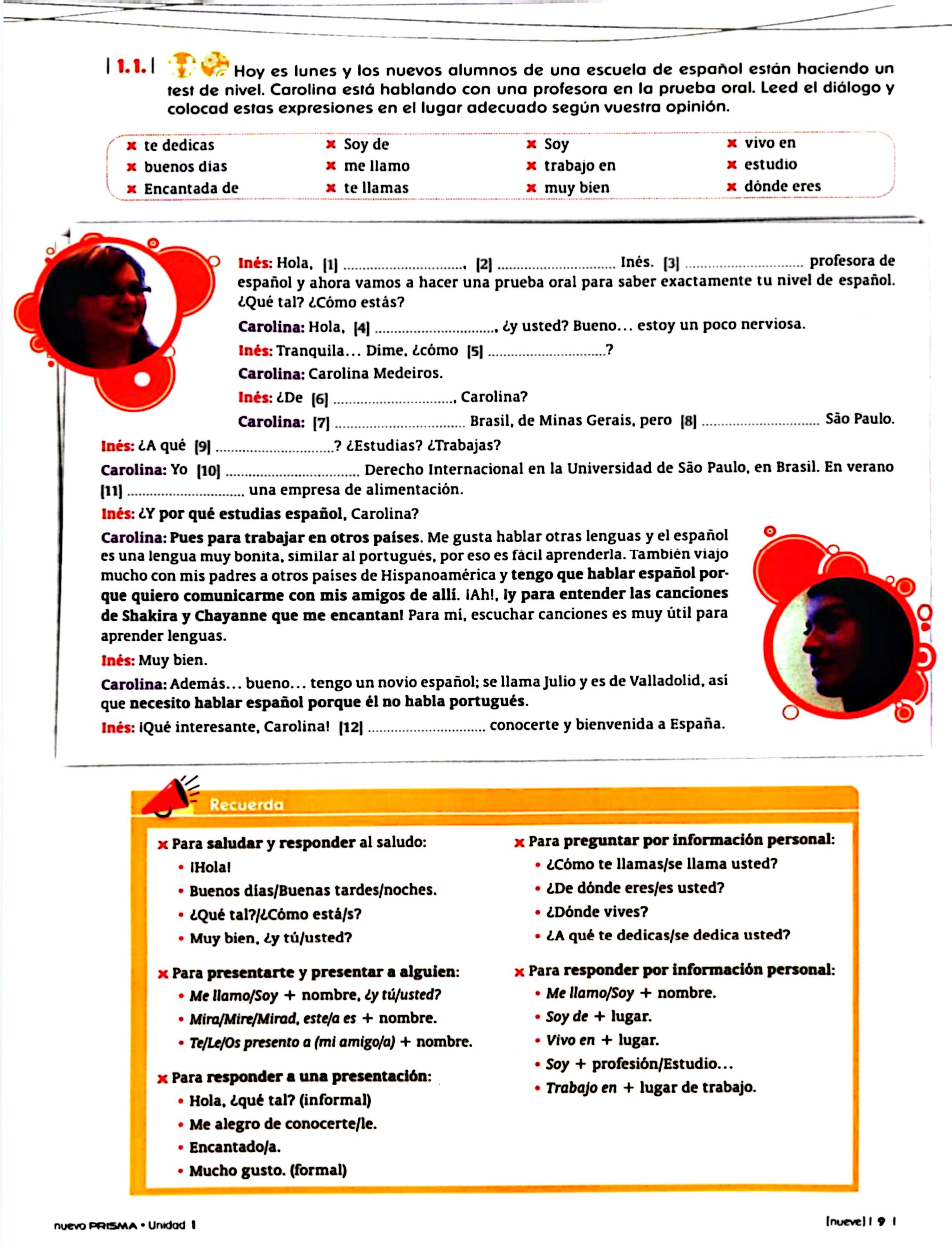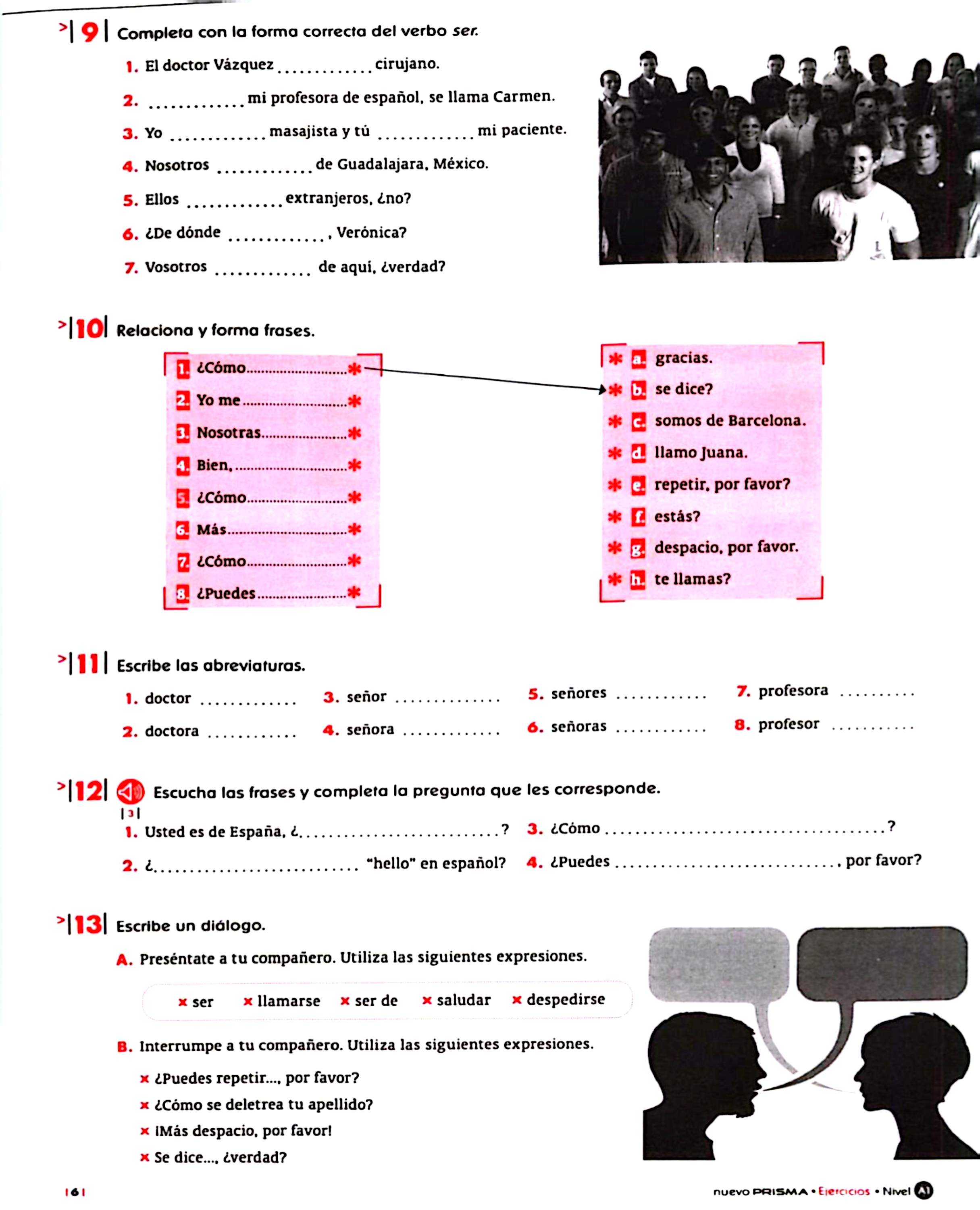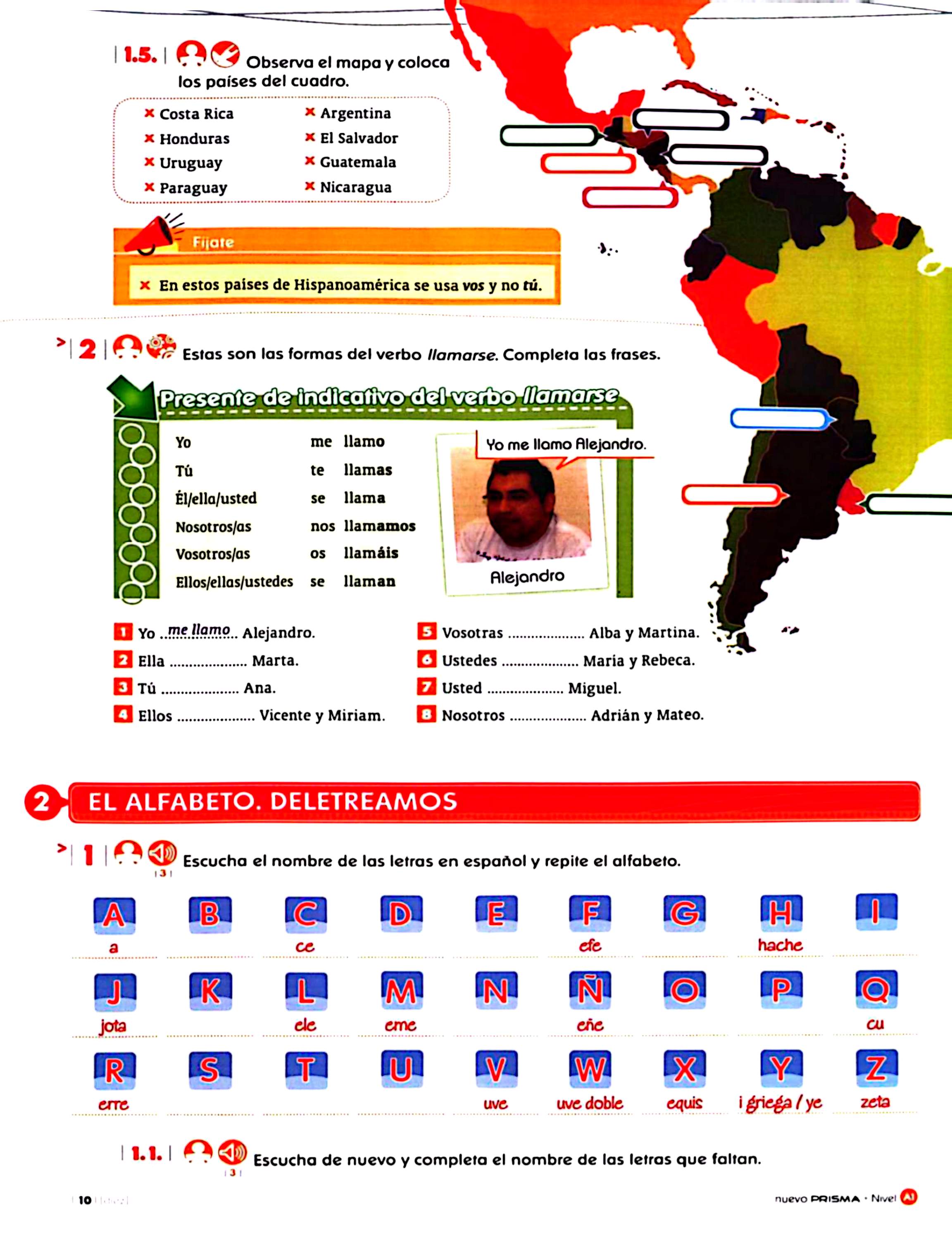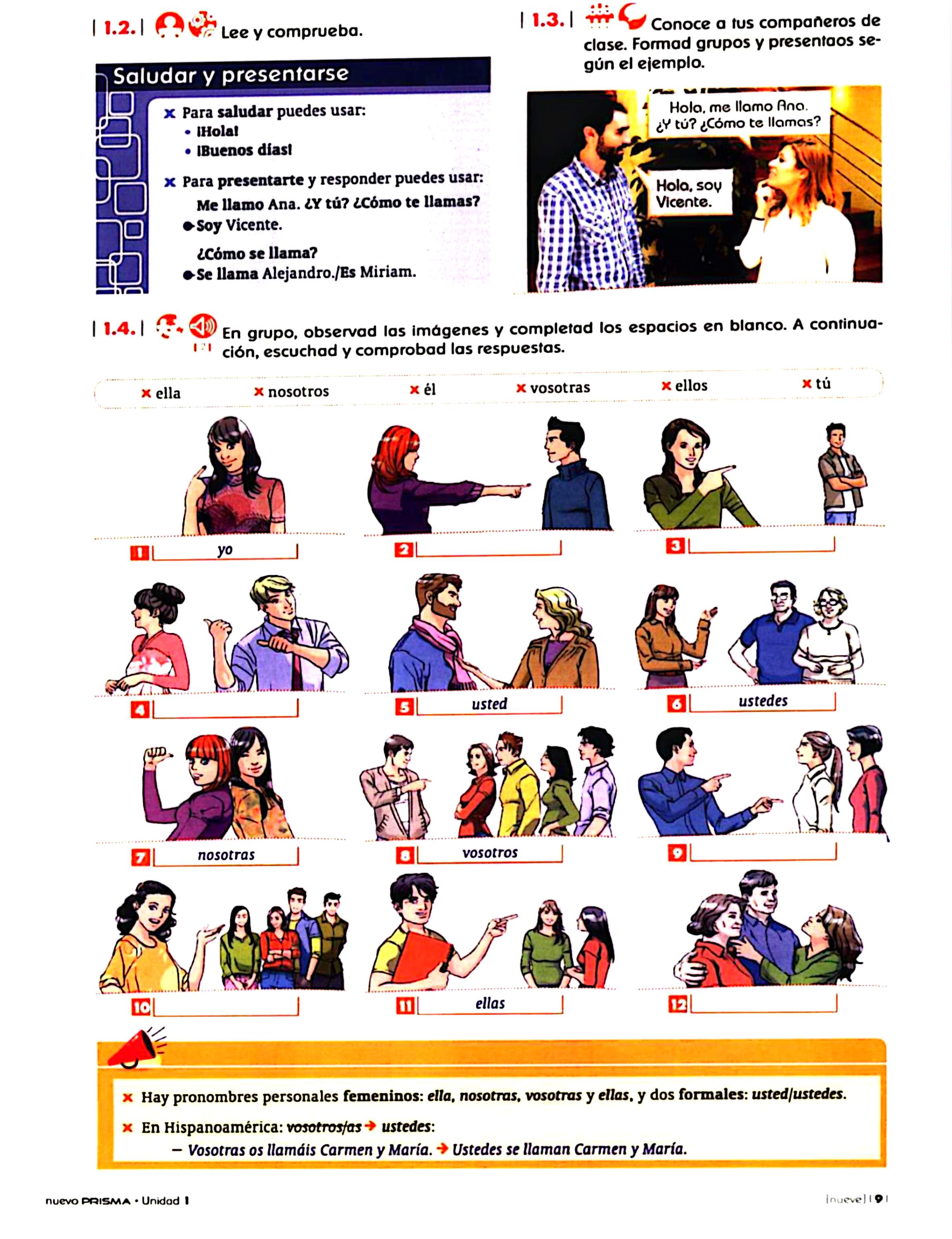 خود و دیگران را معرفی کند. گرامر شامل فعلهای ser و llamarse و ضمایر شخصی است.