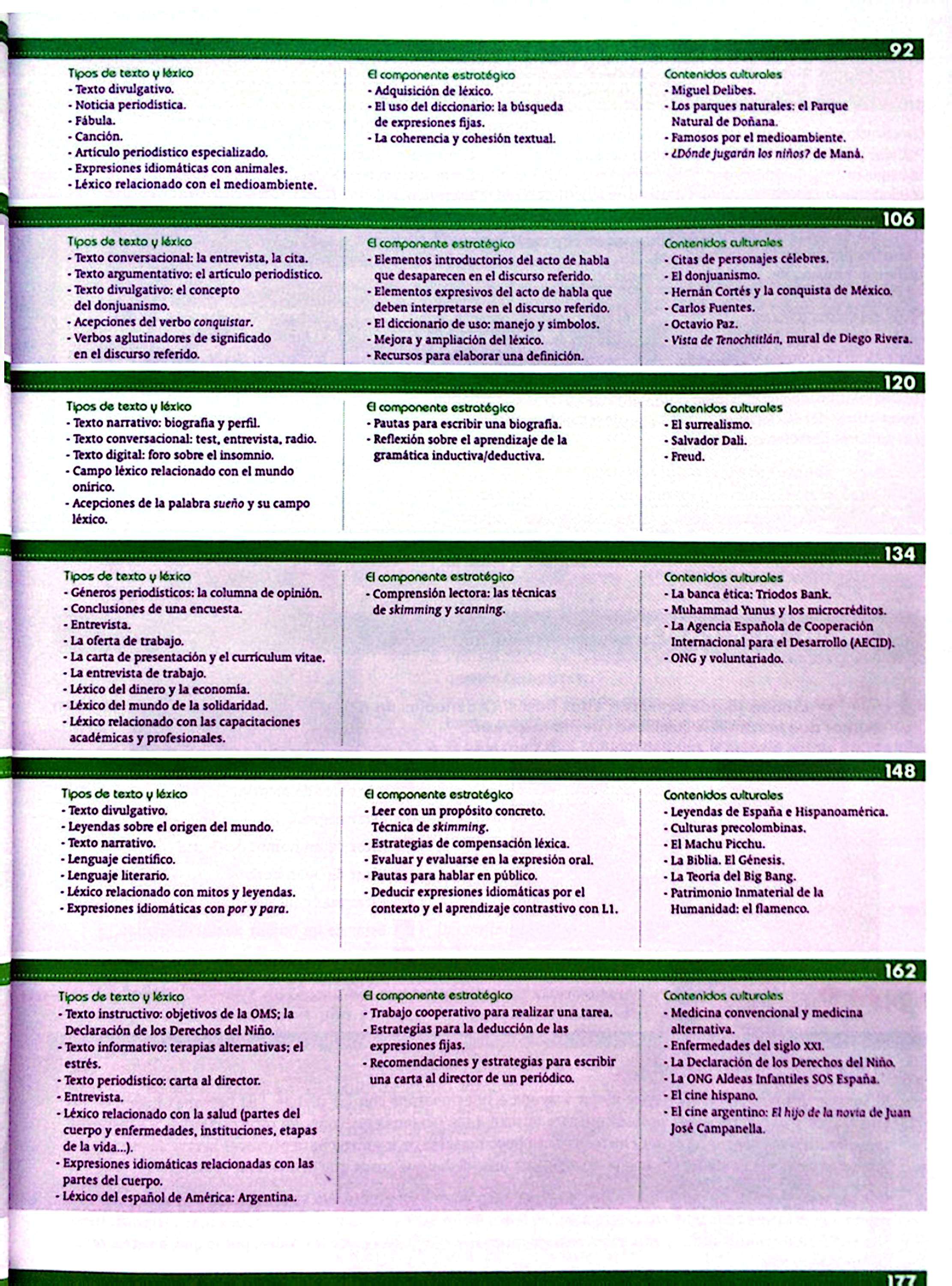دلیل ساختار استاندارد و هماهنگ با Instituto Cervantes، این مجموعه انتخاب