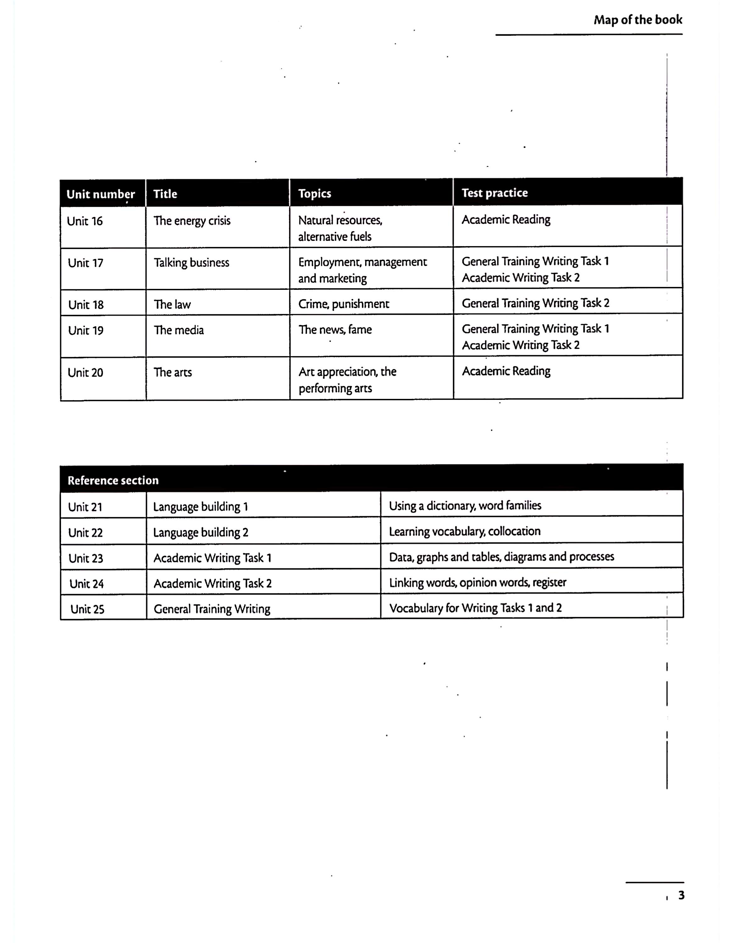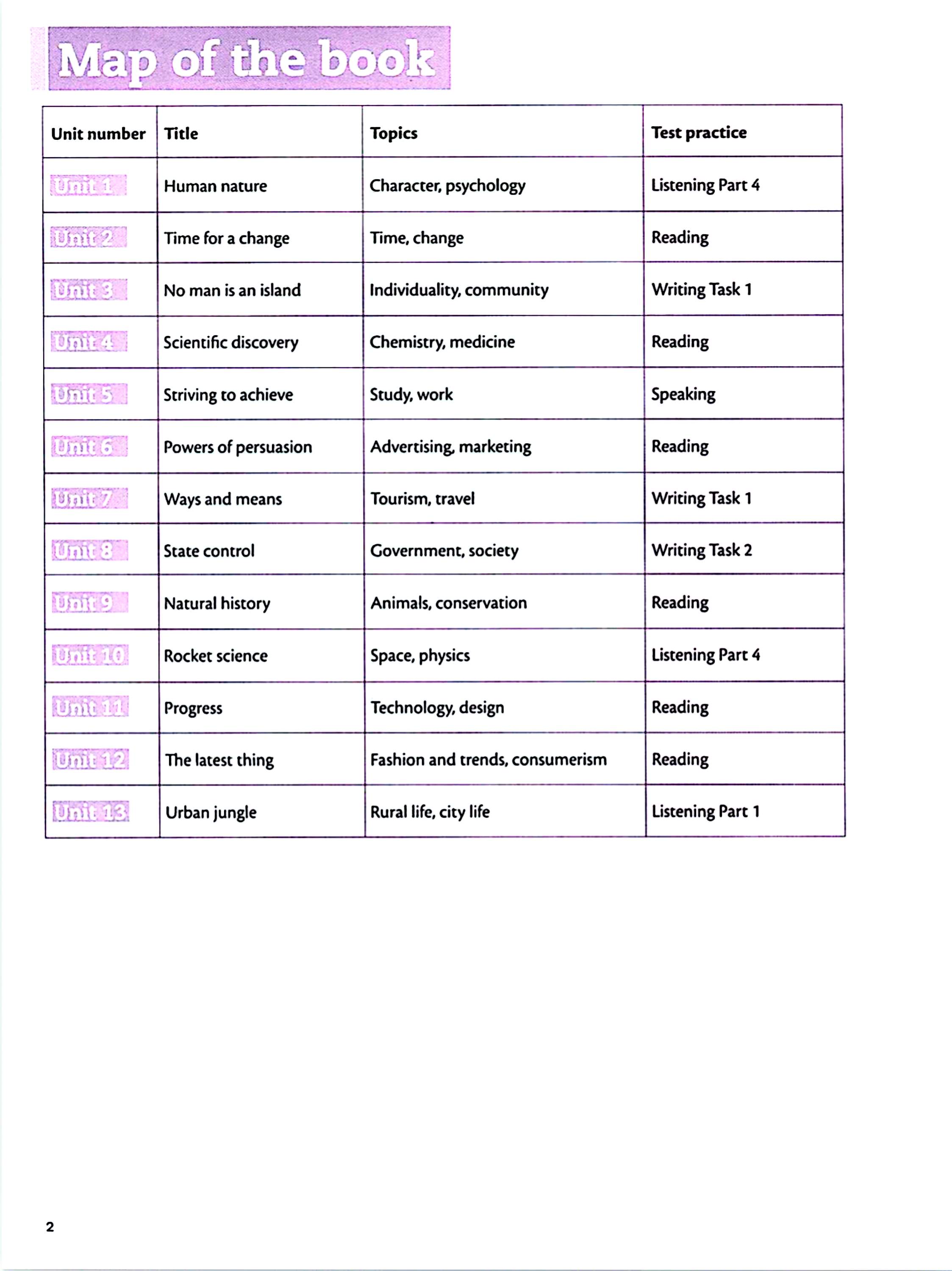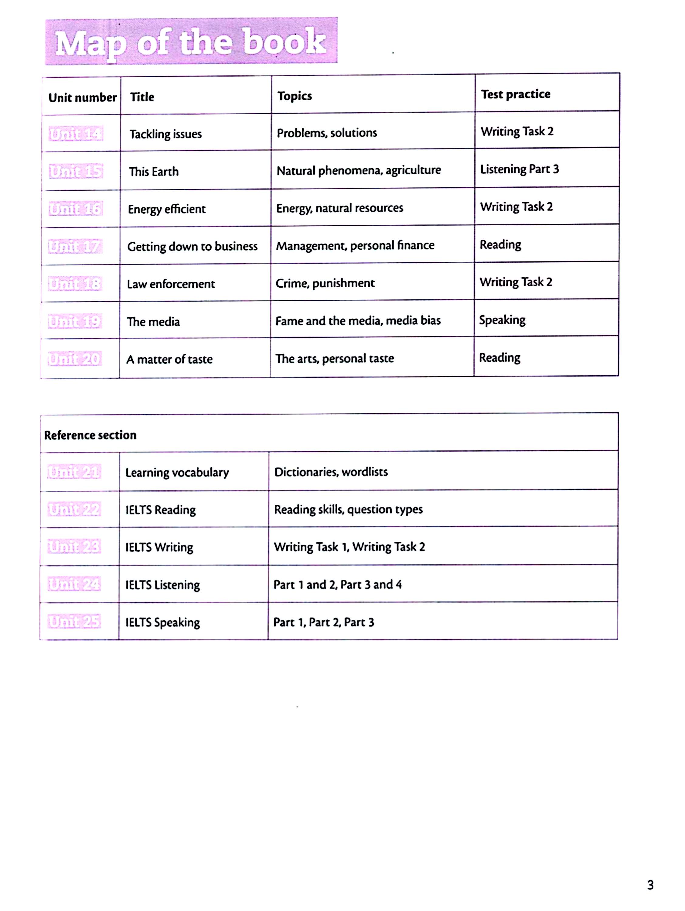در این جلد با موضوعاتی مثل ویژگیهای انسانی، تغییرات زندگی، فردیت و جامعه، کشفهای علمی، مسیر پیشرفت، تبلیغات، سفر و گردشگری، دولت و جامعه، محیطزیست، فضا، فناوری و طراحی، مد و مصرفگرایی، زندگی شهری و روستایی، مشکلات و راهحلها، پدیدههای طبیعی، انرژی، کسبوکار، قانون، رسانه و هنر روبهرو میشوید. کتاب در هر درس واژگان اصلی، ترکیبها و کاربردهای مهم را آموزش میدهد و بعد آنها را در قالب تمرینهای واقعی آیلتس مانند Reading، Writing، Listening یا Speaking به کار میگیرد تا زبانآموز بتواند آنها را در موقعیت آزمون هم استفاده کند.