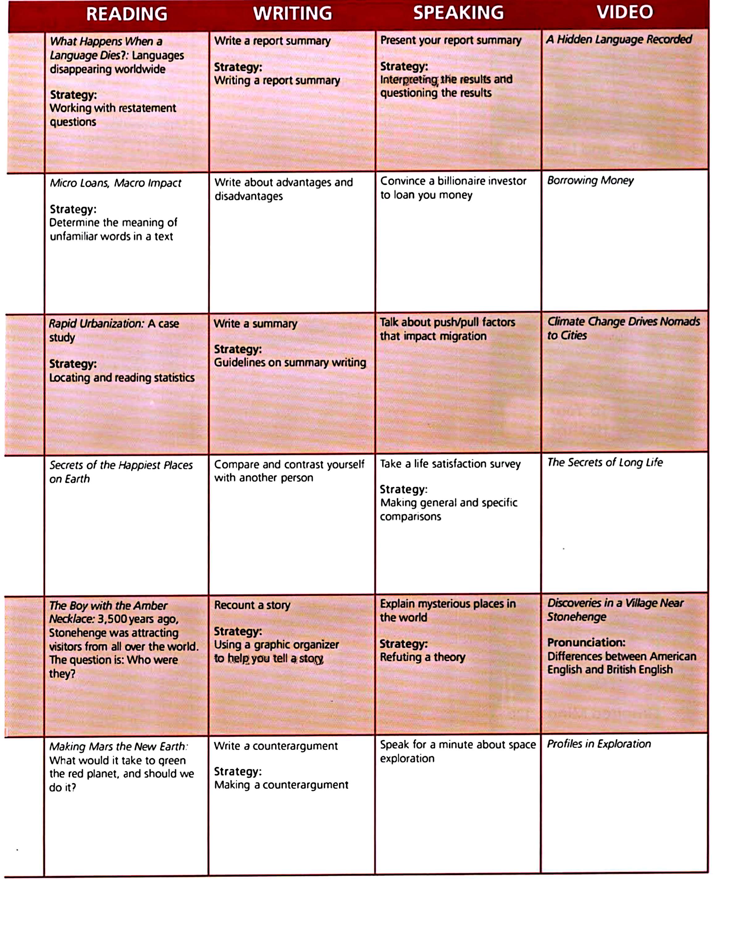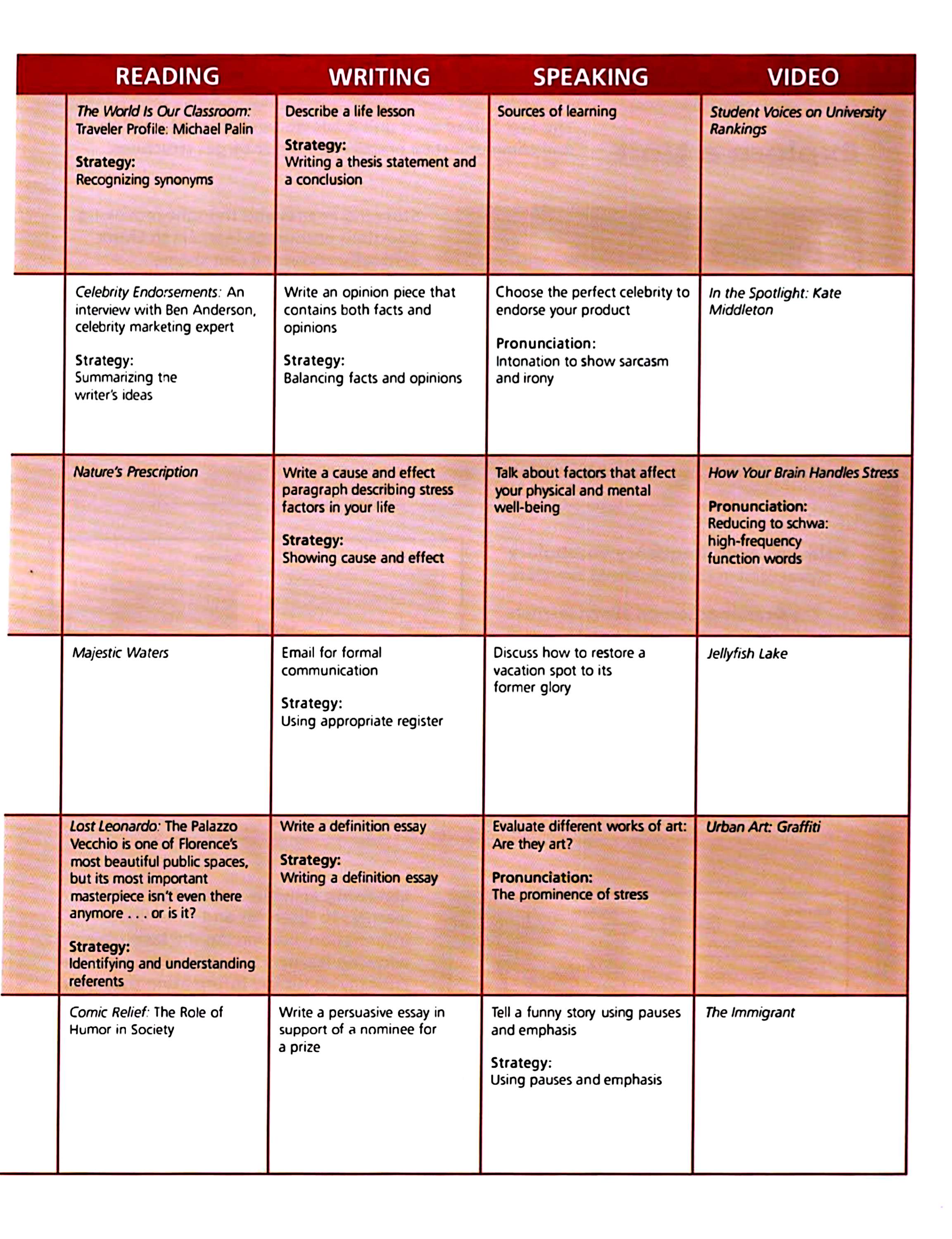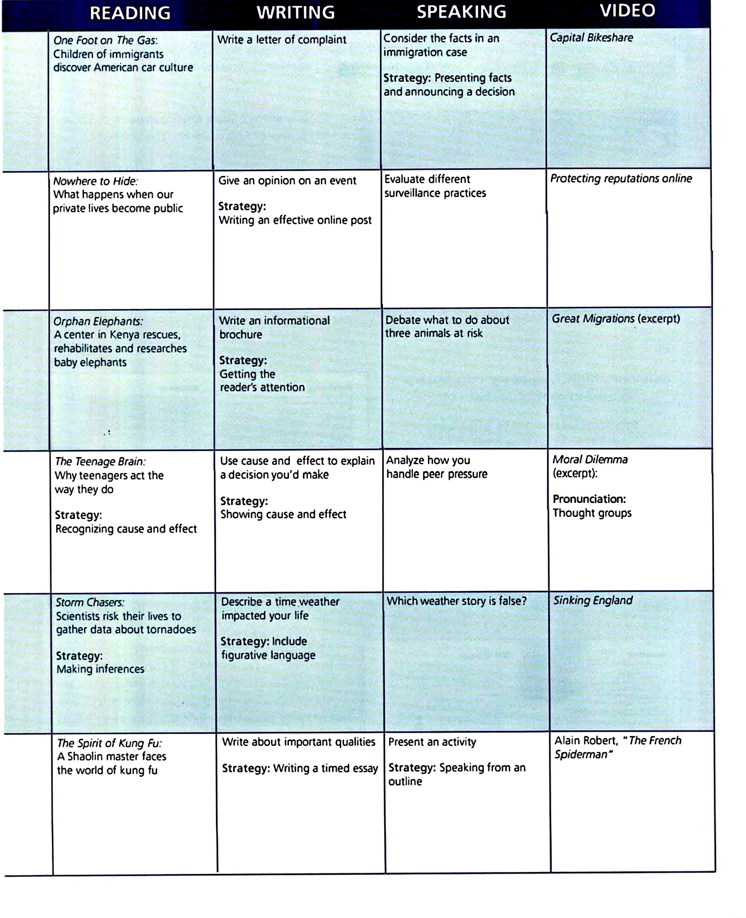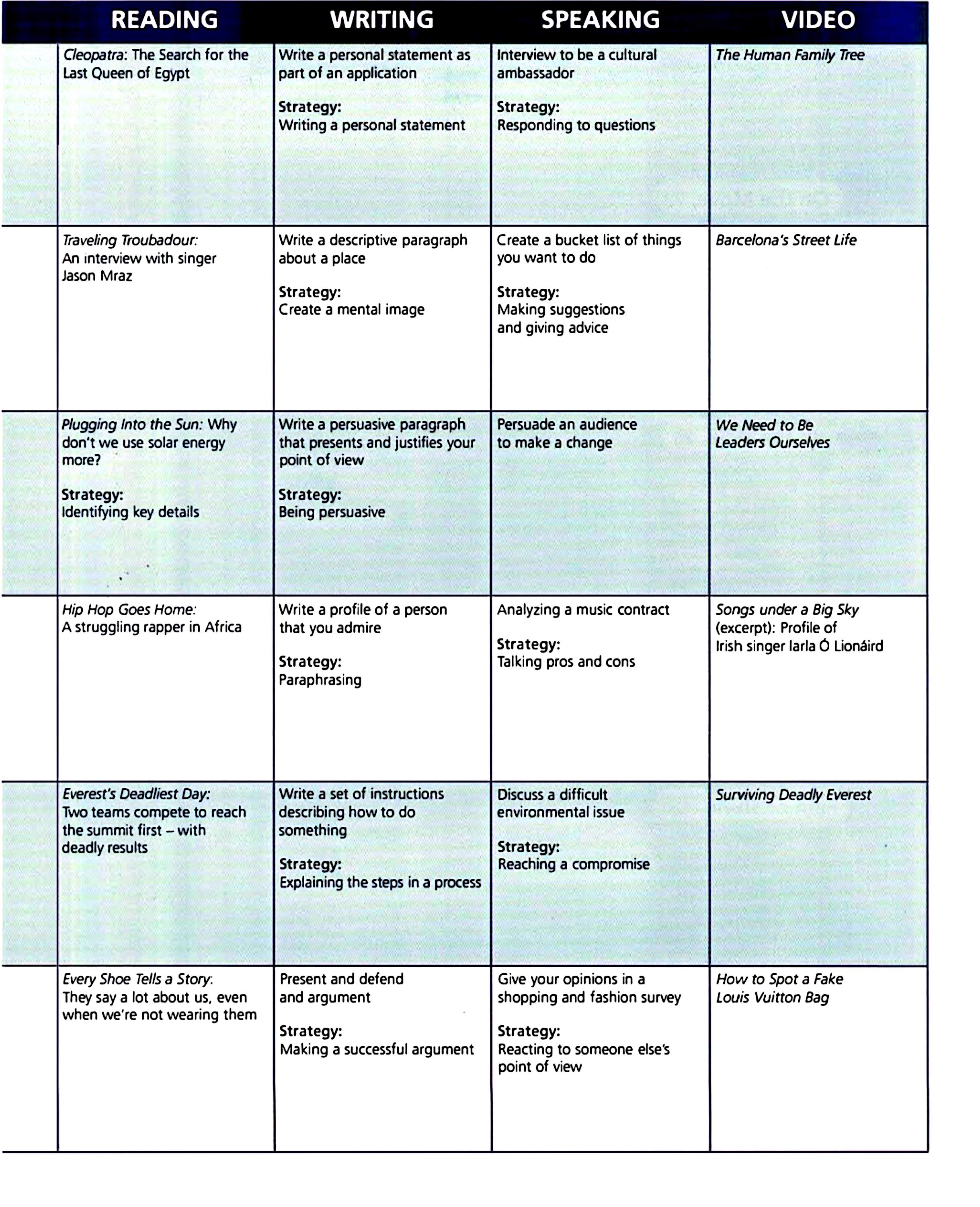 Speaking, Listening, Reading,