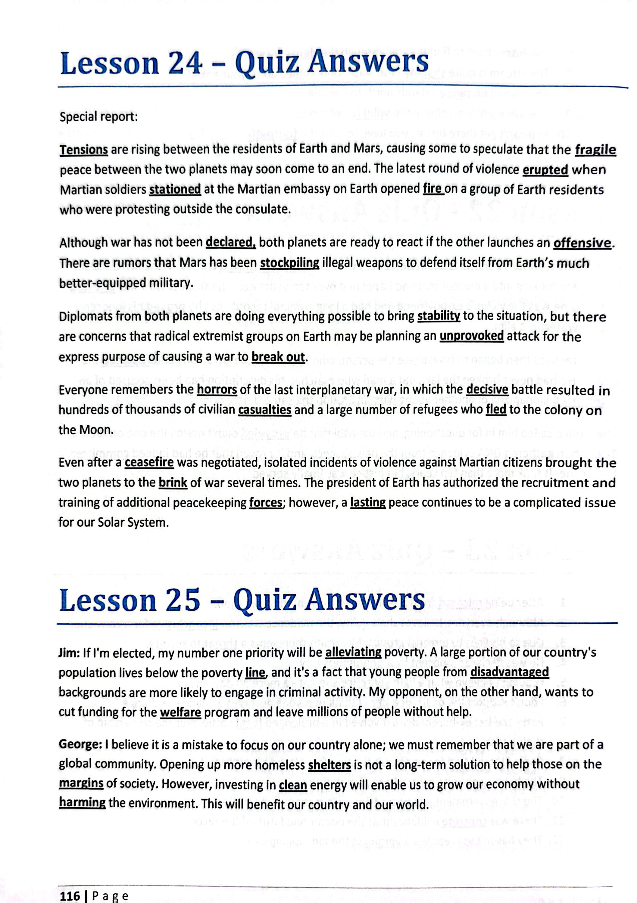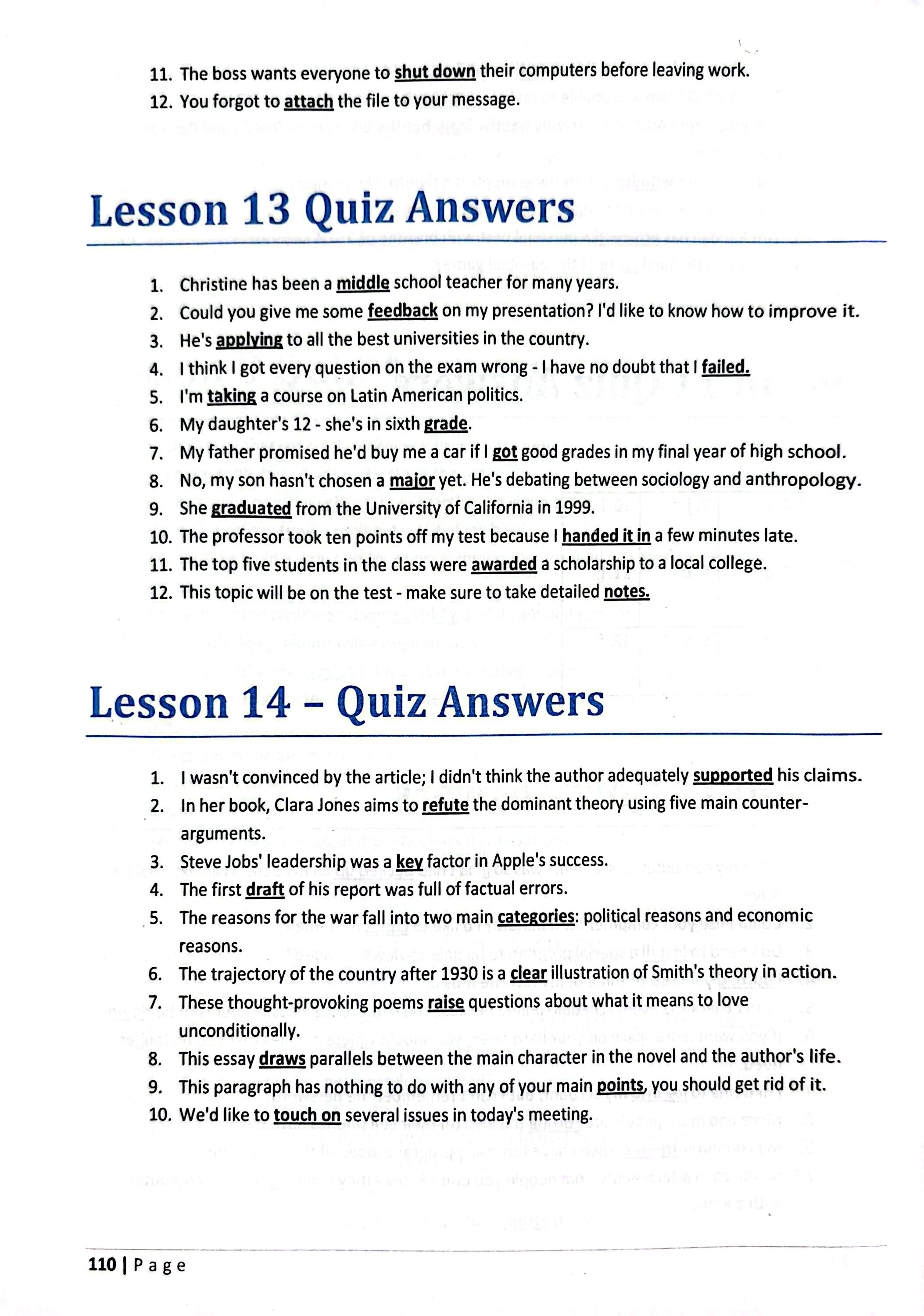 قرار دارد که جواب آزمون های هر درس را ارائه می کند. این بخش کمک می کند زبان
