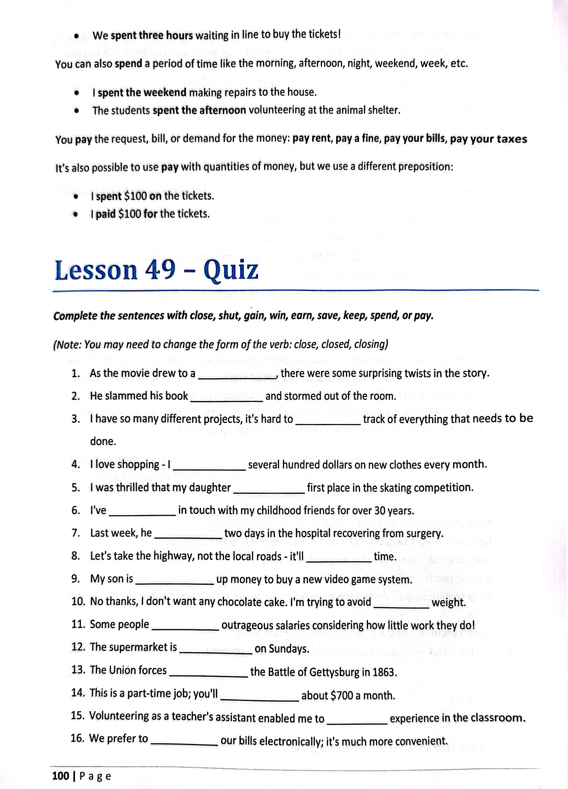 معرفی می شود و پس از آن مثال هایی قرار گرفته تا کاربرد این ترکیب ها در جمله های