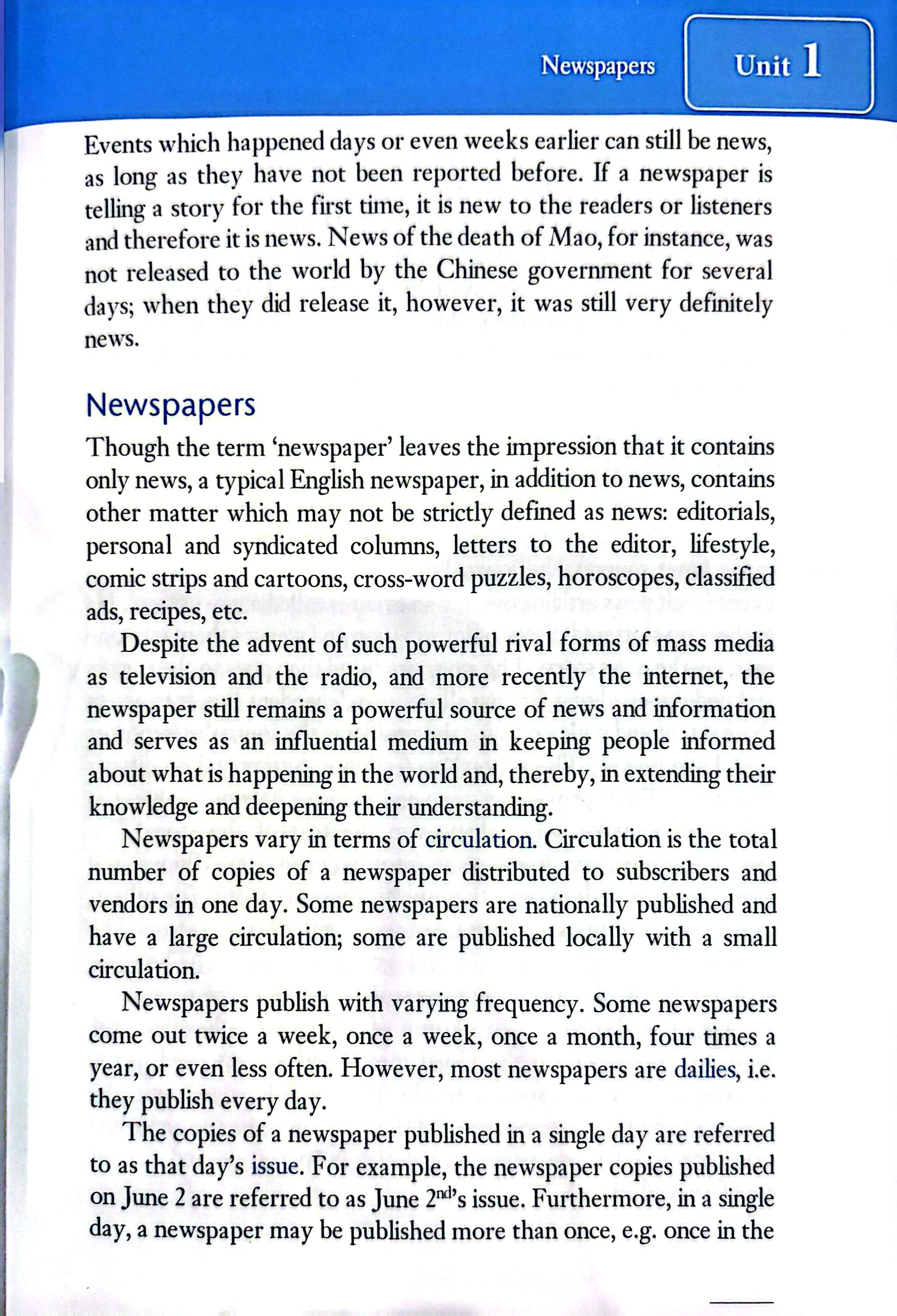 کتاب Reading English Newspapers علاوه بر بخشهای