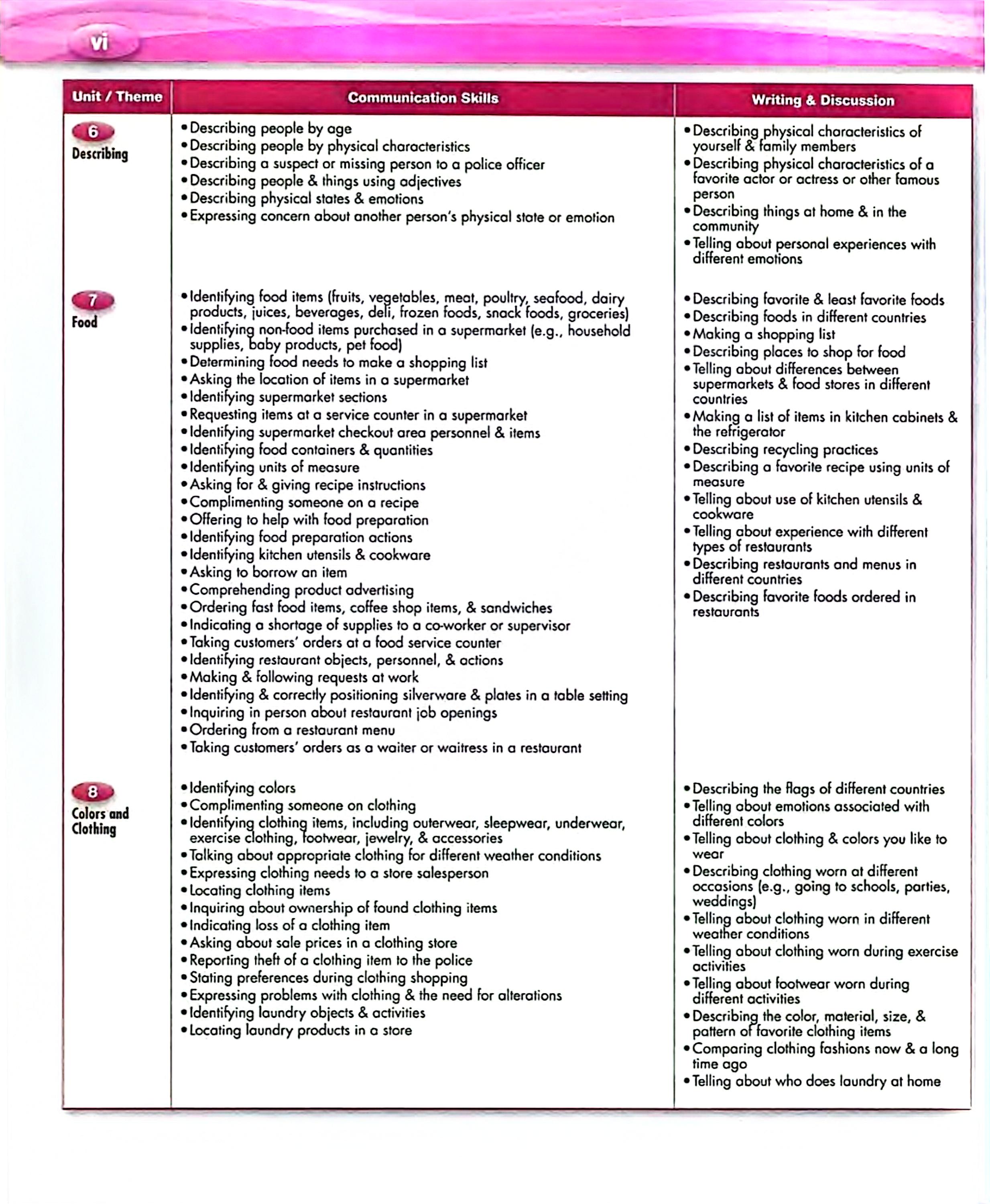 وسایل منزل، نظافت، تعمیرات، ابزار و خرید را آموزش میدهد. بخش توصیف افراد، ویژگیهای ظاهری، احساسات و حالات