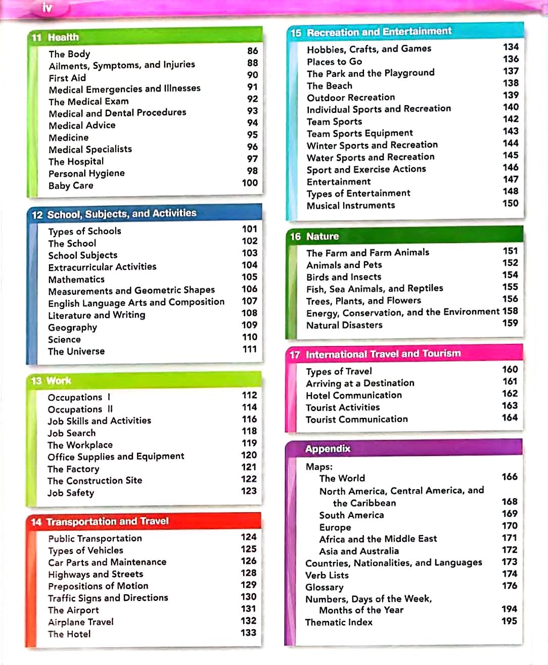 و همچنین نقشهها، کشورها، ملیتها، فهرست افعال و واژهنامه اختصاص دارد که