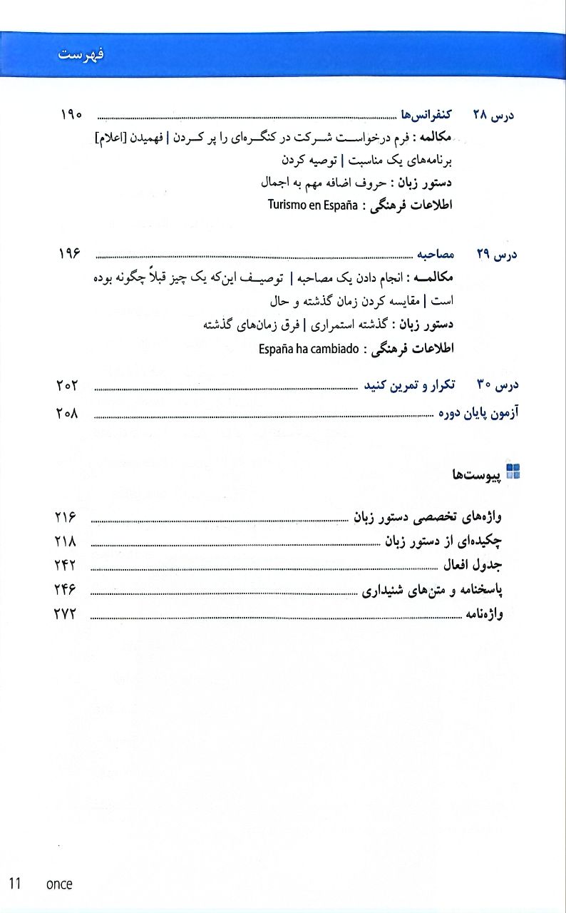 کتاب ۳۰ درس دارد و اگر هر درس را در یک روز مطالعه کنید، میتوانید در ۳۰ روز پایه مکالمه اسپانیایی