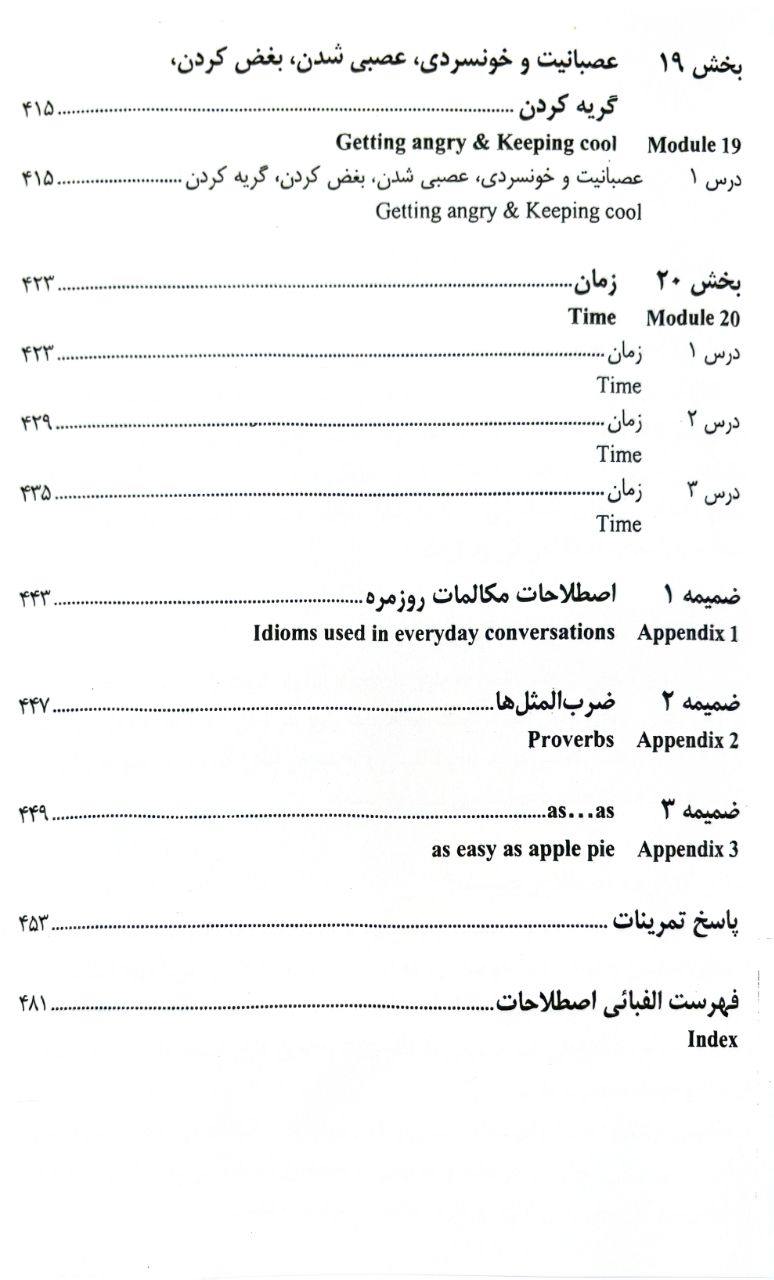 در پایان کتاب، ضمیمههای کاربردی مثل اصطلاحات مکالمات روزمره، ضربالمثلها و