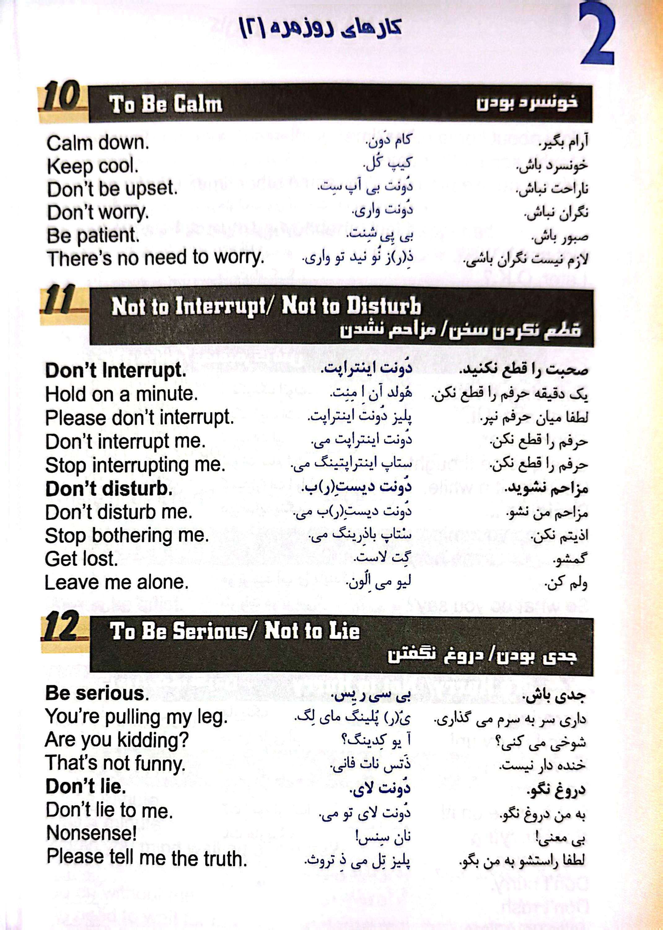 مکالمات روزمره و ضروری را بهصورت ساده و همراه با ترجمه فارسی یاد بگیرند.