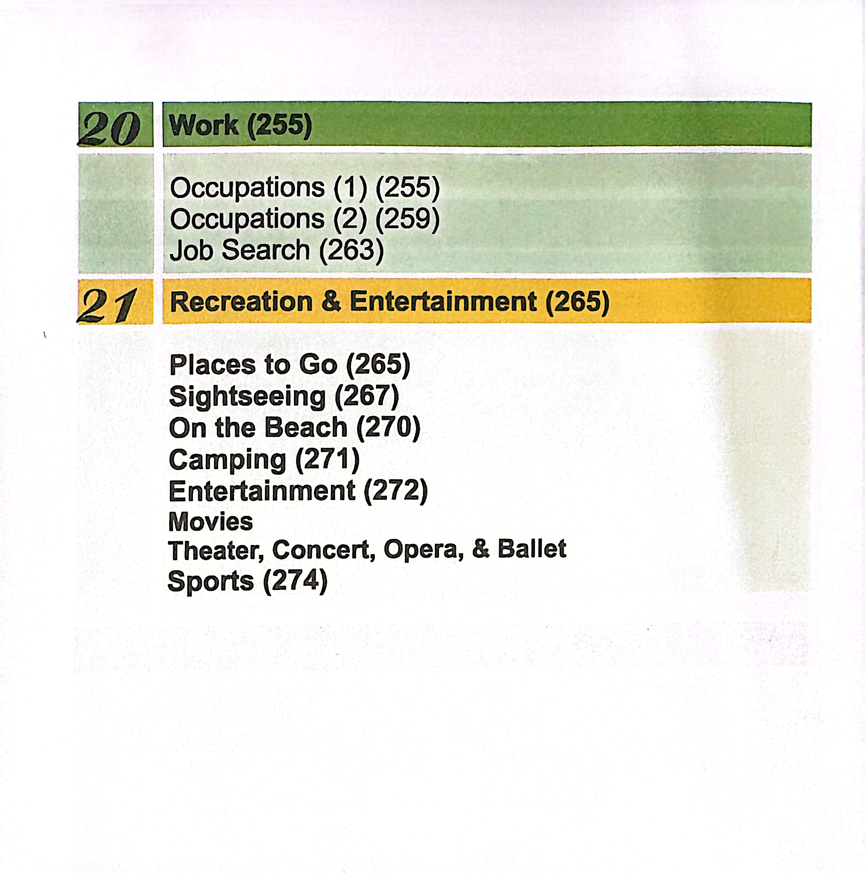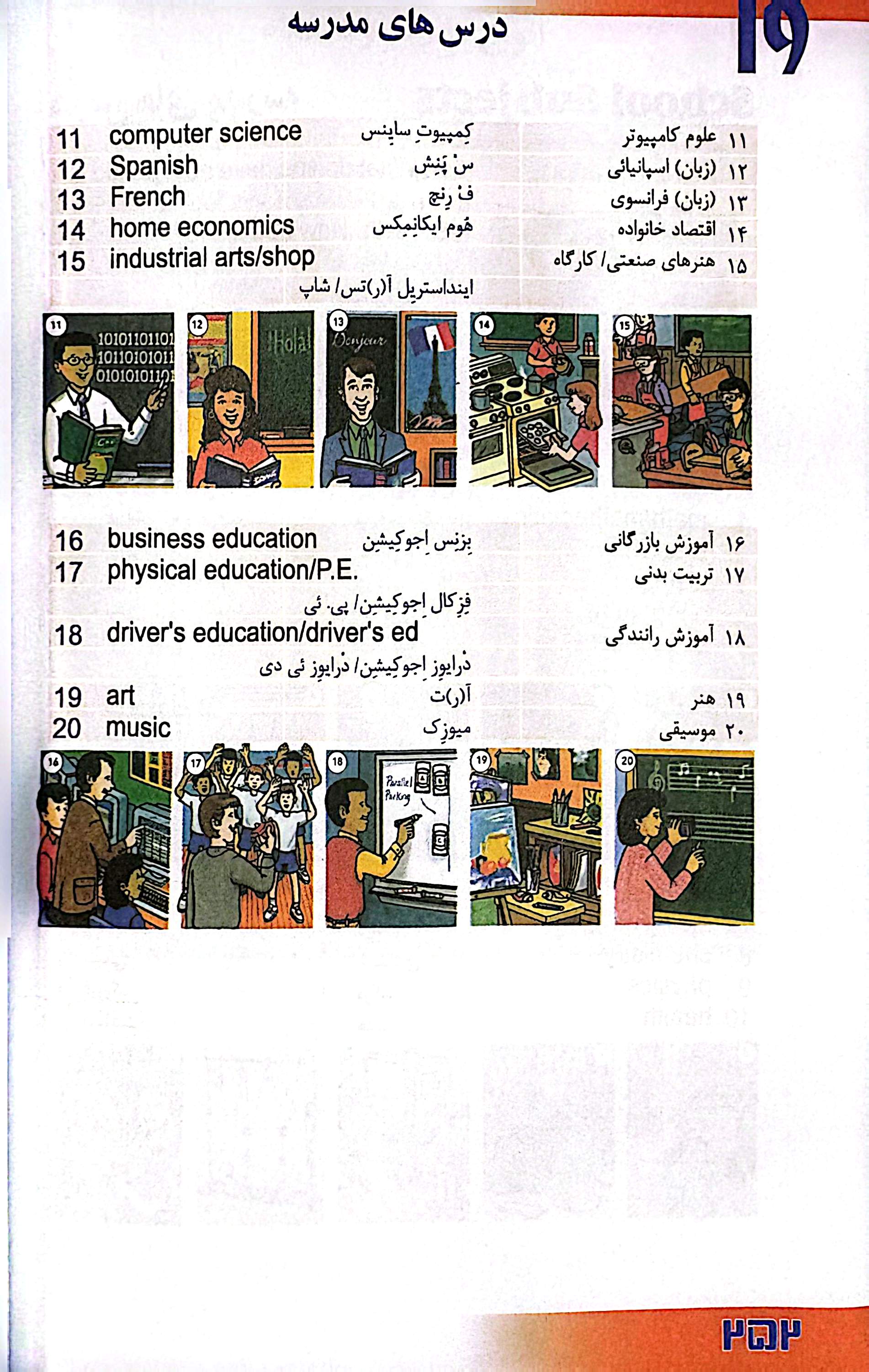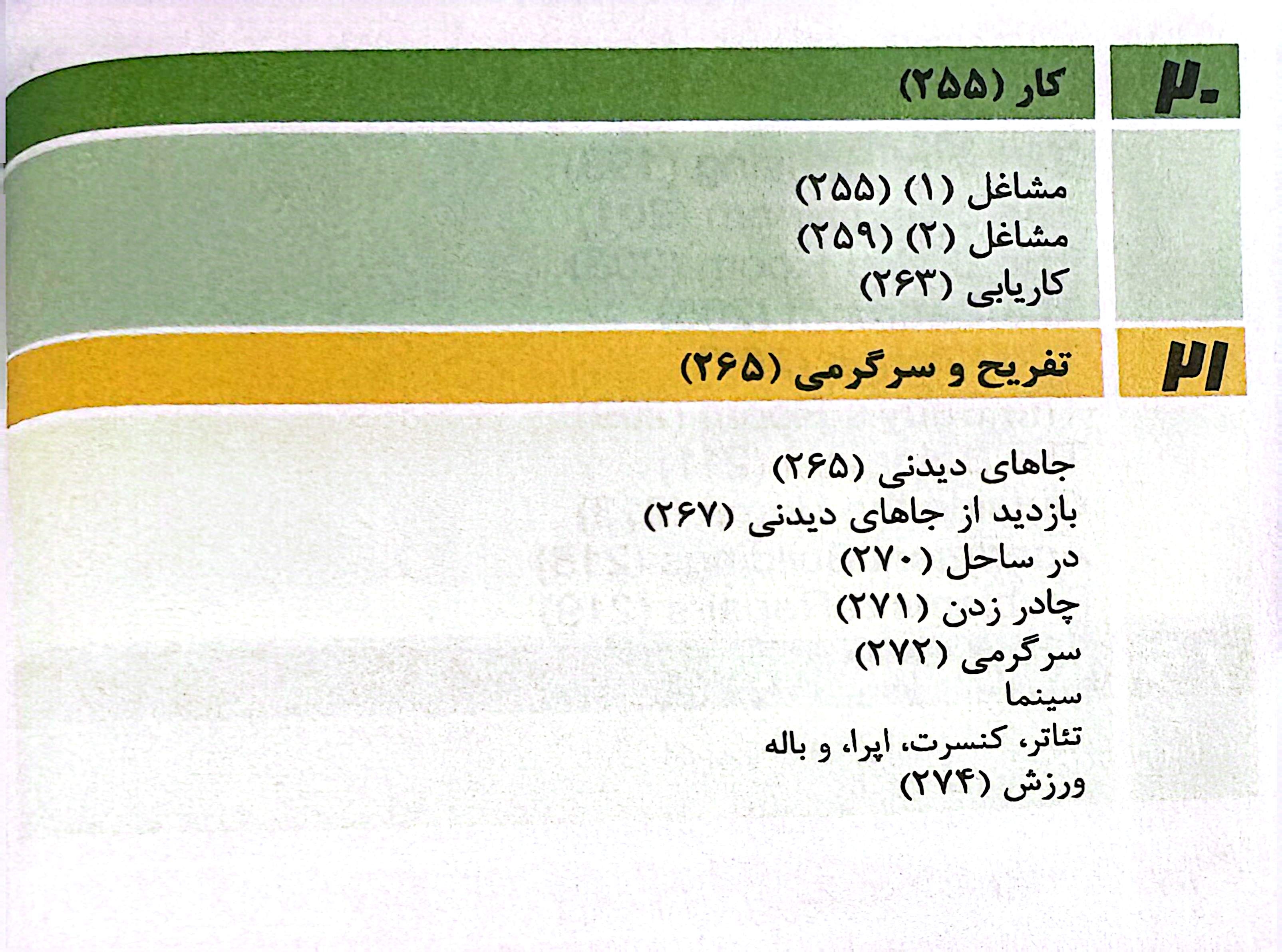 موضوعات پیچیدهتری مثل خرید لباس، مکانهای شهری، توصیف افراد، سلامتی، مراجعه به
