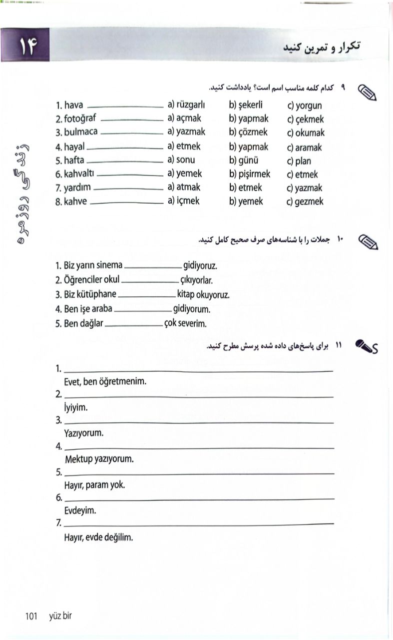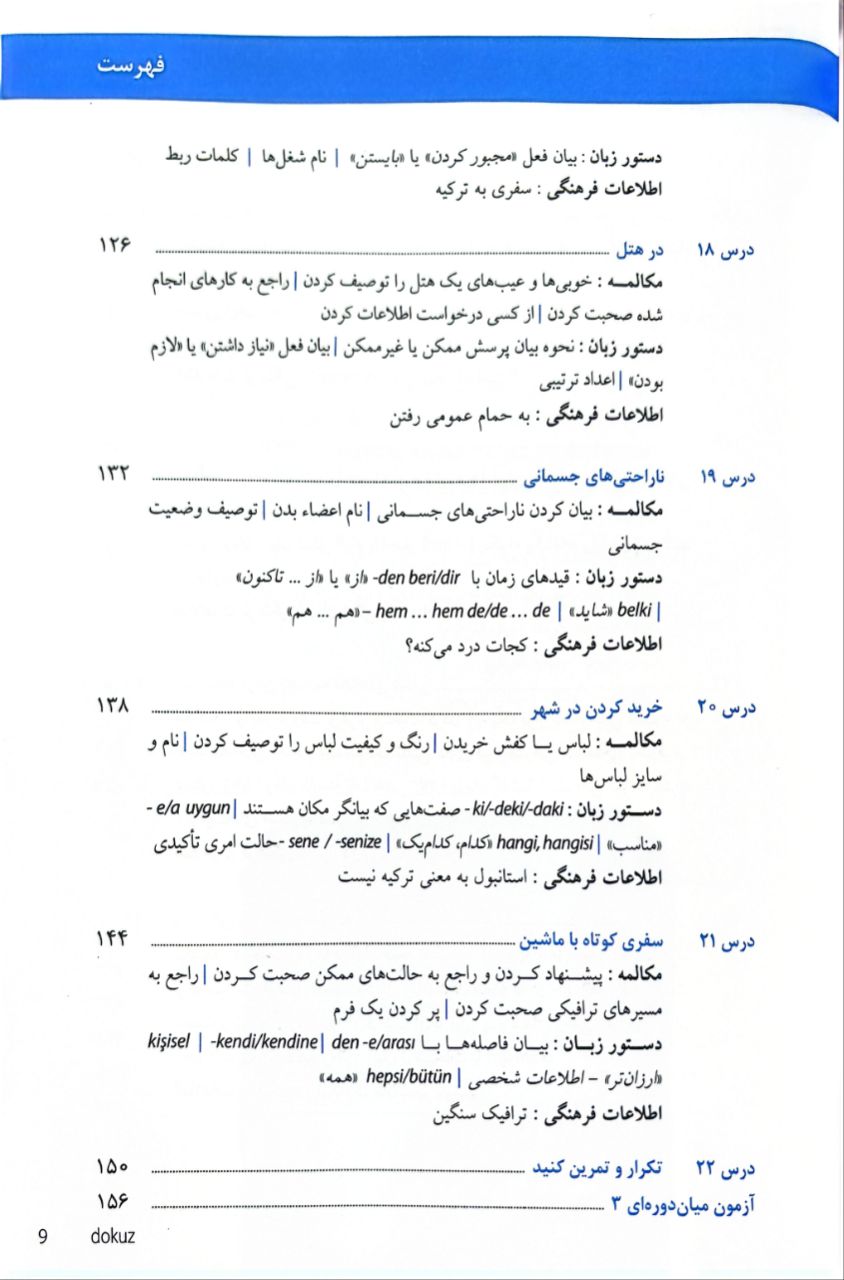 مرور و تکرار قرار دارد و در پایان کتاب نیز آزمون نهایی، جدول افعال، واژهنامه و متنهای