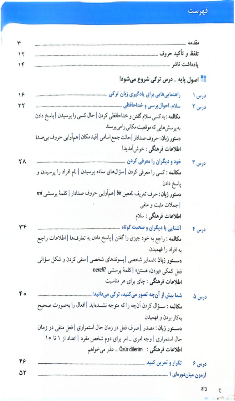 در ابتدای کتاب، زبانآموز با تلفظ حروف، تأکید، اصول پایه و راهنمای یادگیری زبان ترکی
