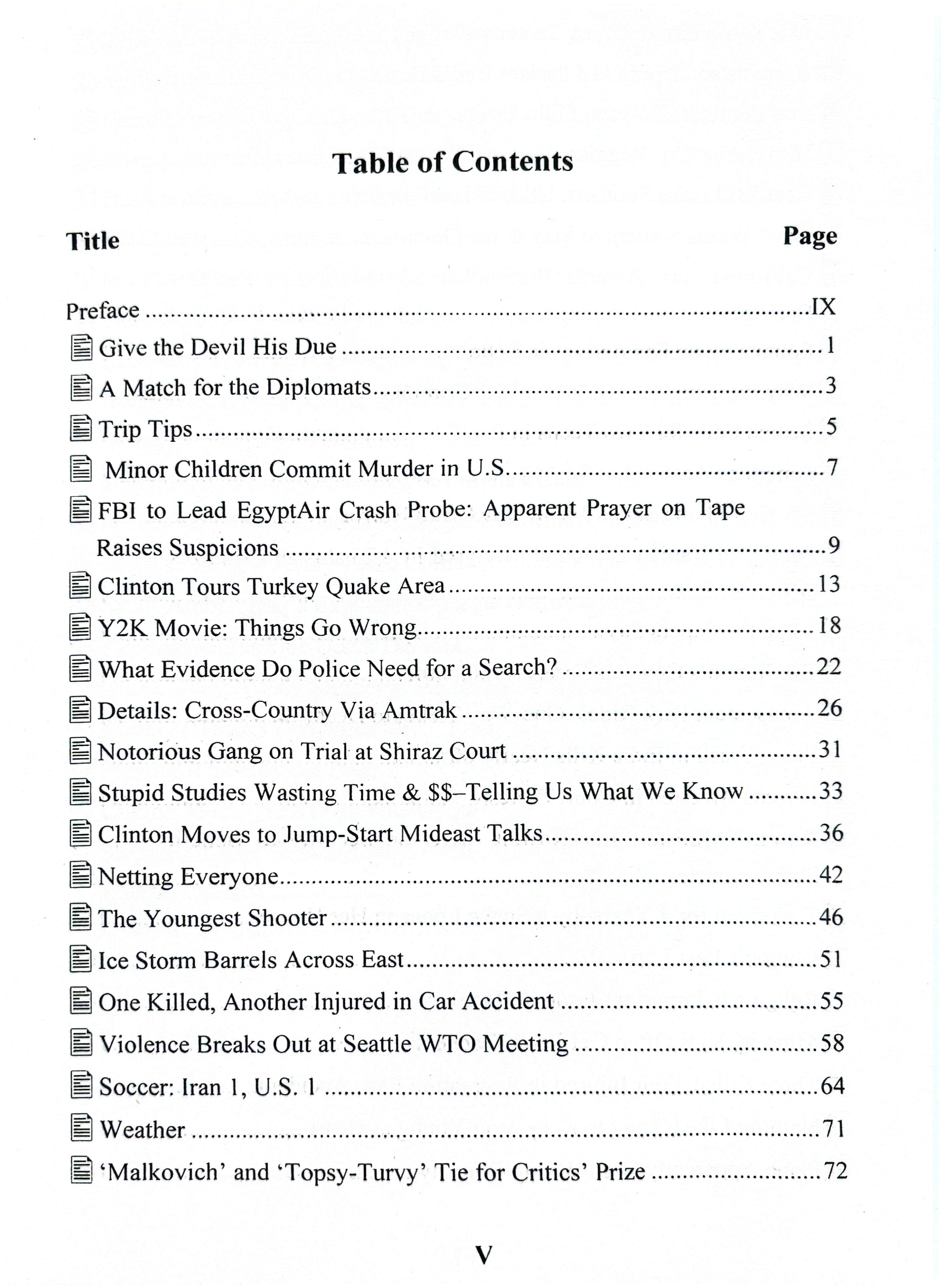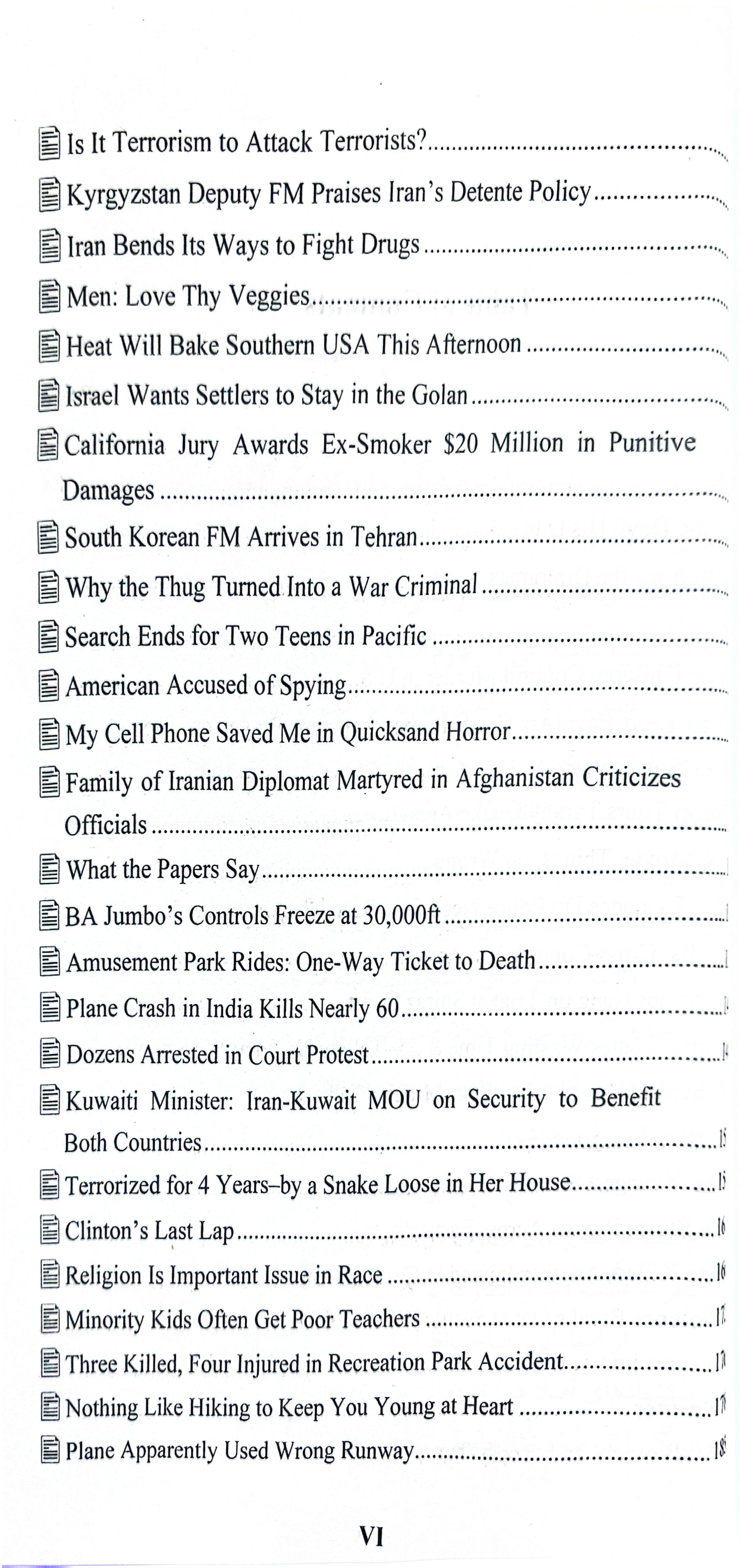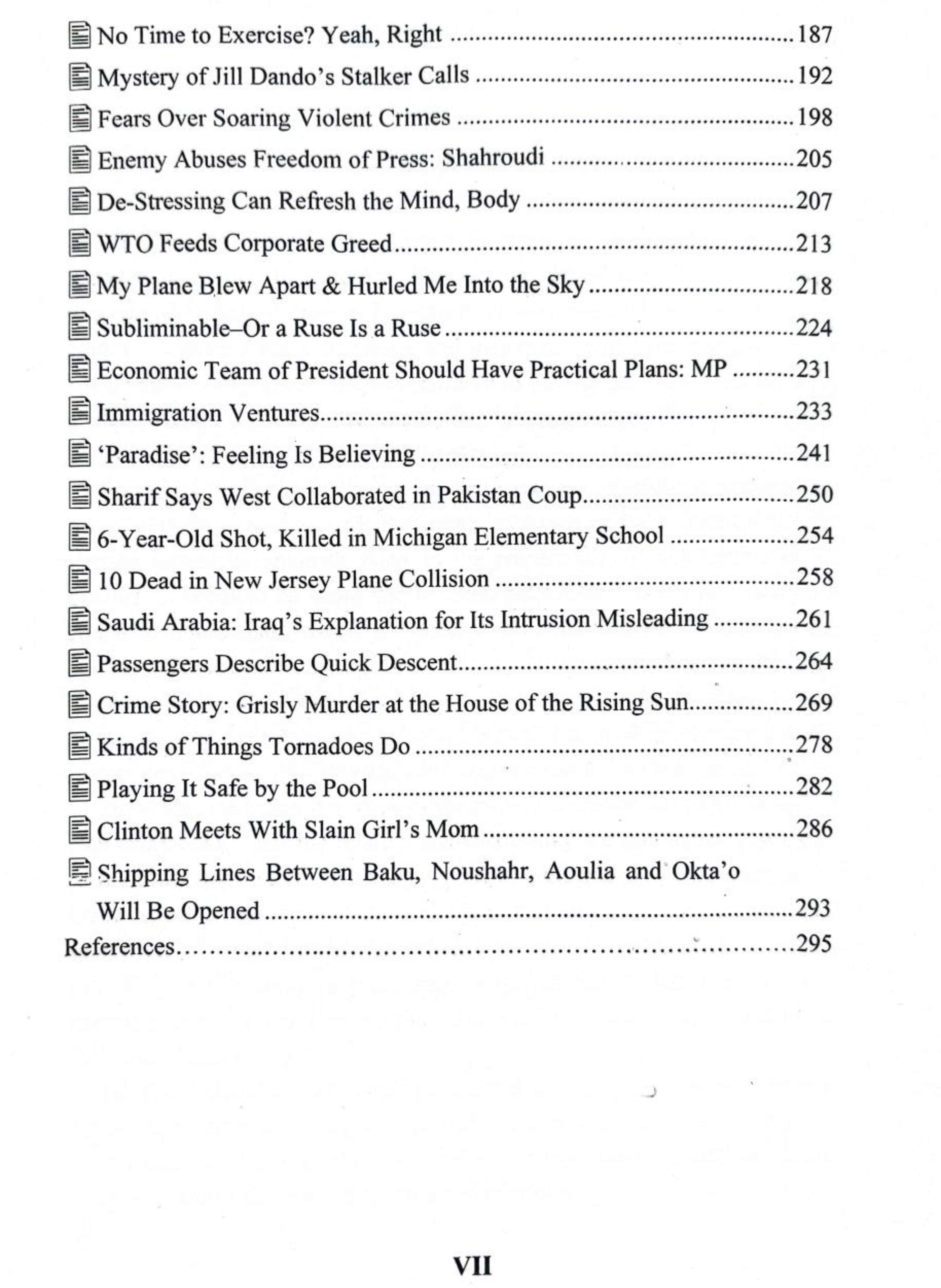 مطالب کتاب طیف گستردهای از موضوعات خبری را پوشش میدهد، از جمله: